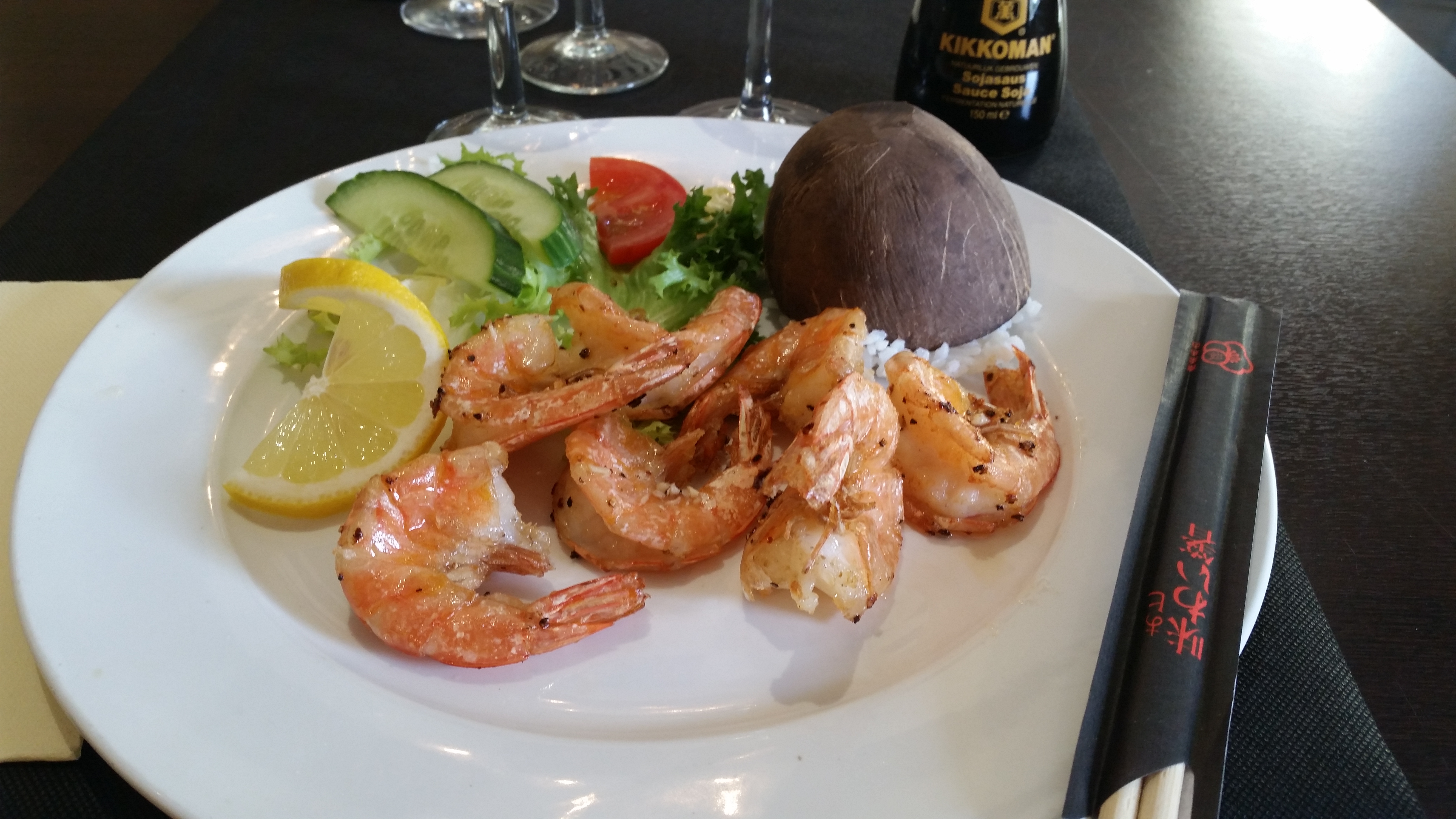 Bon accueil, salade thaï ananas crevette bien copieuse et relevée sans trop. Très bon rapport qualité prix.