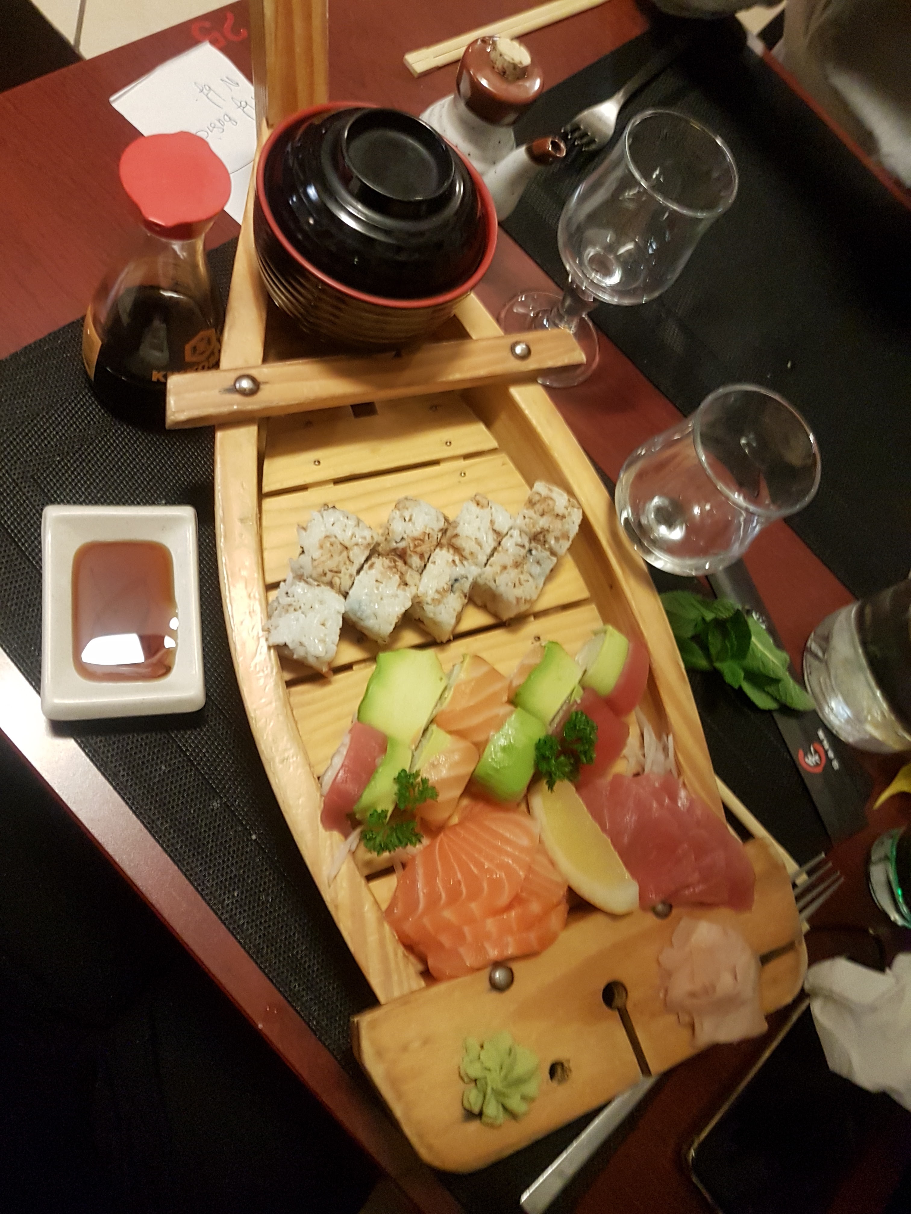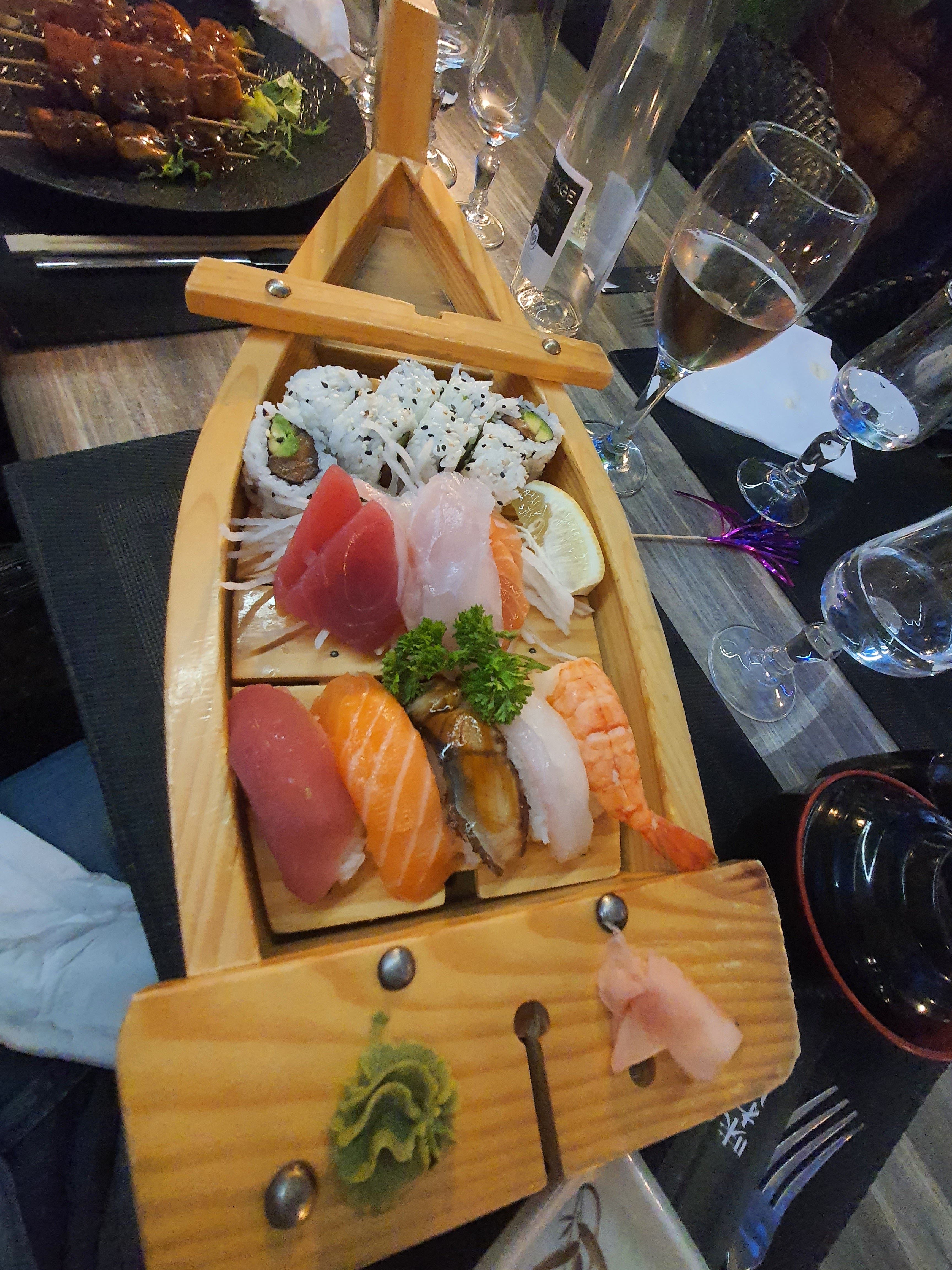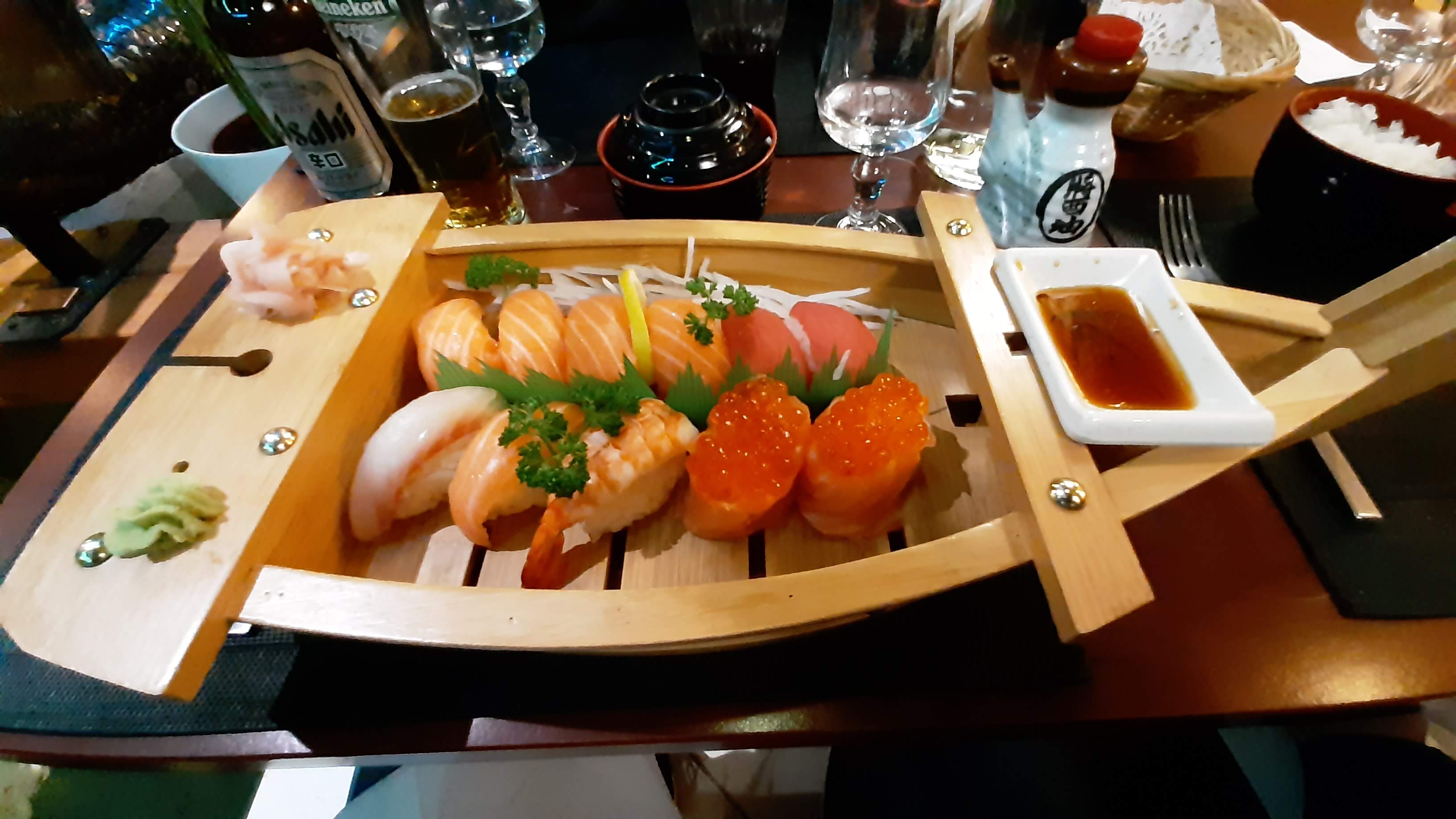 Nourriture excellente. Le décor apporte vraiment une plus-value. Un peu cher mais comme tous les restaurants à sushis. Les bateaux (plats de sushis en forme de bateau) pour deux sont bien garnis et originaux.