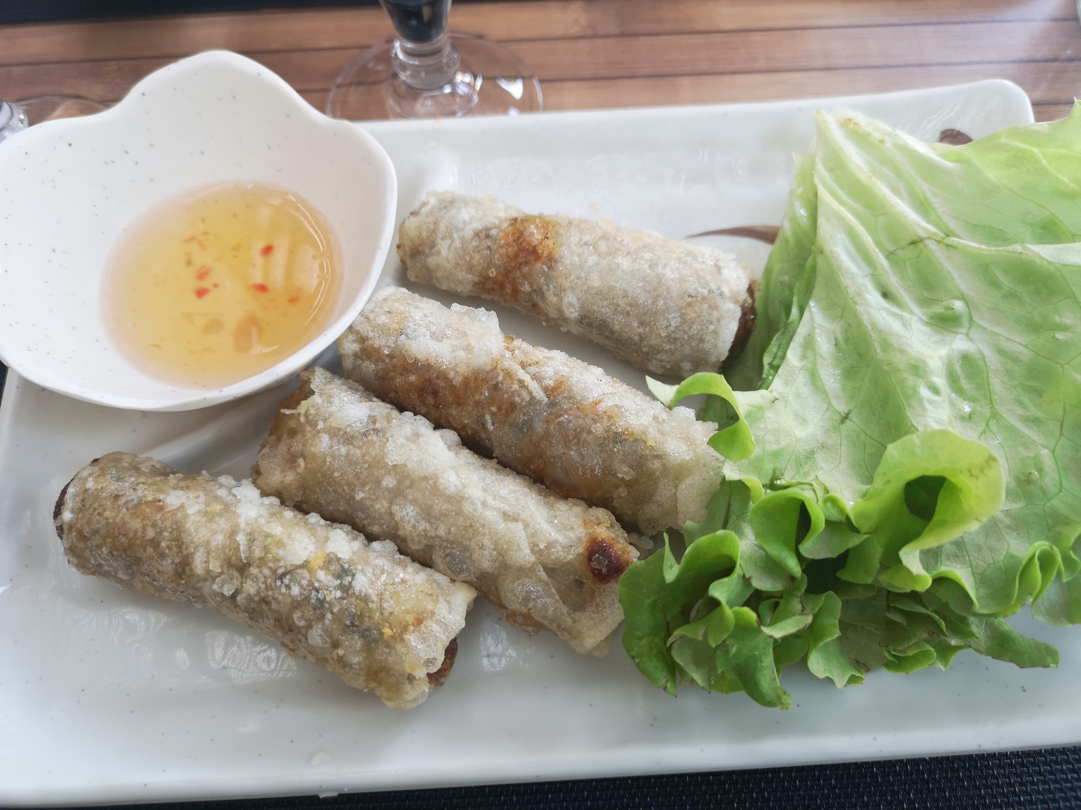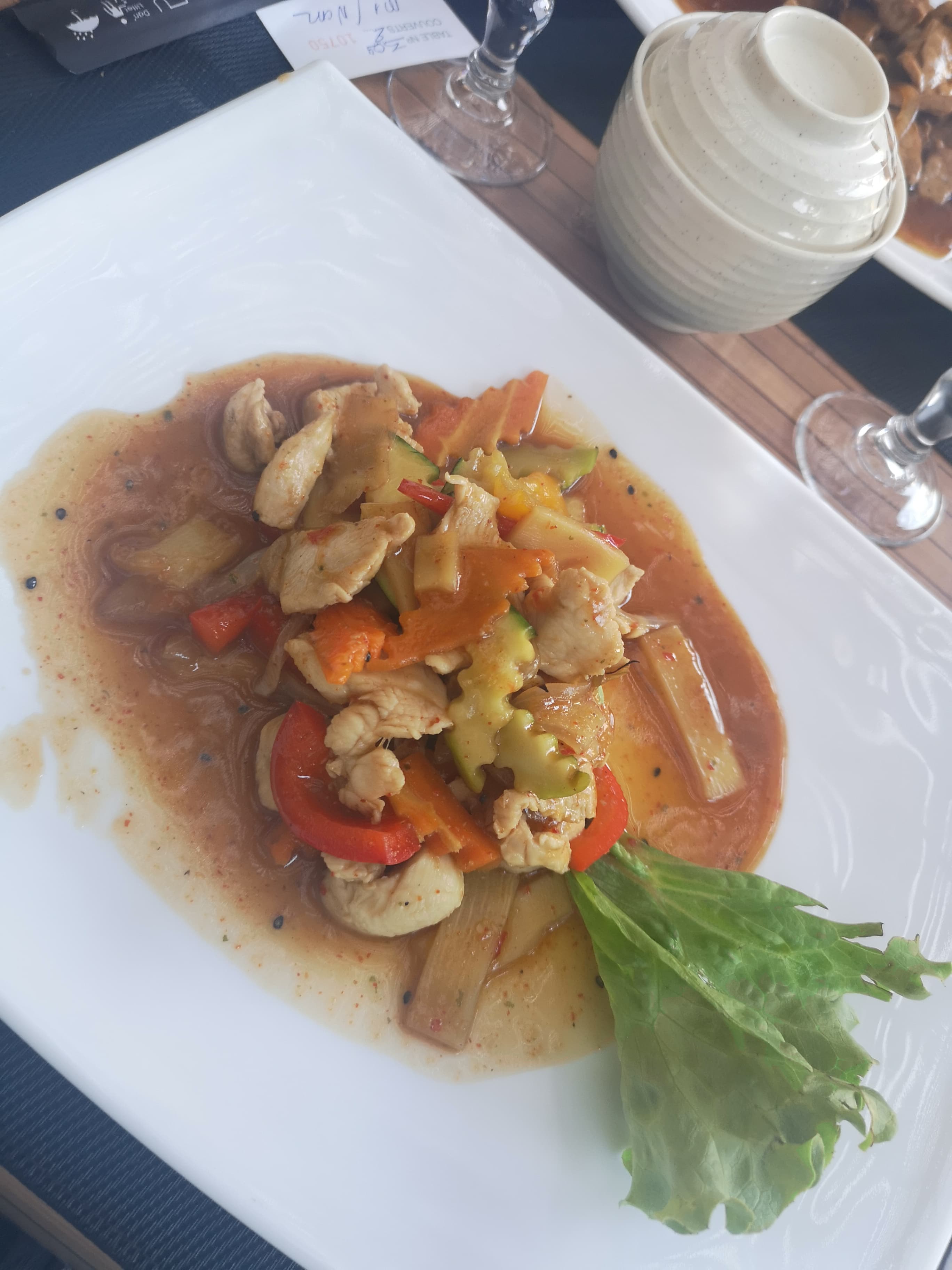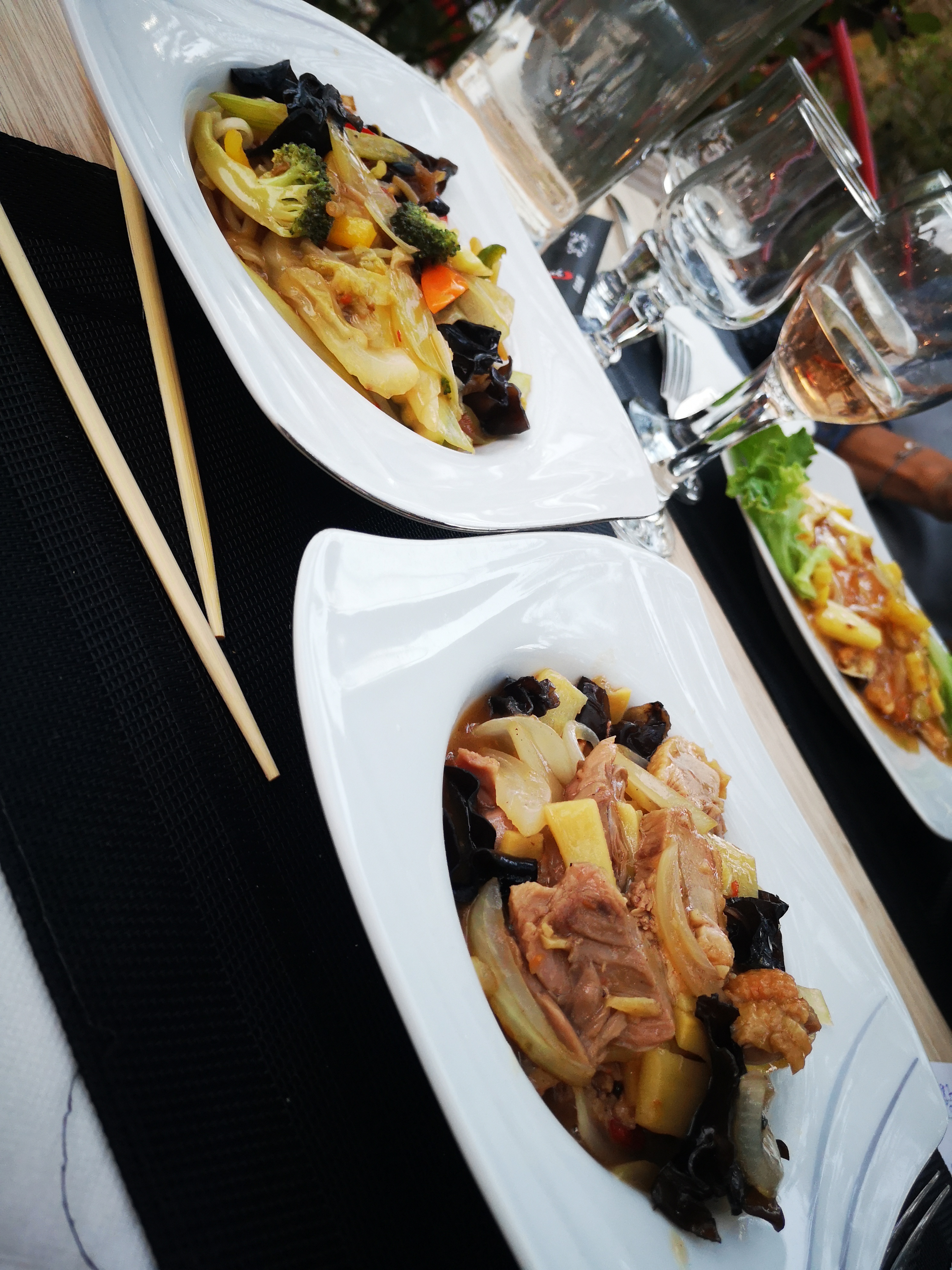 En pleine zi, mais plein de fraîcheur d'eau et de verdure, plats bons, mais pas trop de choix végétariens , et ils ont même réduit les portions de nouilles aux légumes.