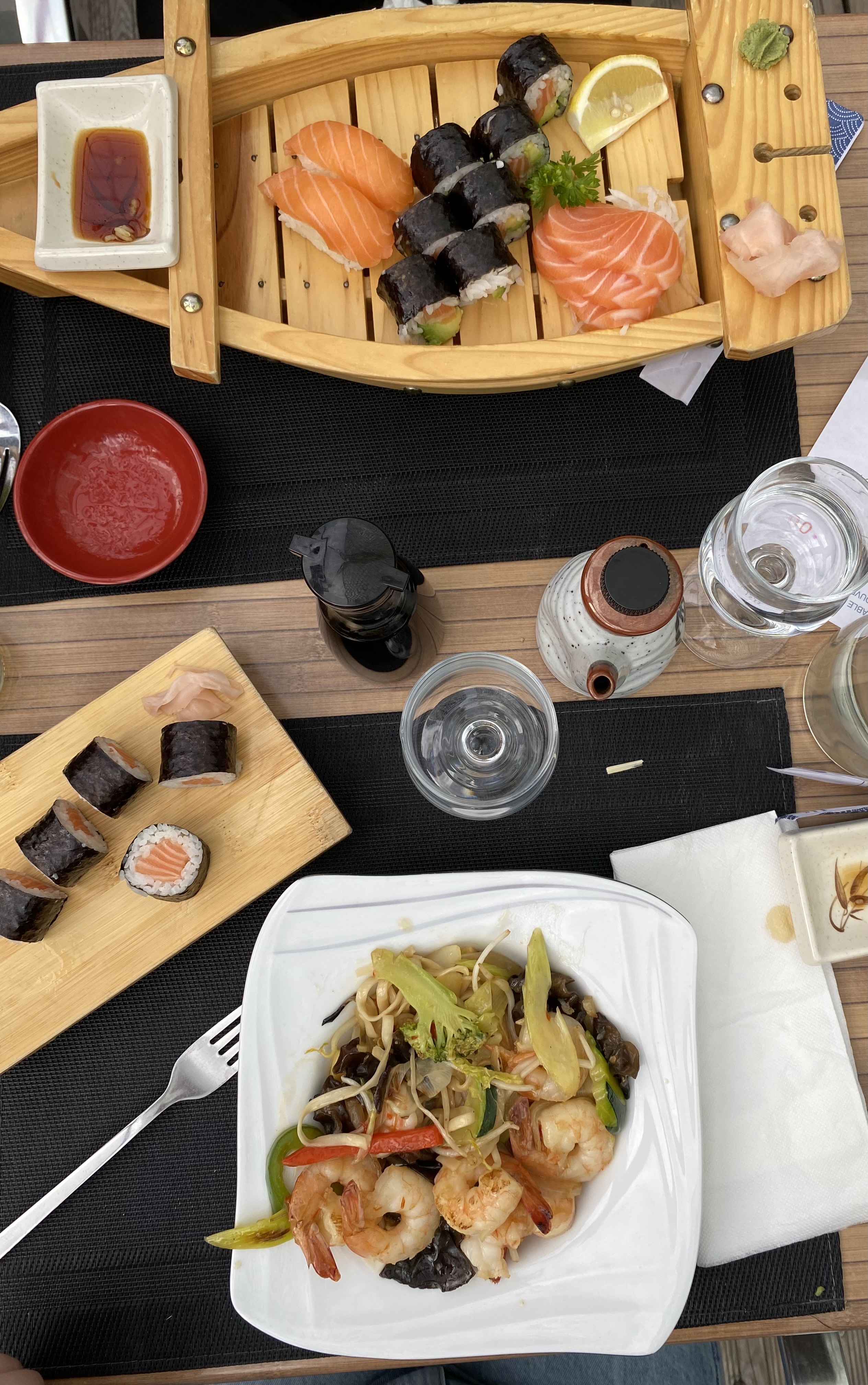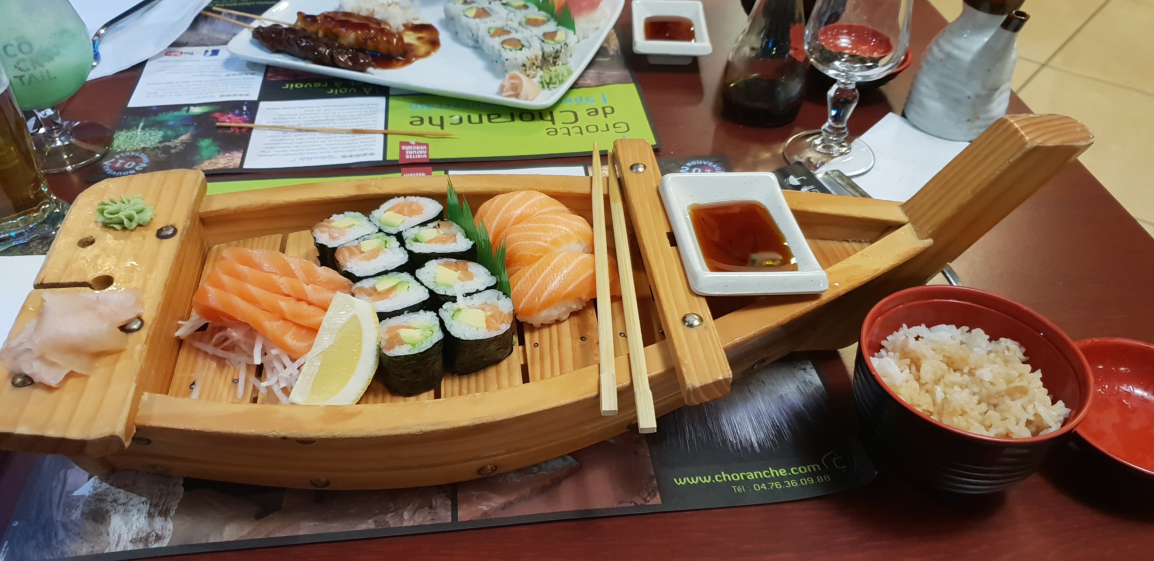 Super restaurant bien copieux avec ses 3 entrées et bateau gourmand. Le décors est super joli, plein de bambous et fontaine d'eau avec petit pont japonais, on s'y croirait! Serveurs souriants et service correct en terme de rapidité. Comptez une vingtaine d'euros pour un menu bateau.