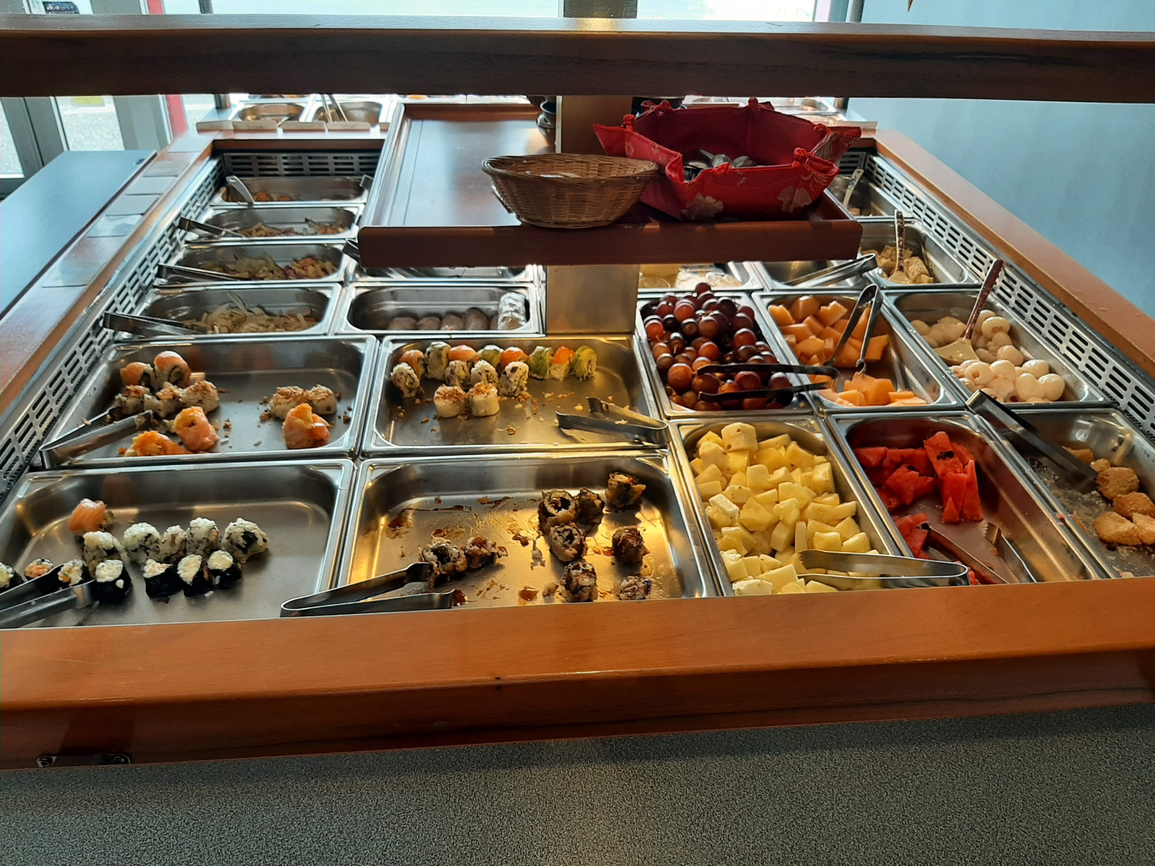 Bar à sushi pas très bien placé mais qui vaut LARGEMENT le détour! Ce restaurant propose une grande variété de sushi au niveau du bar, mais également plusieurs plats / dessert au niveau du buffet à volonté. Je recommande vivement.