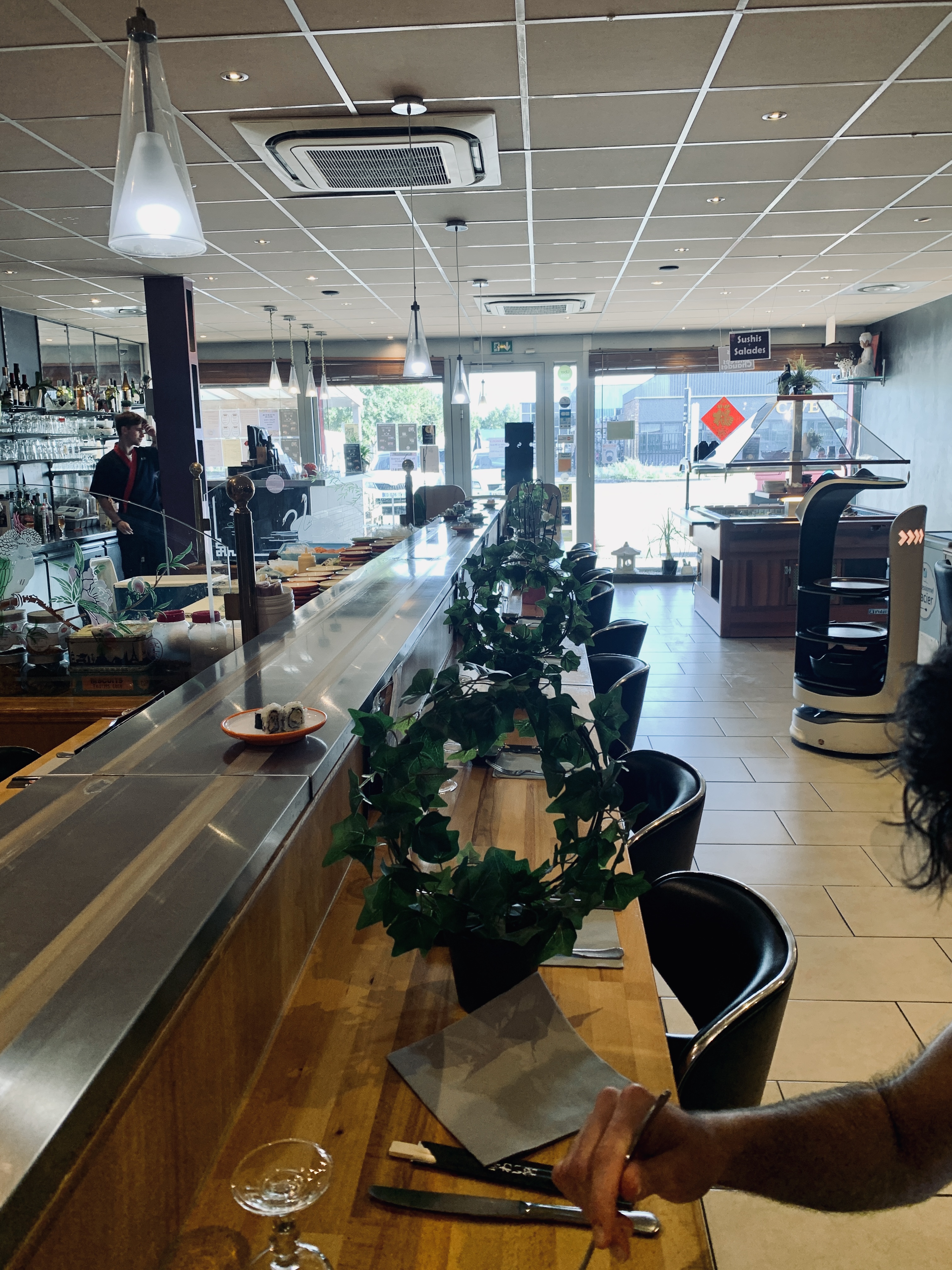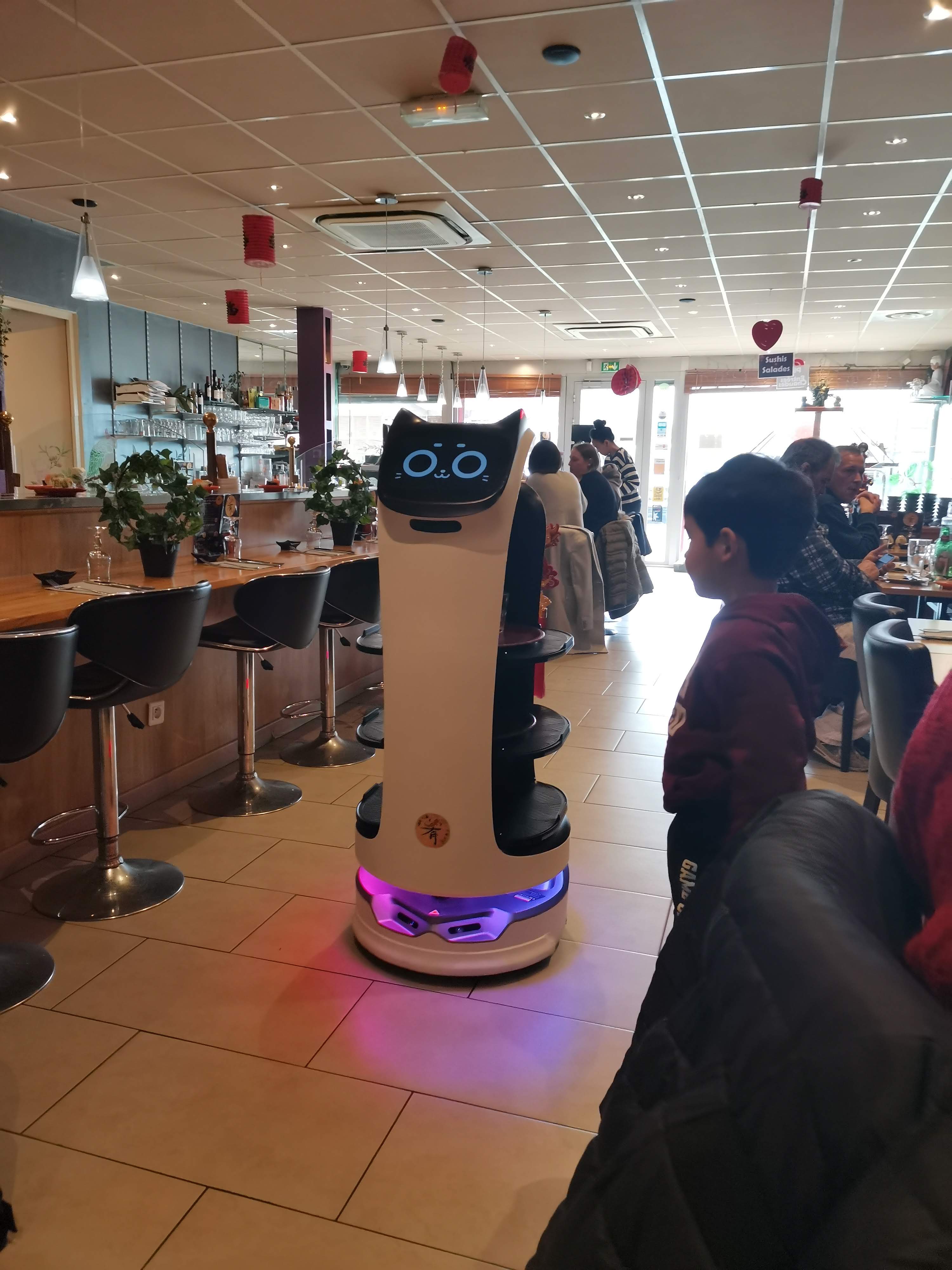 Je suis tombé par hasard sur ce restaurant Japonais et j’ai été agréablement surpris, formule pas cher, Sushis très authentique, technique traditionnelle japonaise. En plus ils ont un Robot chat qui livre les plats et boissons, je trouve que c’est top pour cette période difficile de Covid, j’avais jamais vu ça, The futur is now.