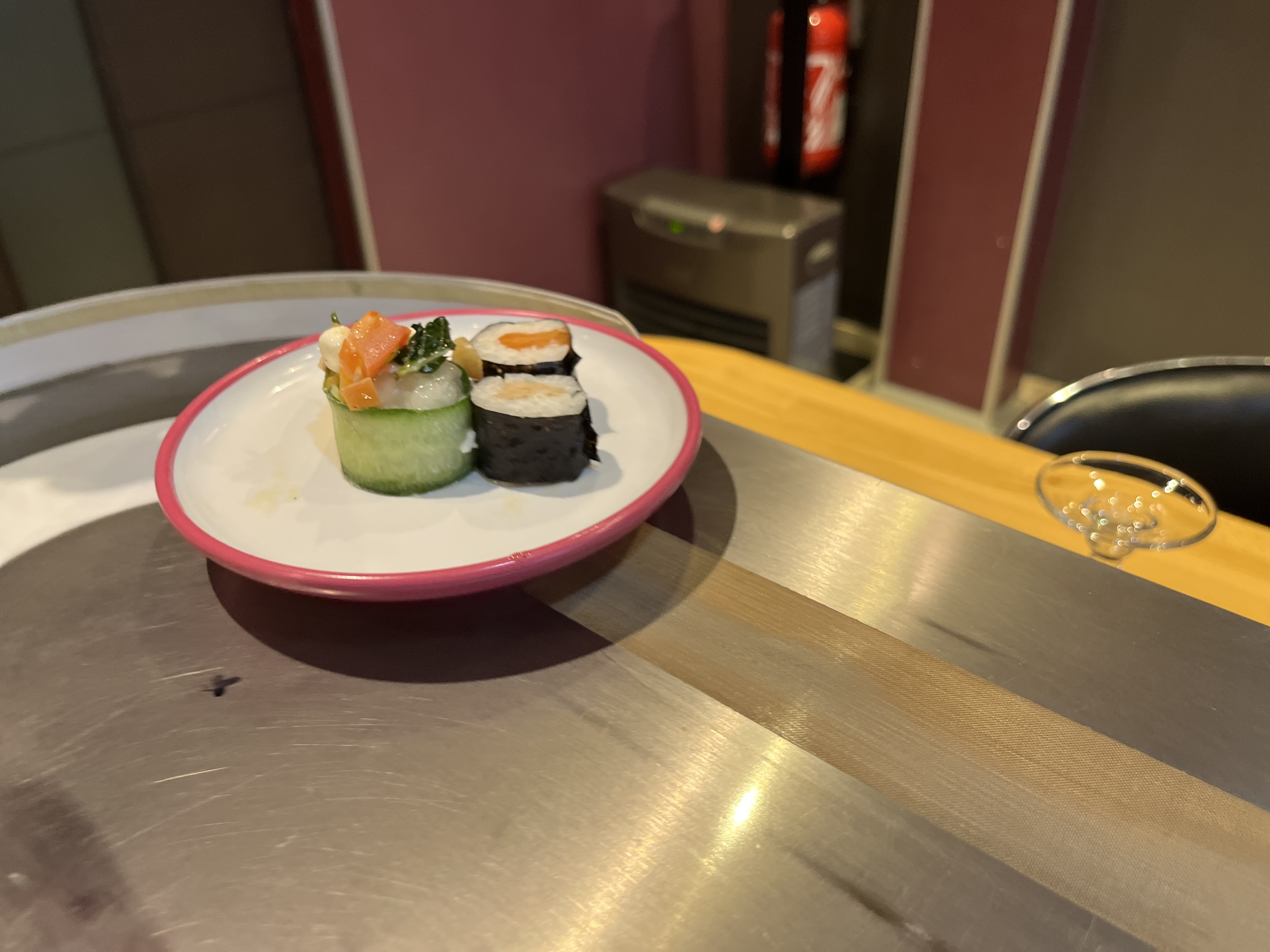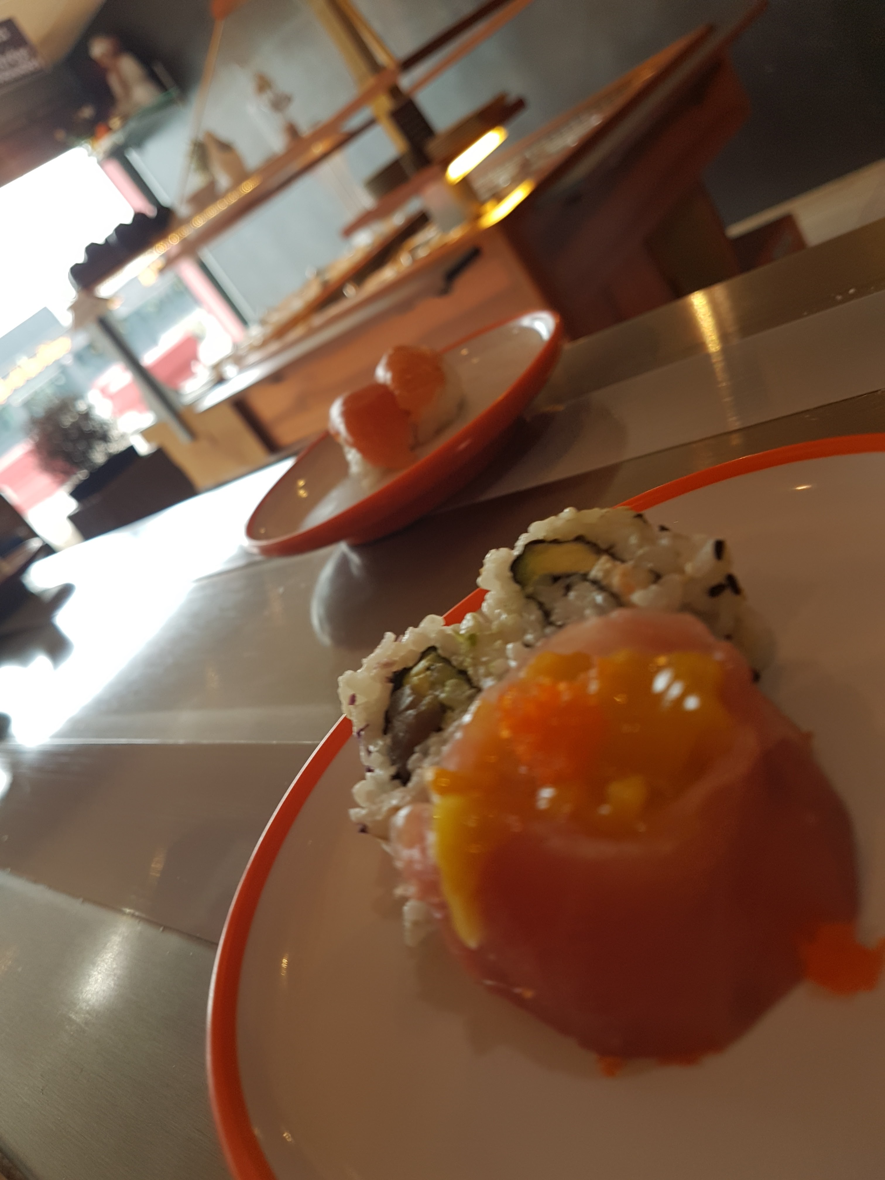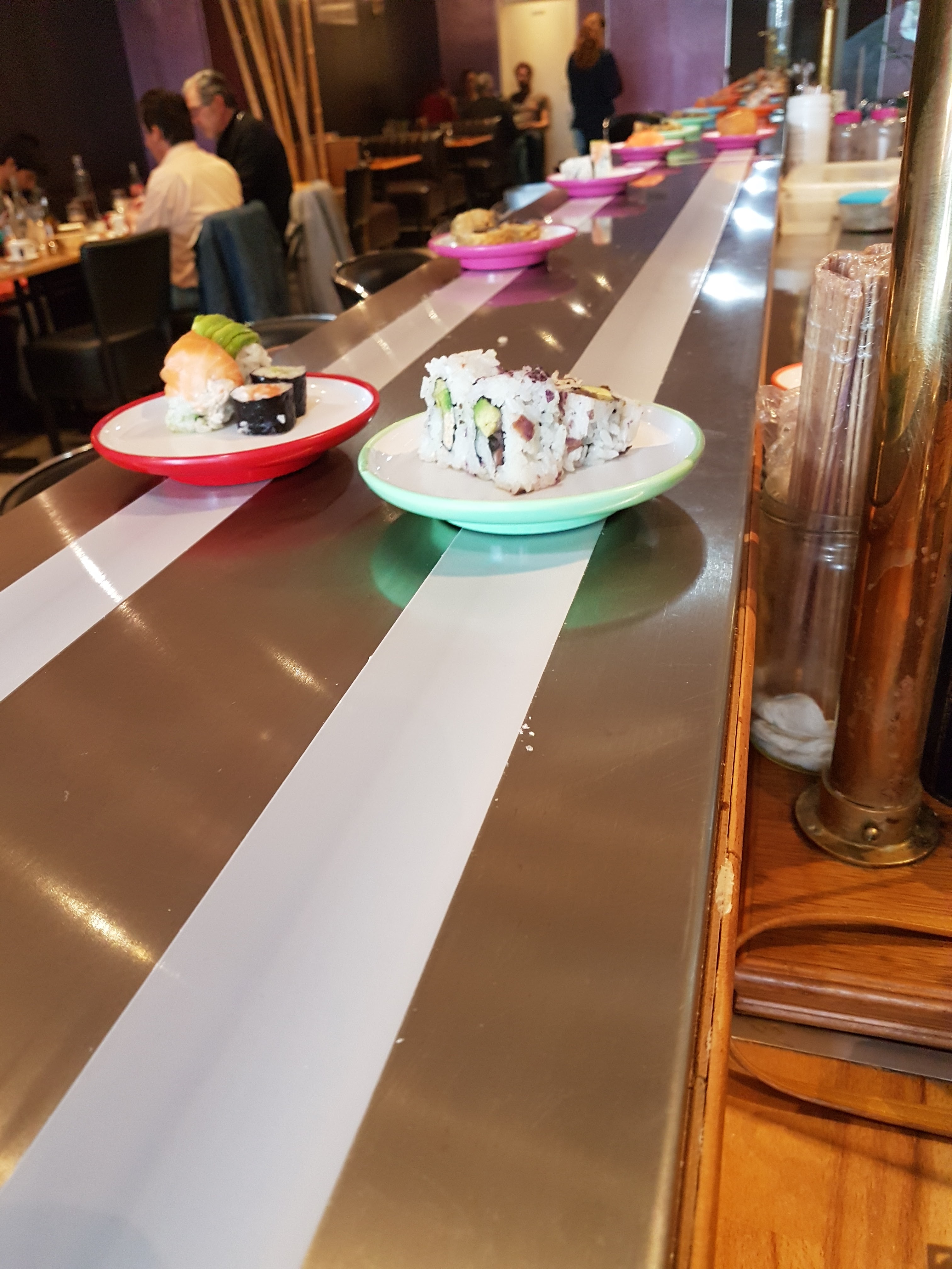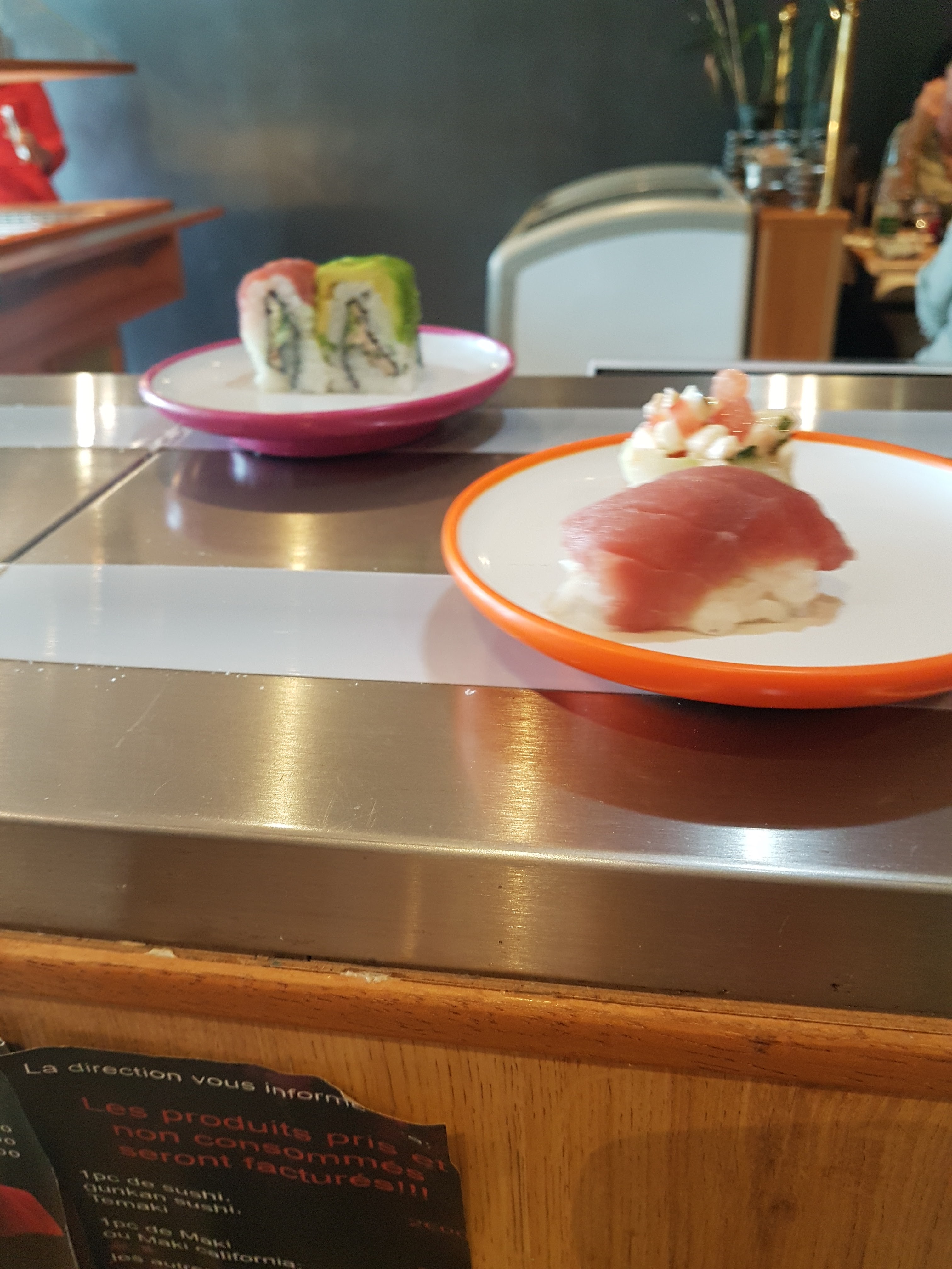 Il est indispensable de réserver pour être installé devant le tapis roulant, au bar ! Si ttes fois il n'y a pas d'erreur de resa' 😉 Tout y fait envie, ou presque. Et la formule à volonté est vraiment pas mal. C'est dommage par contre de ne pas avoir trop de choix, seulement une dizaine de petites assiettes, en plus du buffet. Et des assiettes que trop rarement ramassé... Mais en bref, c'est bon ! 😁