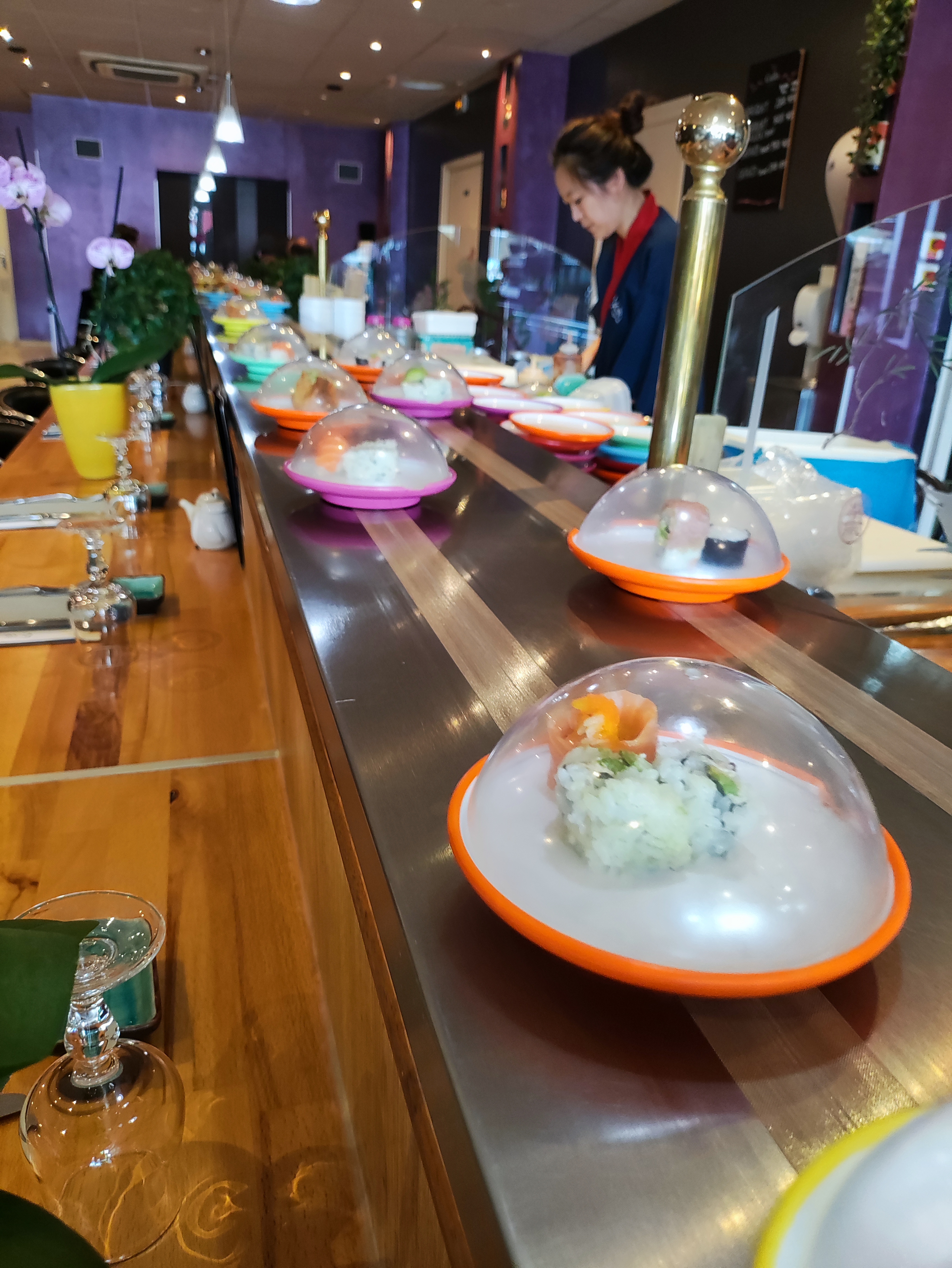 Très sympas le tapis roulant. On regrette l'absence de sashimis peut être sont ils servis plus tard que 20h. Par contre service régulier et diversifié. Nous reviendront dans cette configuration autour du tapis roulant.