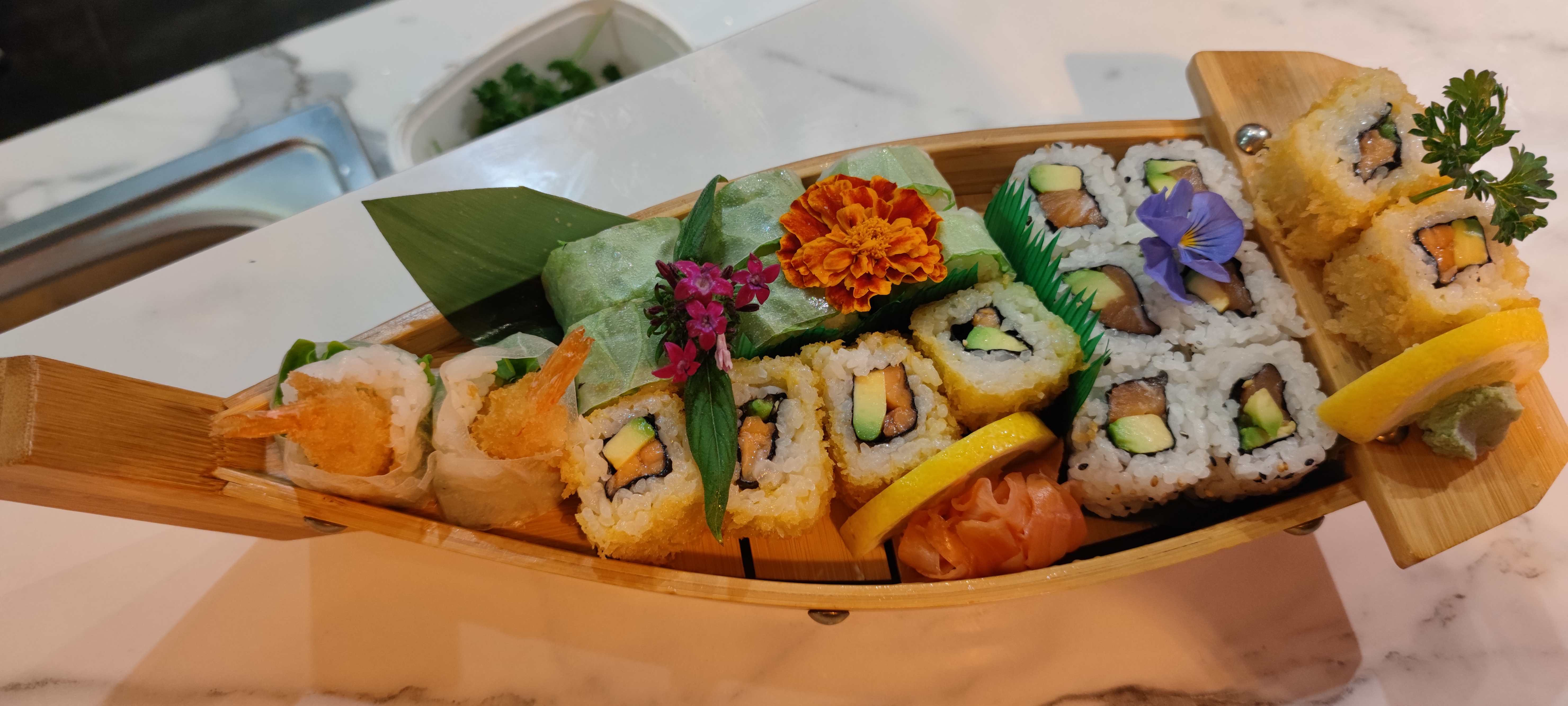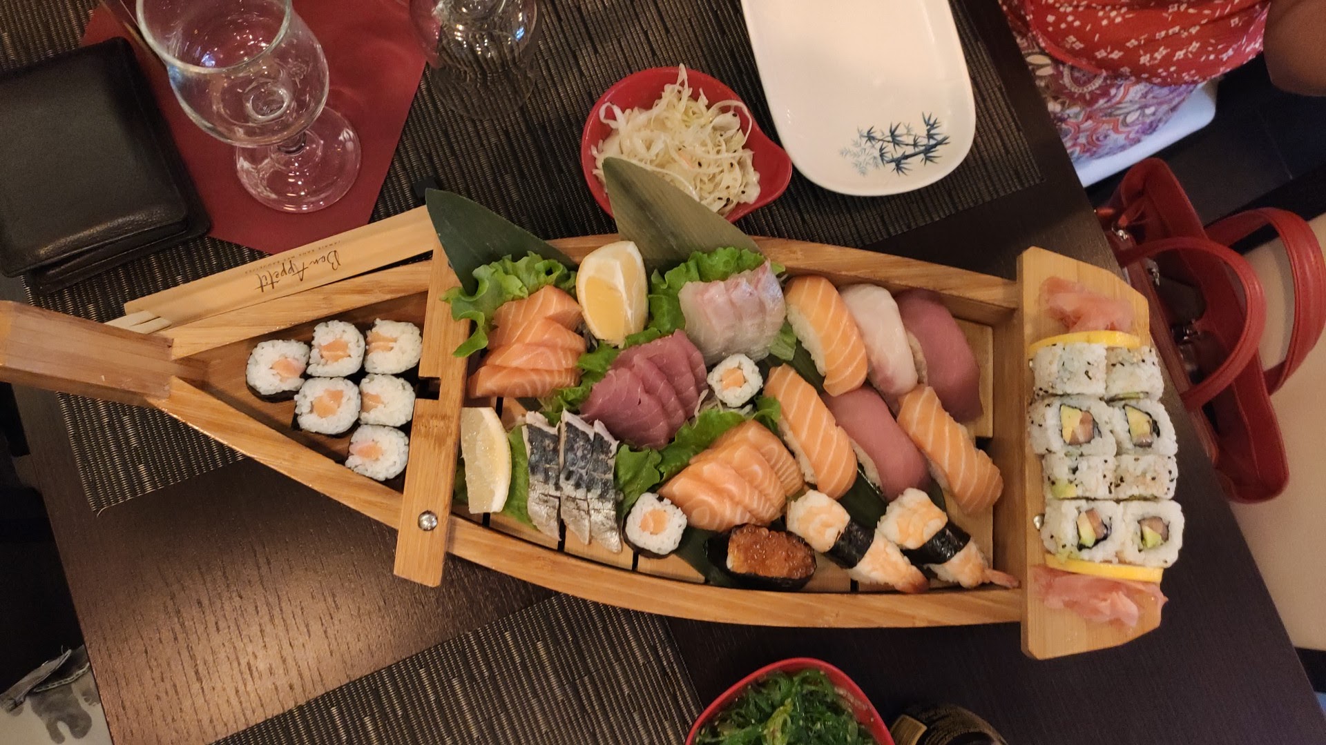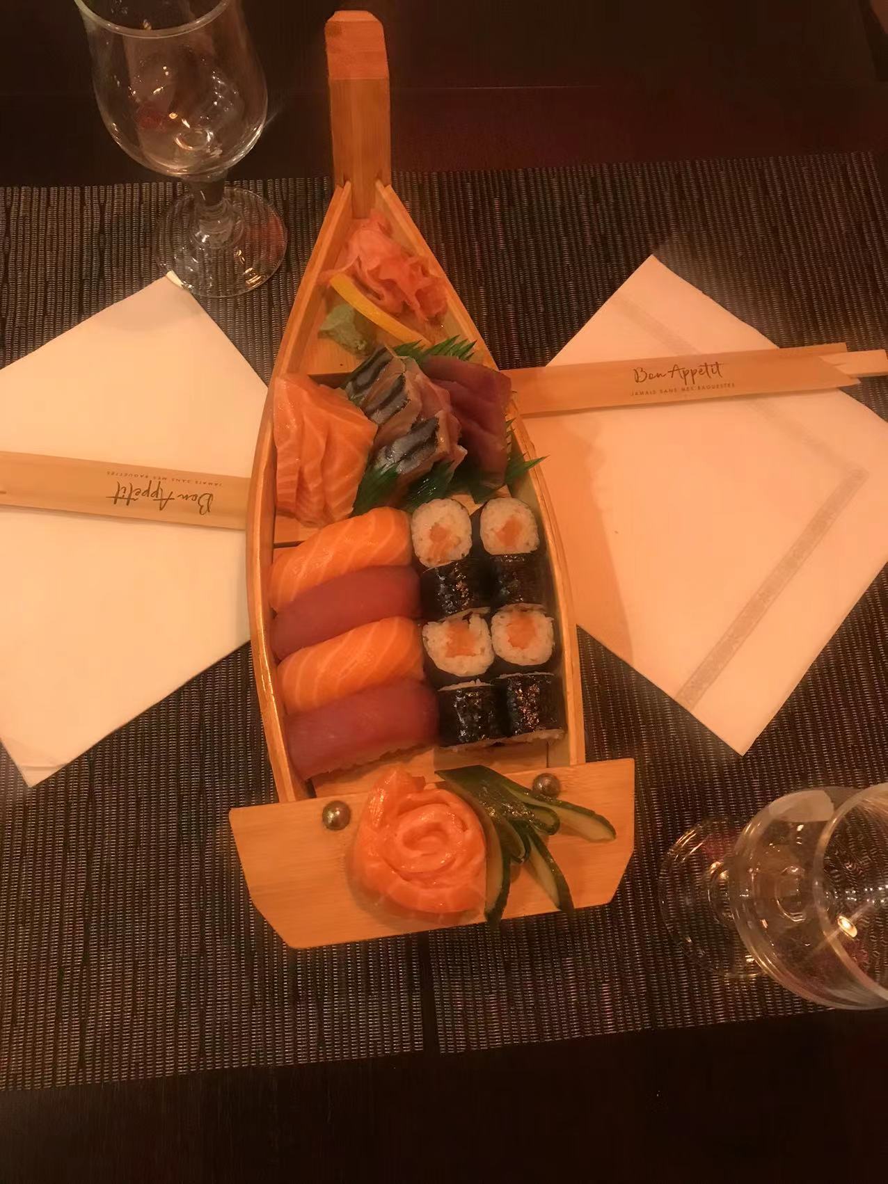 Superbe repas hier soir. Probablement le meilleur restaurant japonais que nous avons mangé. Le bateau est vraiment bien fourni pour 2 personnes et la qualité est au rendez vous. Les poissons bien frais et parfumés. Bref c'est vraiment une bonne adresse !