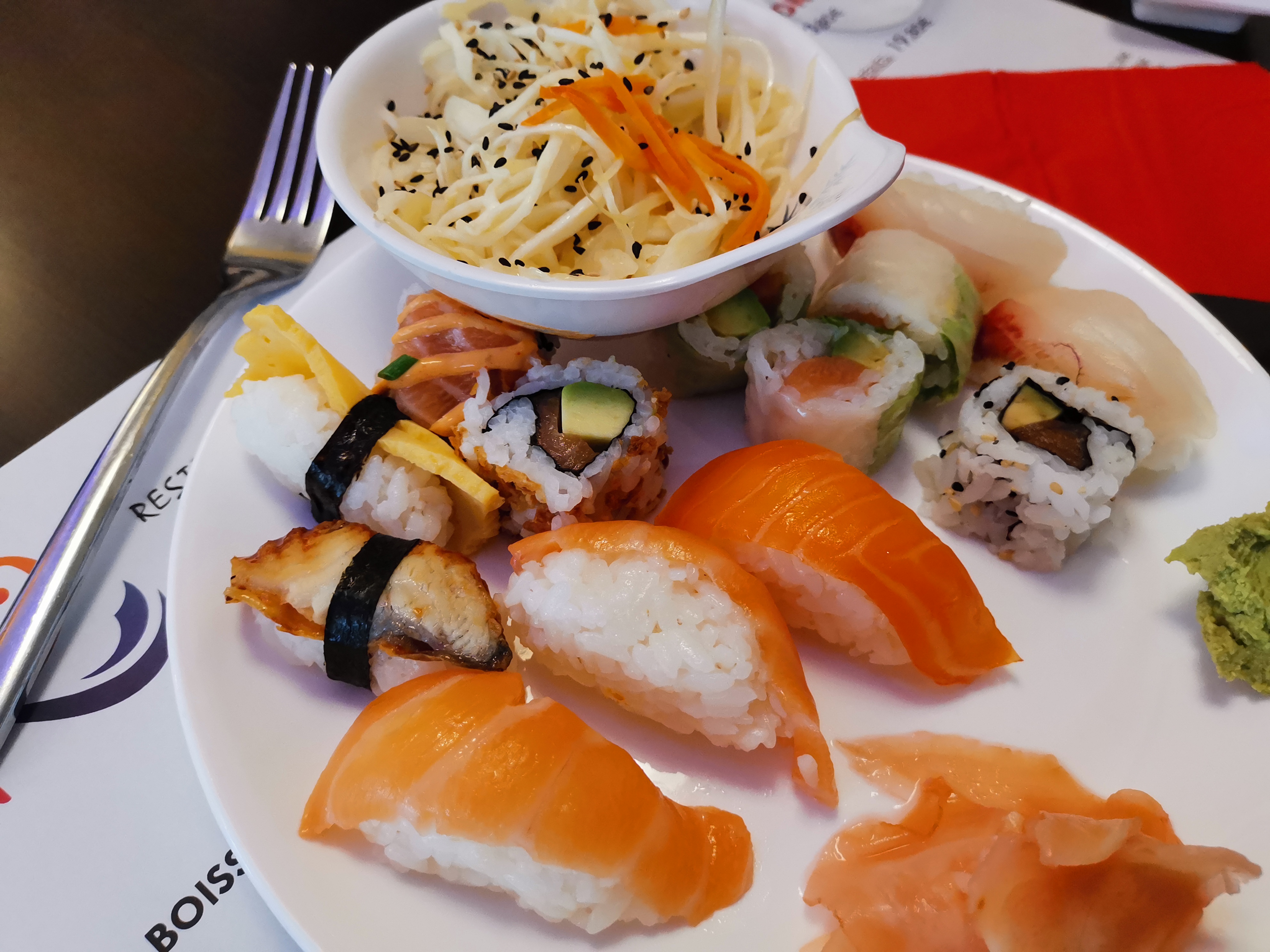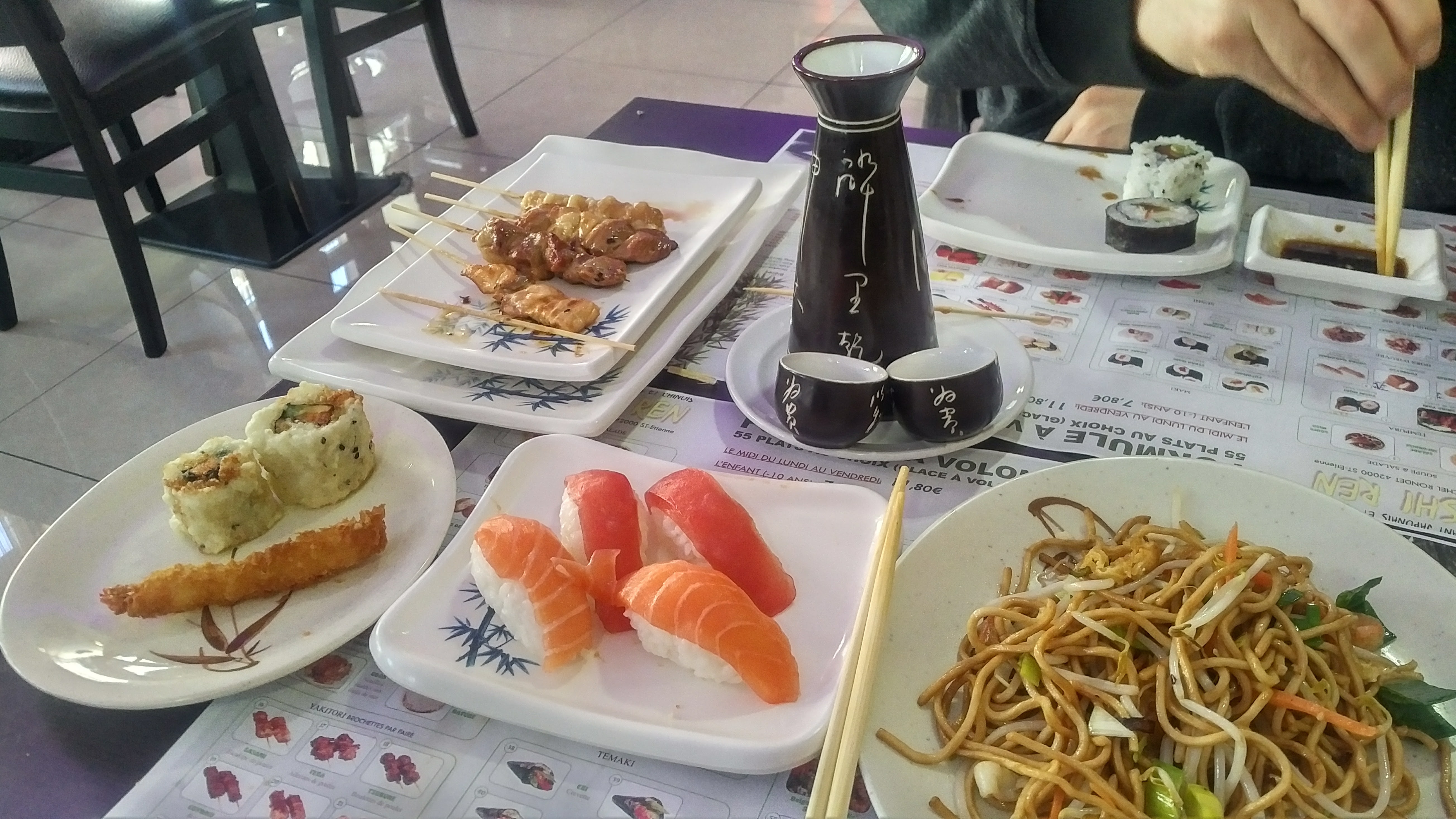 Posté le 13/09/2017 à 21:08"Cela fait plusieurs fois que je mange chez eux, et je suis pas déçue, c'est vraiment délicieux, et niveau prix c'est vraiment avantageux. Le seul désavantage c'est vraiment le fait d'y aller qu'à deux, car l'attente est un peu longue, et on a des petites assiettes, les makis et sushis sont donné deux par deux ... ce qui est dommage. Bizarrement c'est plus rapide quand j'y suis allée en groupe, en plus ils font de grosses assiettes tu ne sais plus où en donner de la tête. Un bon moment à partager avec ces amis. Sinon cela reste mon restaurant préféré sur Sainte Etienne, pour 17.80 menu à volonté franchement ... on va pas se casser la tête !! :D Parfois ils oublient un peu ce que vous mettez dans la liste, mais c'est pas grave vous pouvez toujours recommandez."