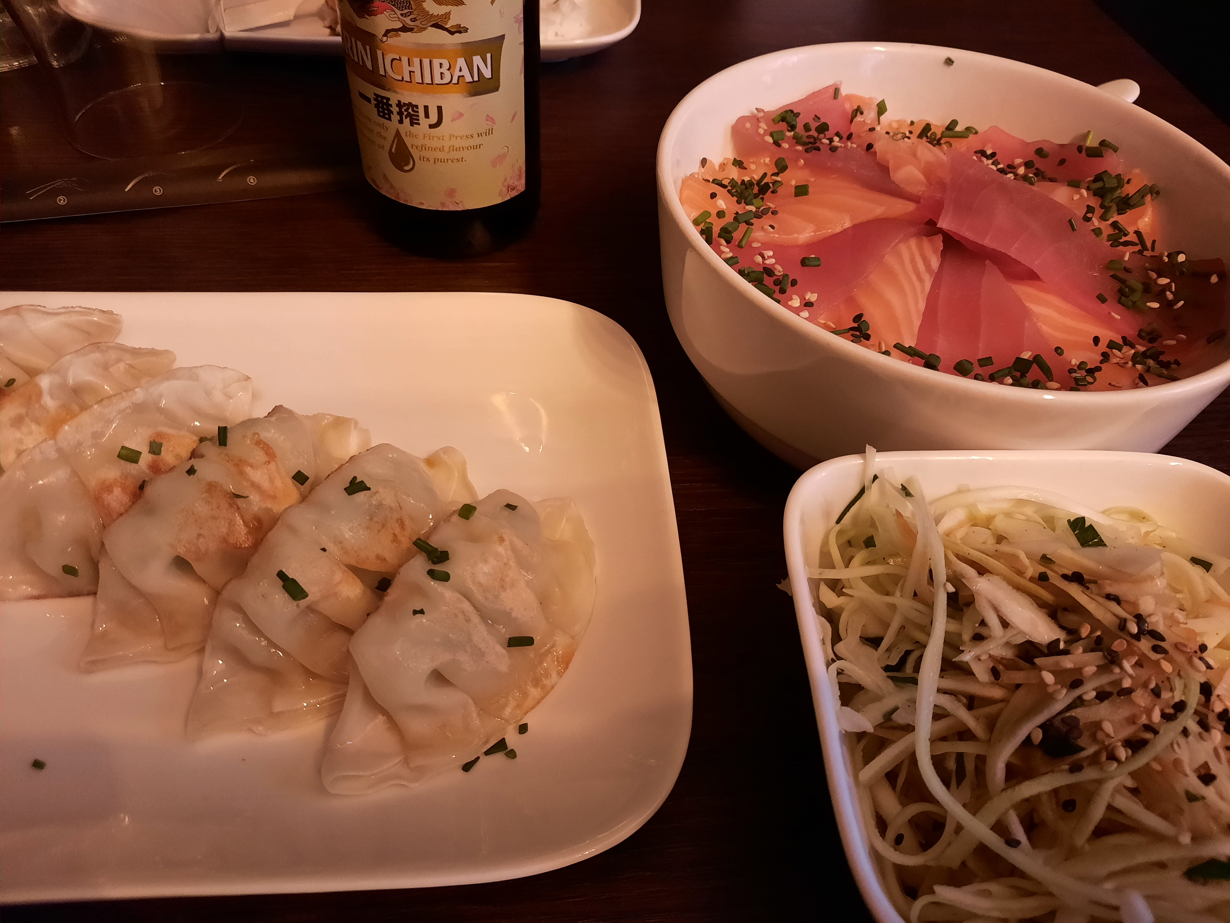 Ambiance chaleureuse. J'ai adoré la soupe miso, les sushis et le gyoza au poulet !