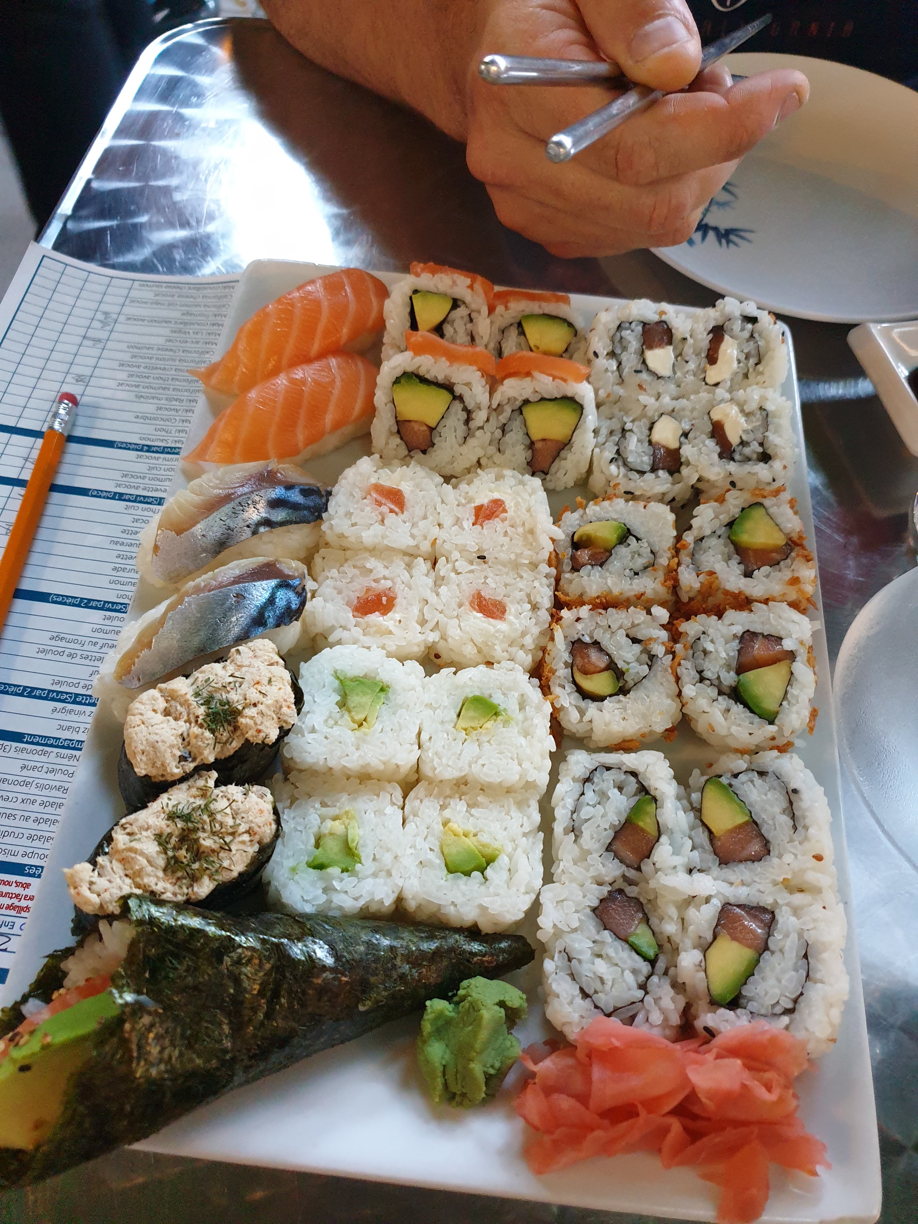 Posté le 31/03/2024 à 11:37"Correct mais vraiment sans plus. Pingre sur les quantités (maki a peine plus large qu'un pouce, et épaisseur divisé par 2 par rapport au standard). Donc oui sur la carte on se dit que c'est un bon rapport qualité prix mais quelle déception une fois reçu. C'était aussi très sec. 3 étoiles car ils ont été flexibles et gentils, mais je n'y retournerai pas."