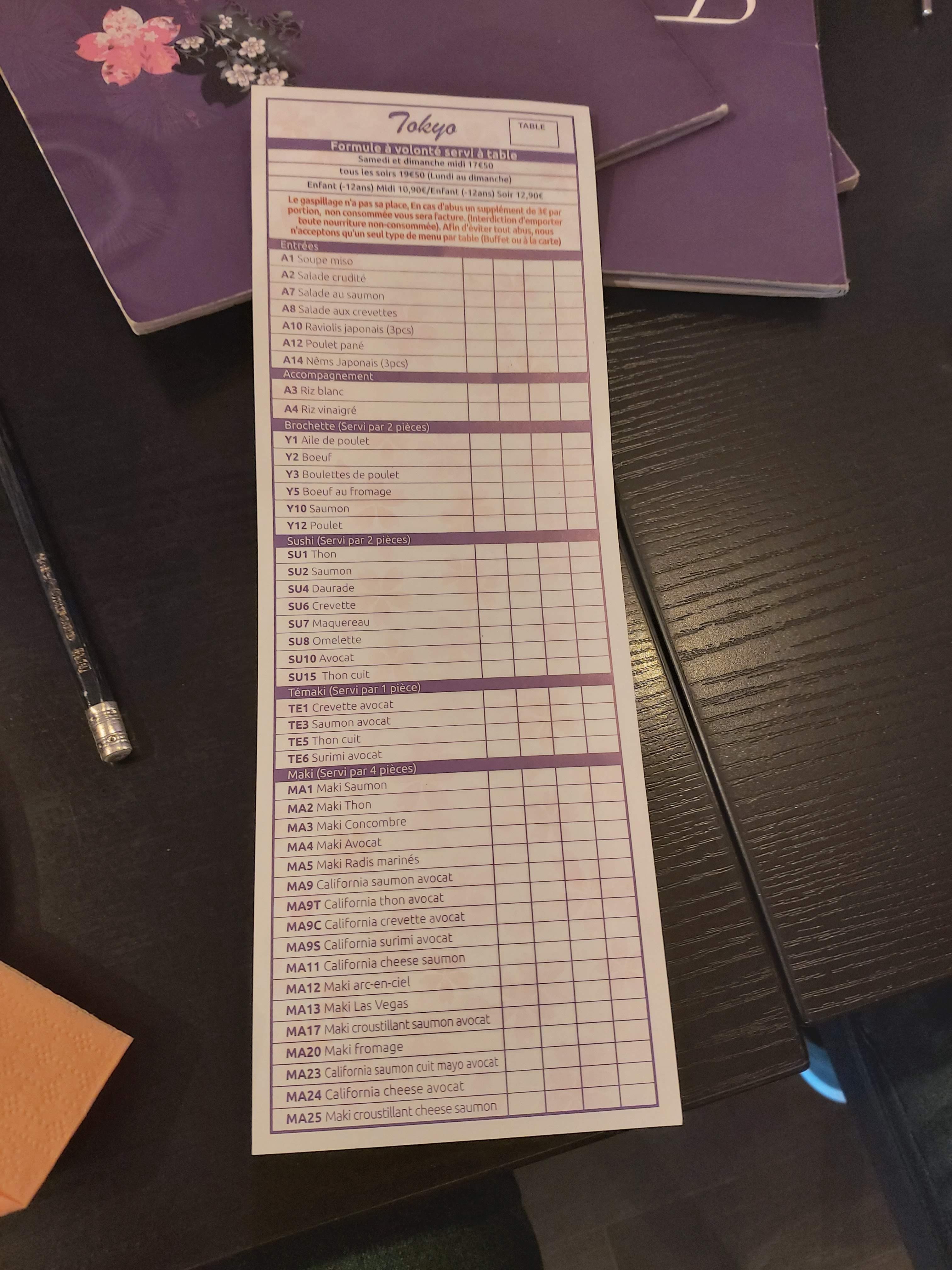 Posté le 23/11/2023 à 19:23"Je mange souvent au Tokyo, la cuisine est bonne le service est soigné et le personnel est super sympa, le rendez-vous idéal entre amis pour un repas à volonté et en bonus les Mojitos sont top ;) je recommande 👍"