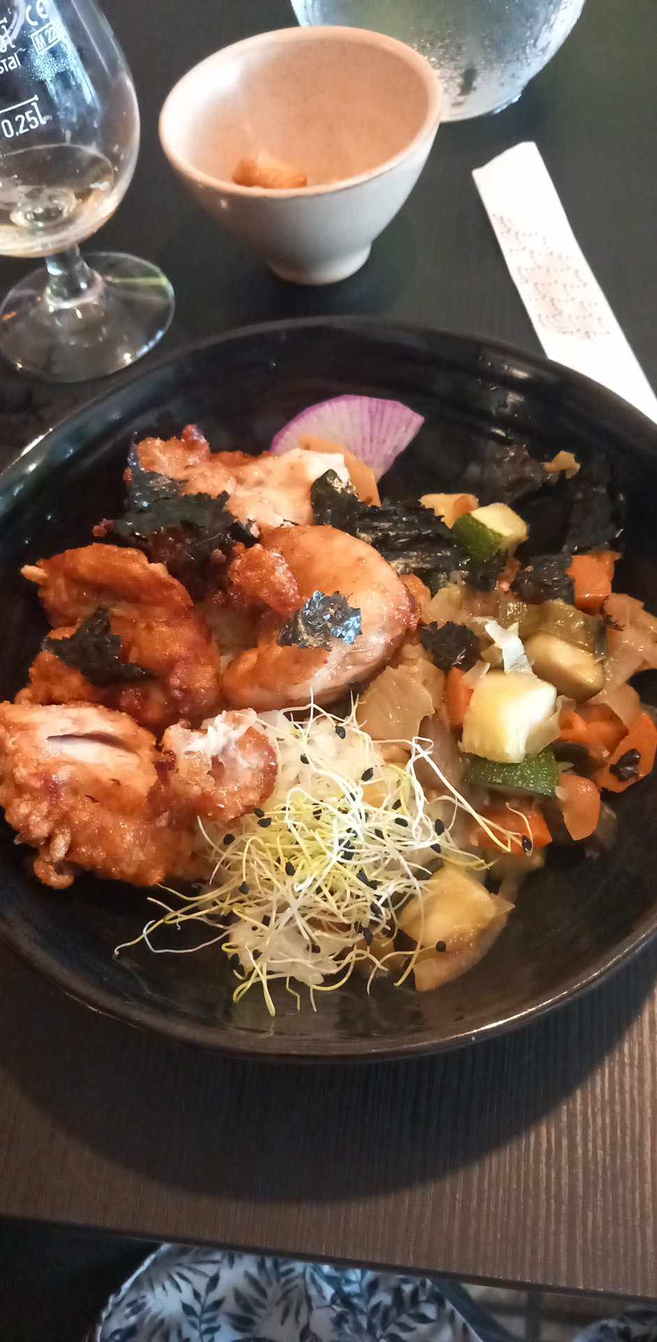 Déçu, riz sans goût, portions un peu Légère par rapport au prix. Plat trop sucré qui casse le goût des autres ingrédients . Saveurs du Japon pas assez présentes.
