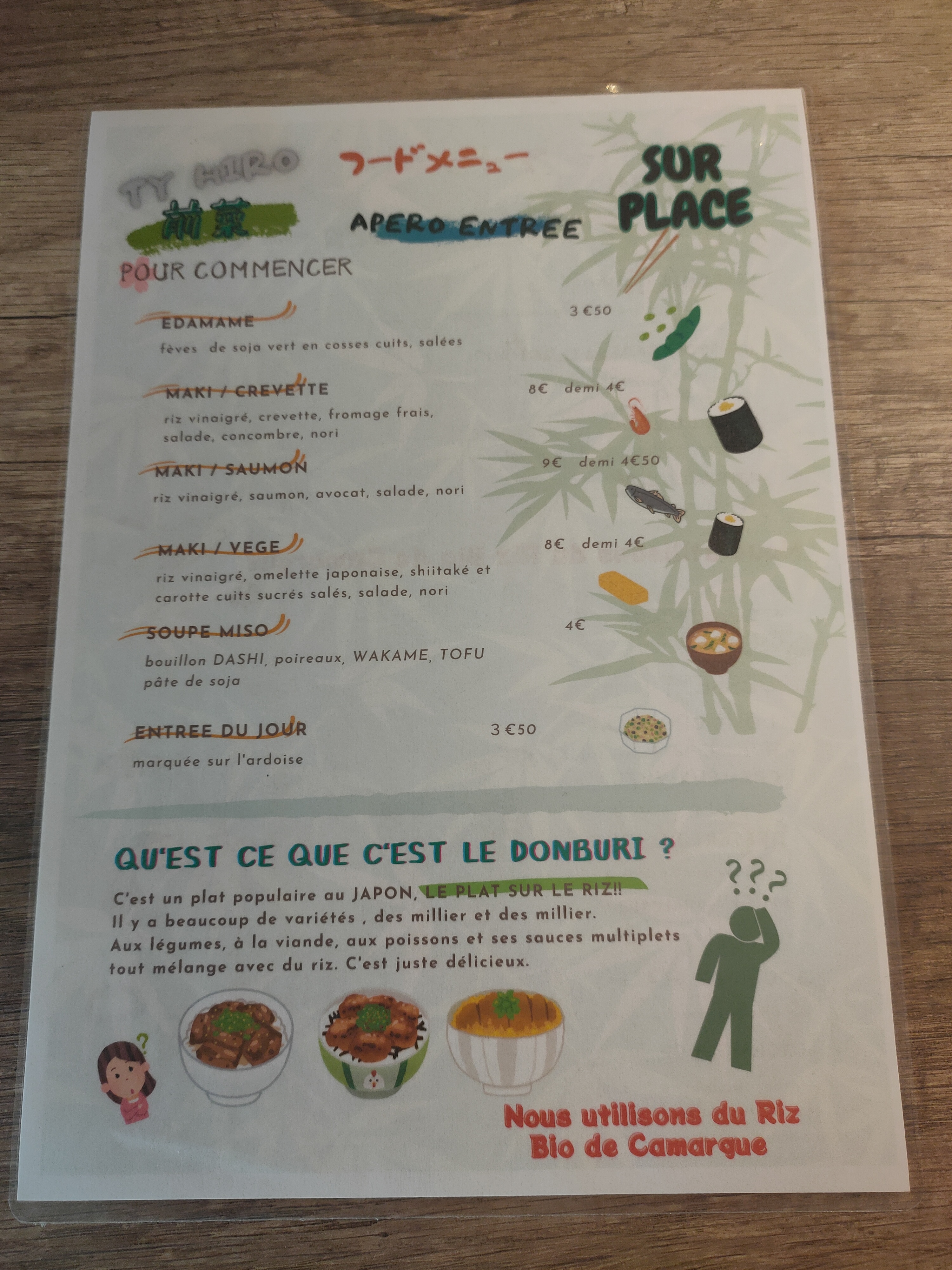 Une offre inattendue par l'originalité de son menu franco-japonais. Un japonais mais pas que....comme le rappelle la devanture sans oublier le sourire de la serveuse. Merci