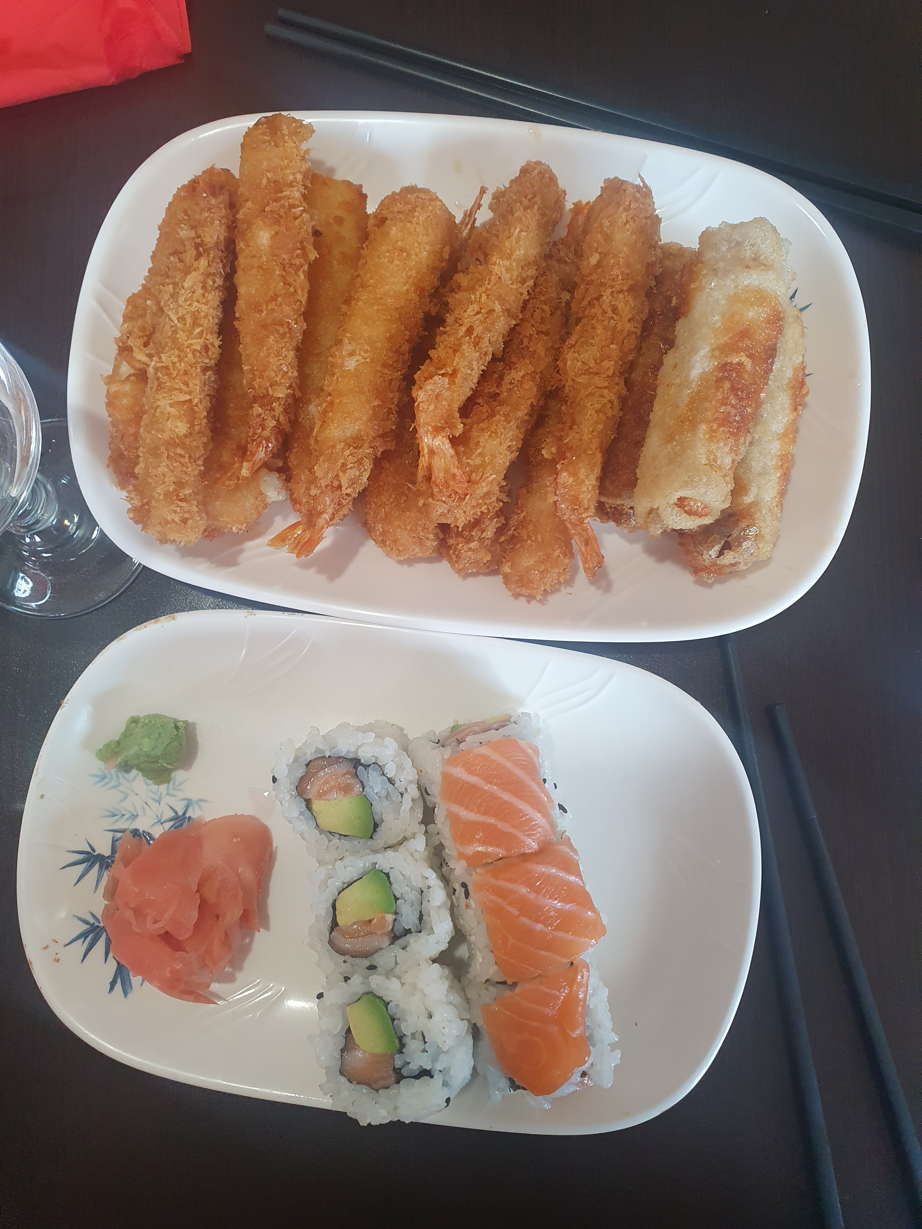 J'ai pris à emporter et chauffeur à l'heure. Les suchis au top. Les bouchés crevette très bonne. Je recommande.