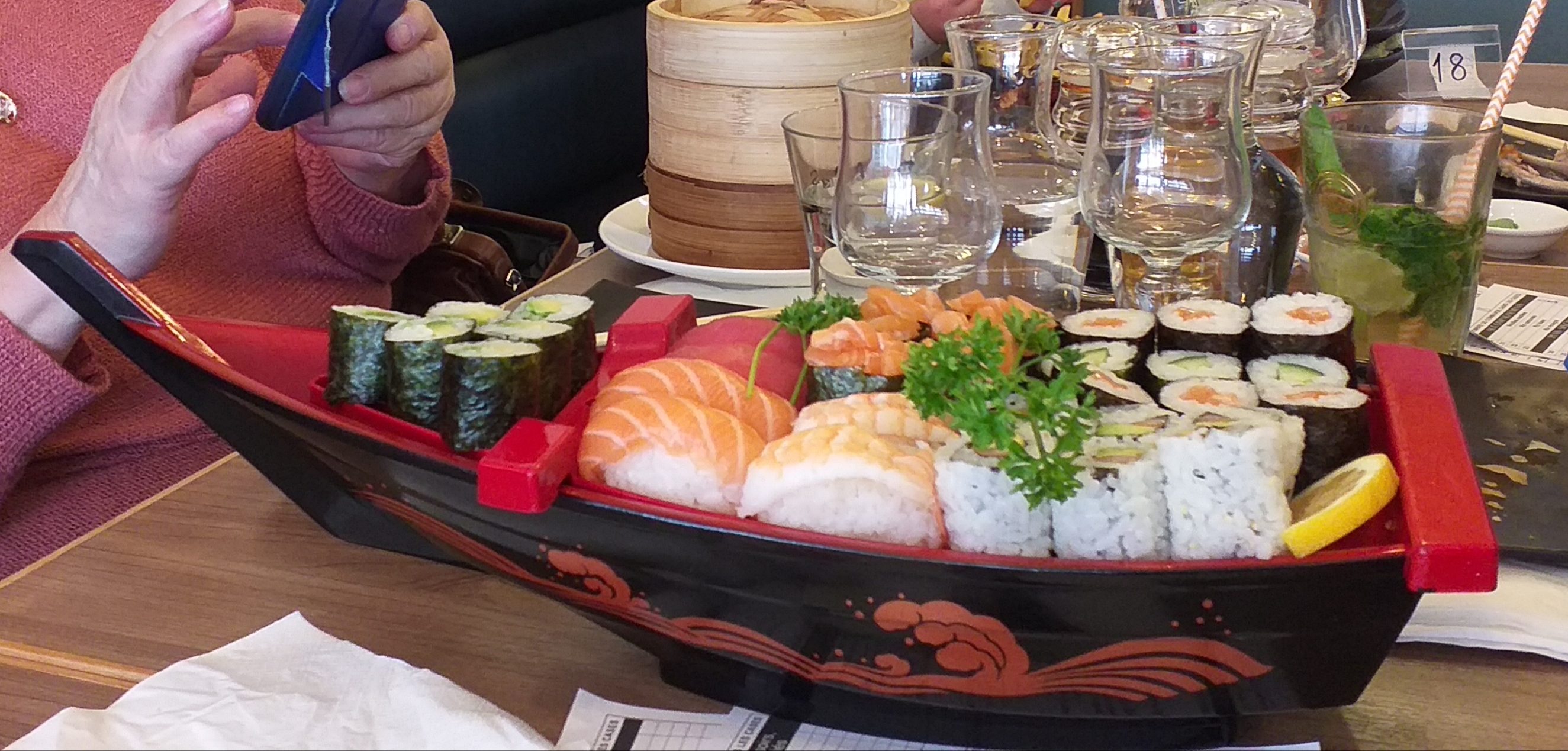 Posté le 14/01/2024 à 11:51"Les sushi sont super bon mais les raviolis a la crevette ont un goût spécial Ambiance niquel"