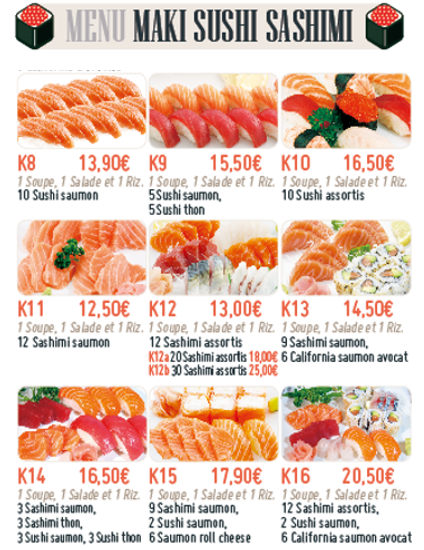 Posté le 17/10/2024 à 15:56"Excellente adresse! Les sushis et les sashimis sont savoureux ! Merci beaucoup pour la qualité de vos produits"