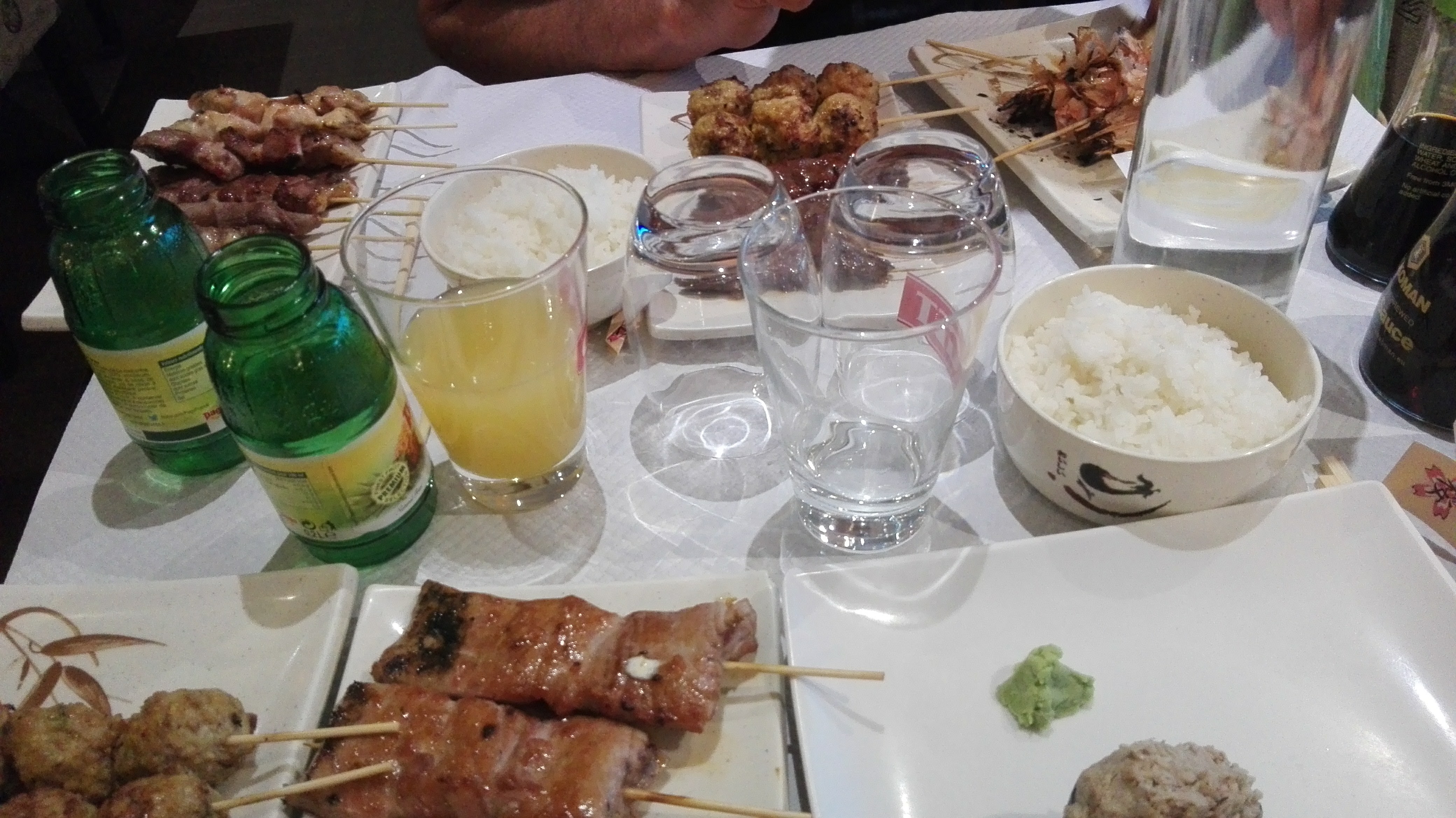 J'ai été invité dans ce restaurant. Je n'aime pas le poisson cru et je ne connais pas trop la cuisine japonaise donc j'ai été ravie de trouver un menu avec des brochettes de viande et de poisson, dans une sauce soja sucré salé. Entrée soupe claire et salade de chou, très bon également. Ambiance cantine.