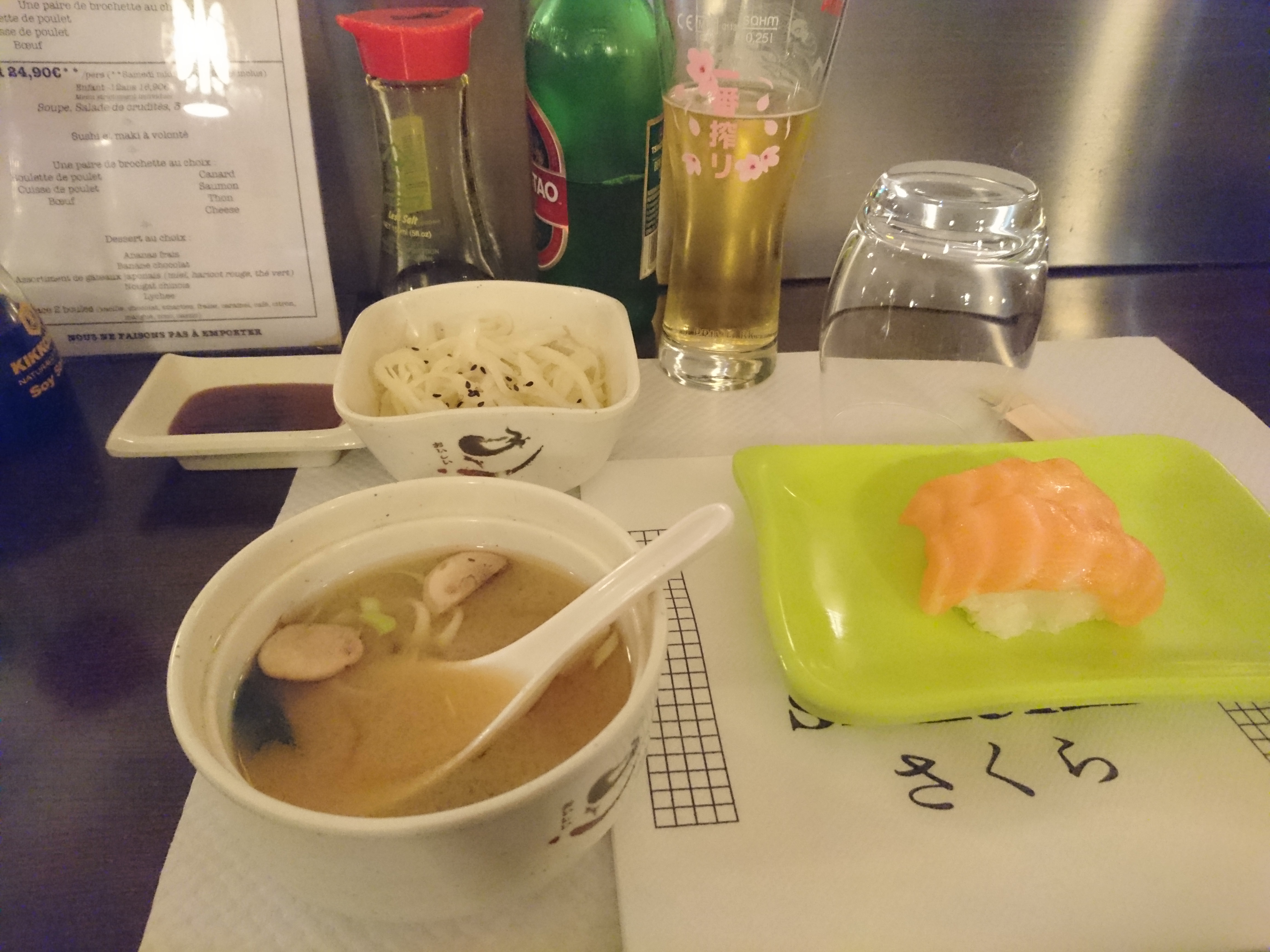 C'était correct pour ne pas dire moins mais cela ne m'a pas véritablement emballé. Je dois être difficile sans doute. Soupe Miso sans tofu, choix du riz contestable aussi bien pour le maki que pour le riz blanc de service. Et mes Yakitori étaient froid. Portant je suis arrivé en début de service avant le rush ... Vraiment pas emballé. Surtout pour les prix proposés qui ne sont pas les plus bas ni les plus hauts du marché. C'était moyen et encore... Heureusement la serveuse était sympa et les lieux était accueillant et bien entretenu.
