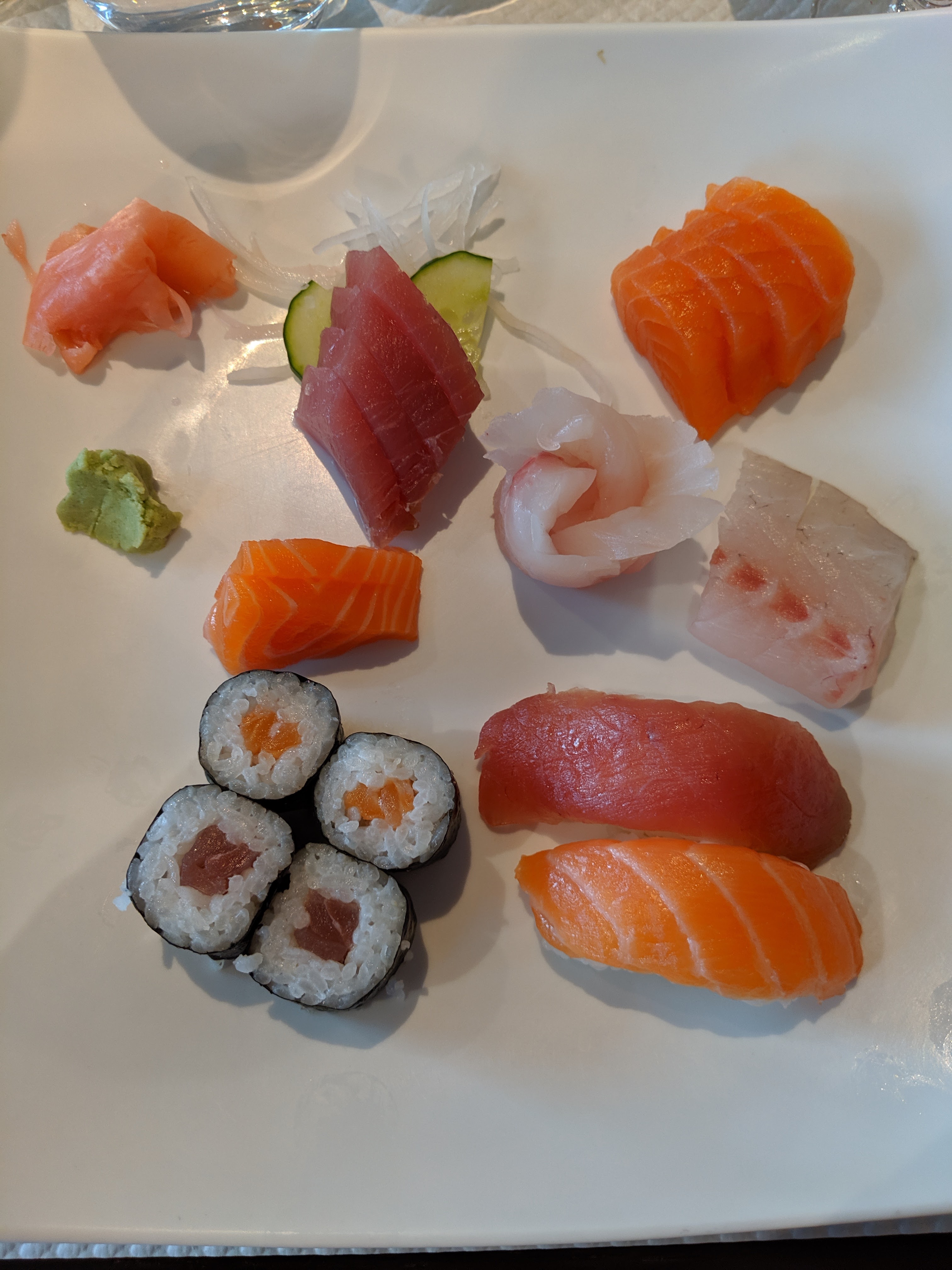 Bon et frais mais les makis et les sashimis sont devenus rikikis ... Les portions ont bien diminué et on a encore faim en sortant...