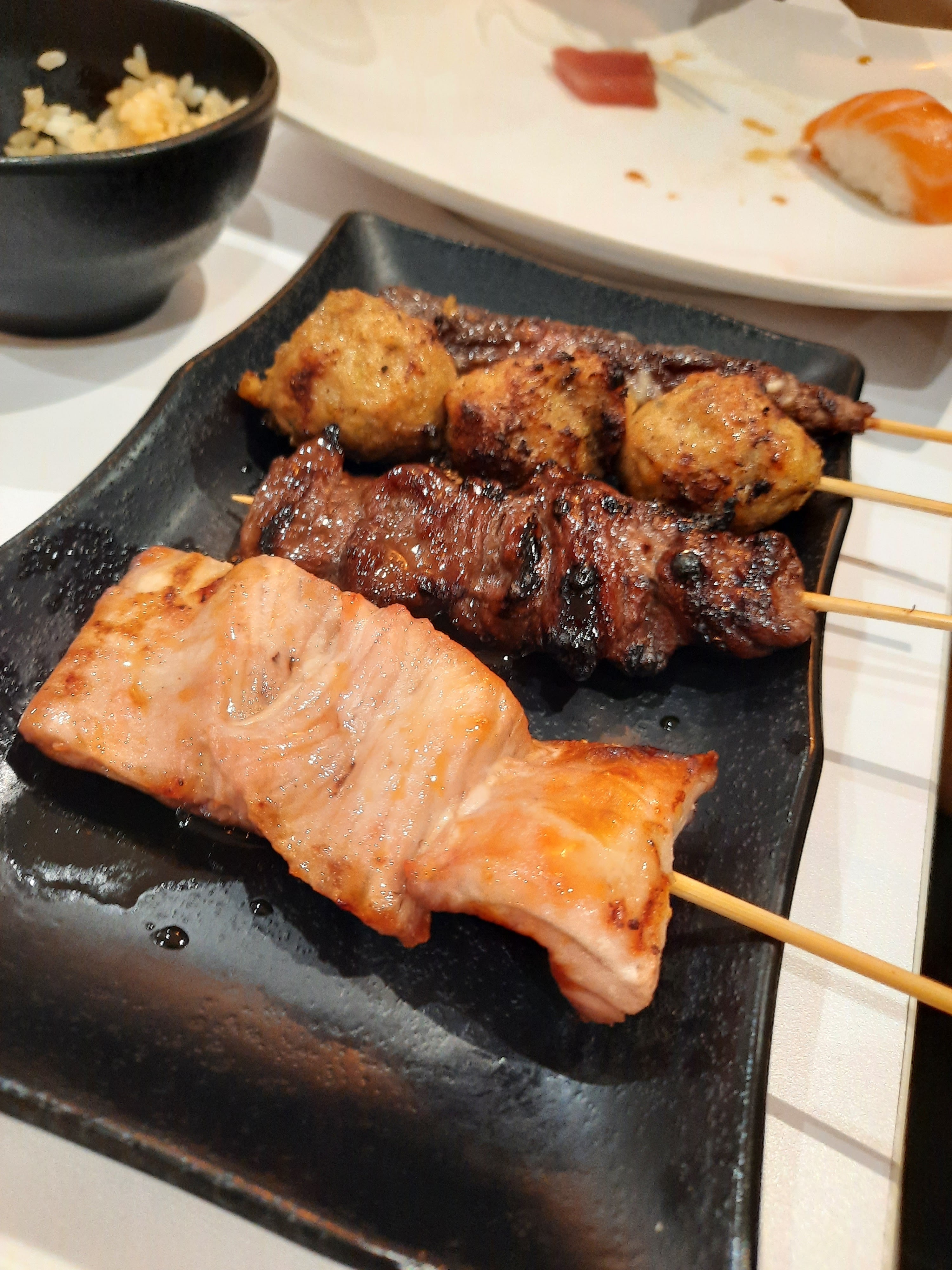 Superbe repas japonais ! De très bons sushis, une bonne soupe et de succulentes brochettes.