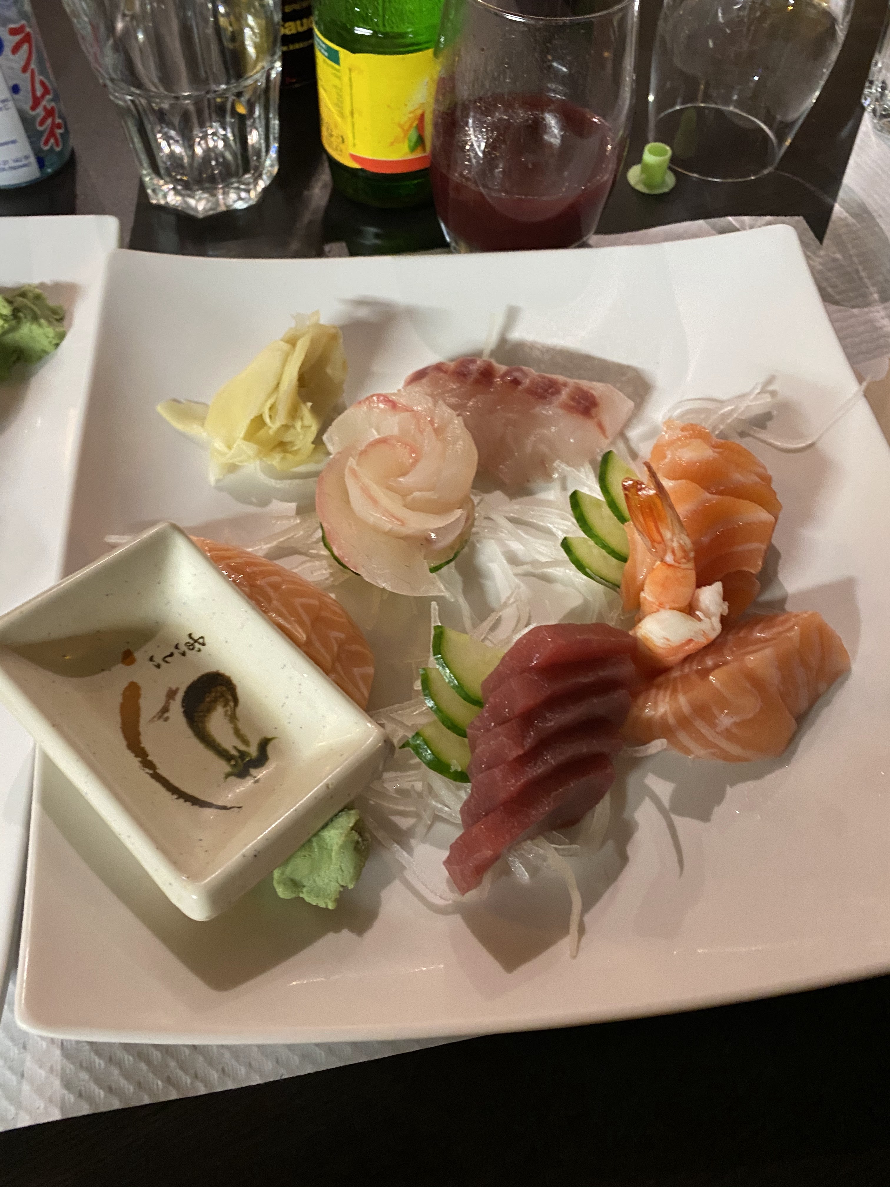 Un bon restaurant japonais avec du choix à la carte. Je trouve que les sashimi sont vraiment très petit ils pourraient faire un effort on est pas dans un restaurant gastronomique. Sinon ils sont bon, j’ai également pris les gyoza qui étaient très bon aussi.le service a été rapide malgré le monde.