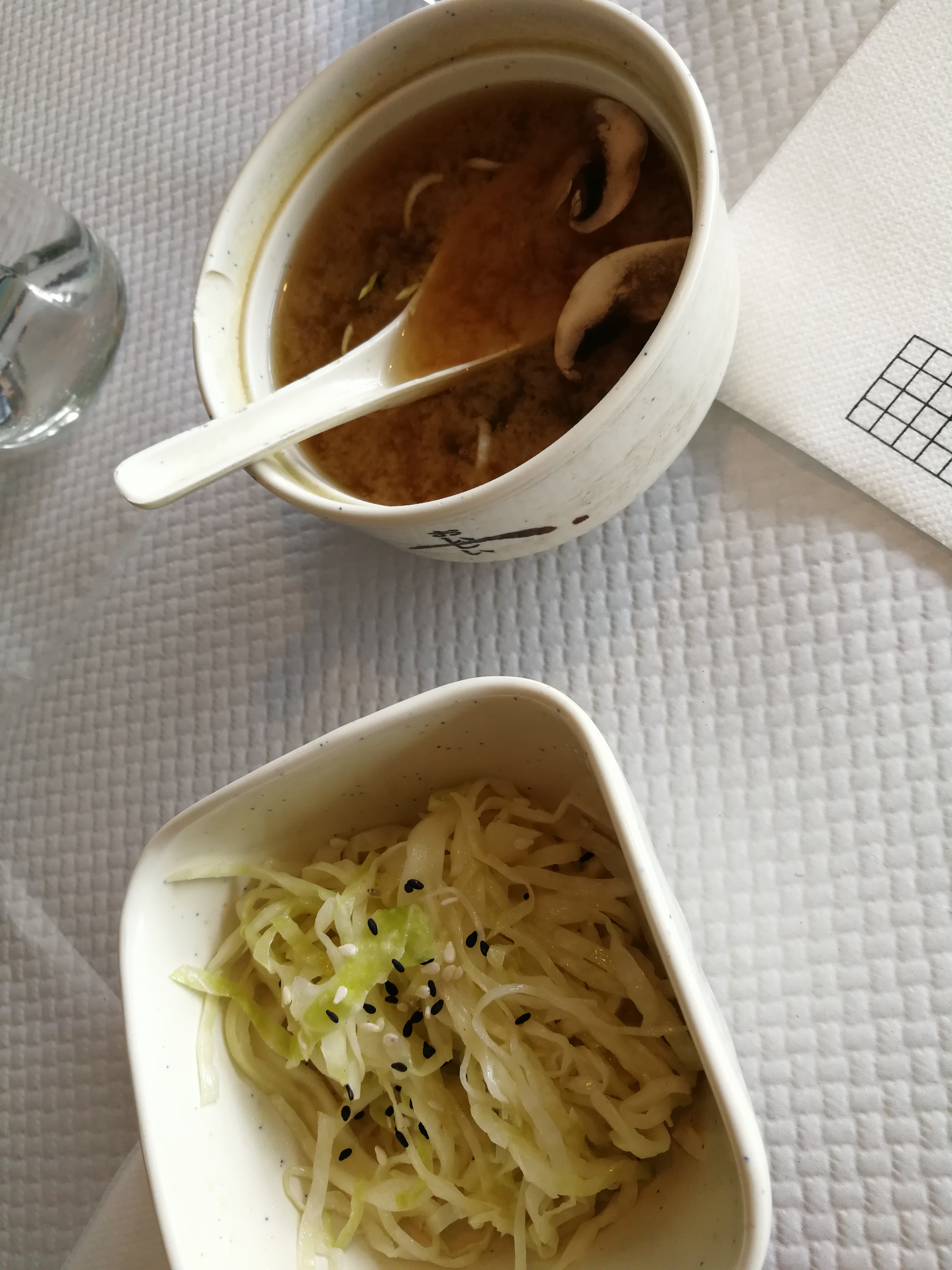 Les brochettes viandes ou poisson sont très bien, cest peut-être leur vrai spécialité... Les makis un peu moins La soupe et salade chou passent bien entrée. Les gyoza exllentes😋 Par contre le riz et les Maki, humm😕 bof Surtout que le gingembre et le wazabi sont donnés avec une telle parcimonie qu'on a du mal à relever le goût. ☹️ Petit moment de cooconing après repas avec des serviettes chaudes pour essuyer les mains🤩 que c'est agréable en hiver. Sinon repas copieux dans l'ensemble Une assez bonne table