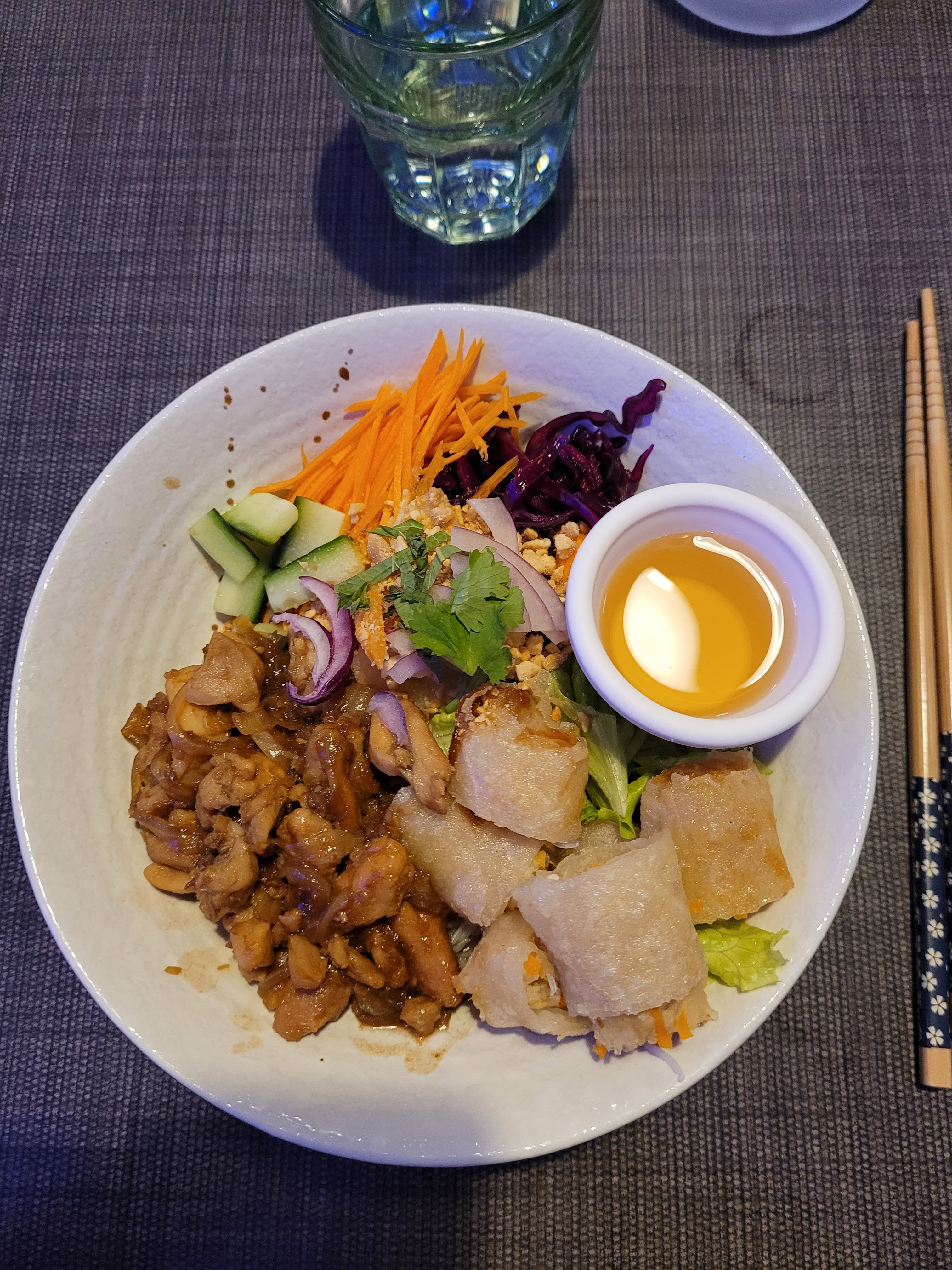 Très bon accueil, le restaurant est lumineux avec une terrasse. Situé juste à côté du cinéma (c'est top!) Les nems sont très bon. On a pris des sushis Tigre Roll avec anguilles, un délice !