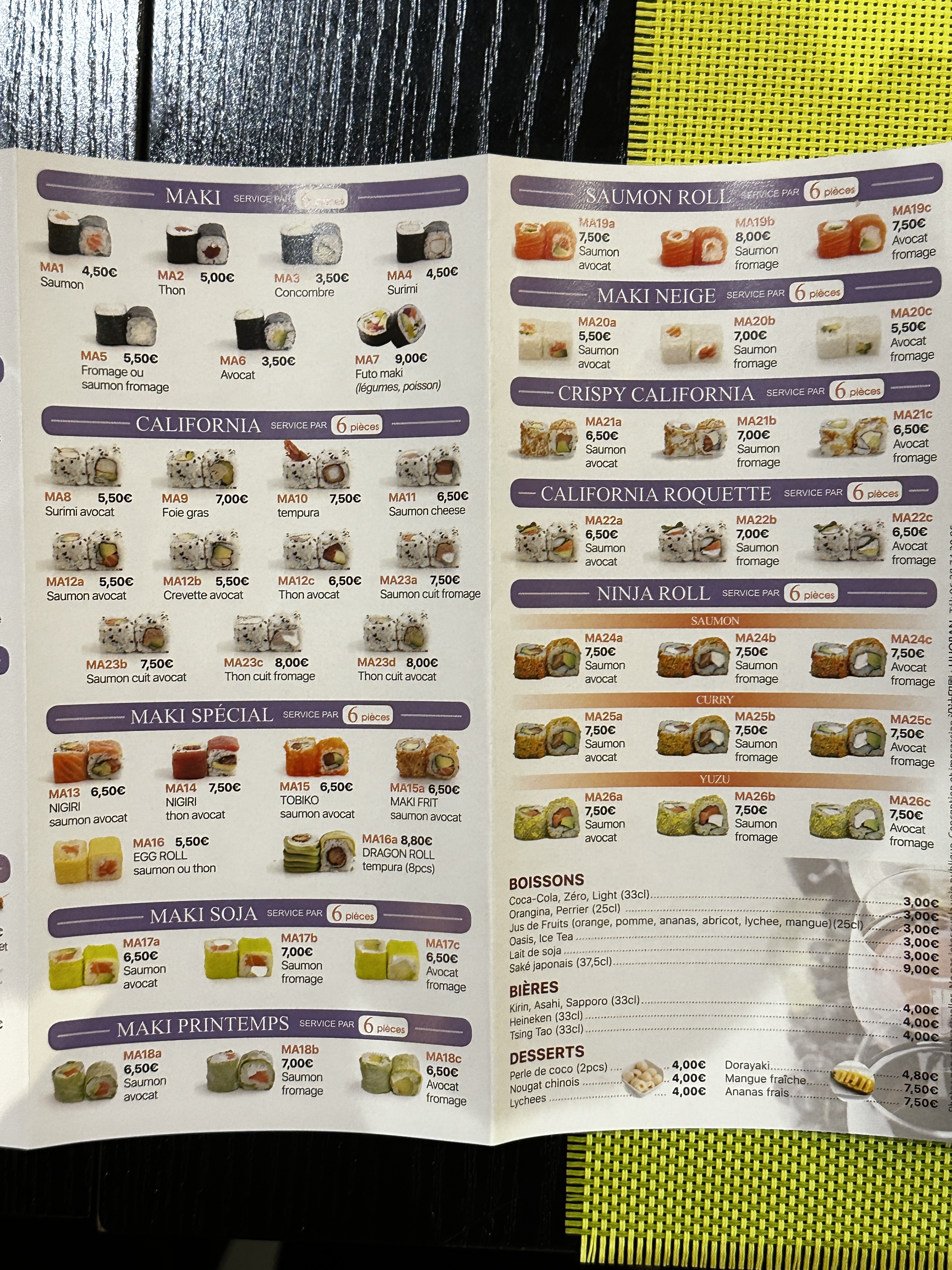 Très déçu par ce restaurant japonnais.. Mon conjoint et moi avons l'habitude des restaurent japonnais. Saumon pas de goût , le riz est fade , les prix sont chers pour ce que c'est .. En ce qui concerne les boissons payer presque 4euros pour une gorgé de cocktail 🍹 c'est abusé. Le dessert le mocci très peu pour le prix pas de goût comparer aux aux autres restaurants