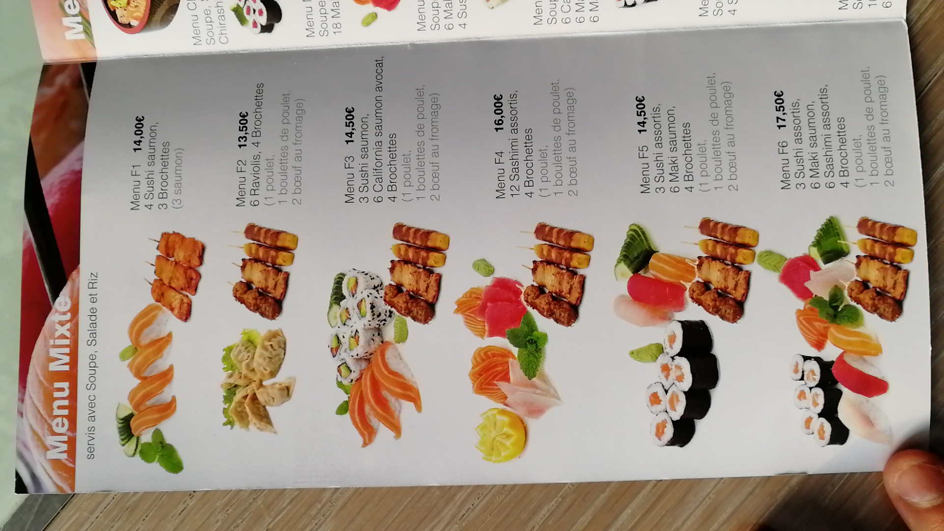 J'ai beaucoup aimée l'accueil la rapidité du service les plats sont bien préparé on du goût sont savoureux et gourmand. Je prend souvent le menu F3 qui est un menu mixte avec maki et brochettes (riz soupe ...) enfin c'est un bon rapport qualité prix mais la quantité est au rdv aussi