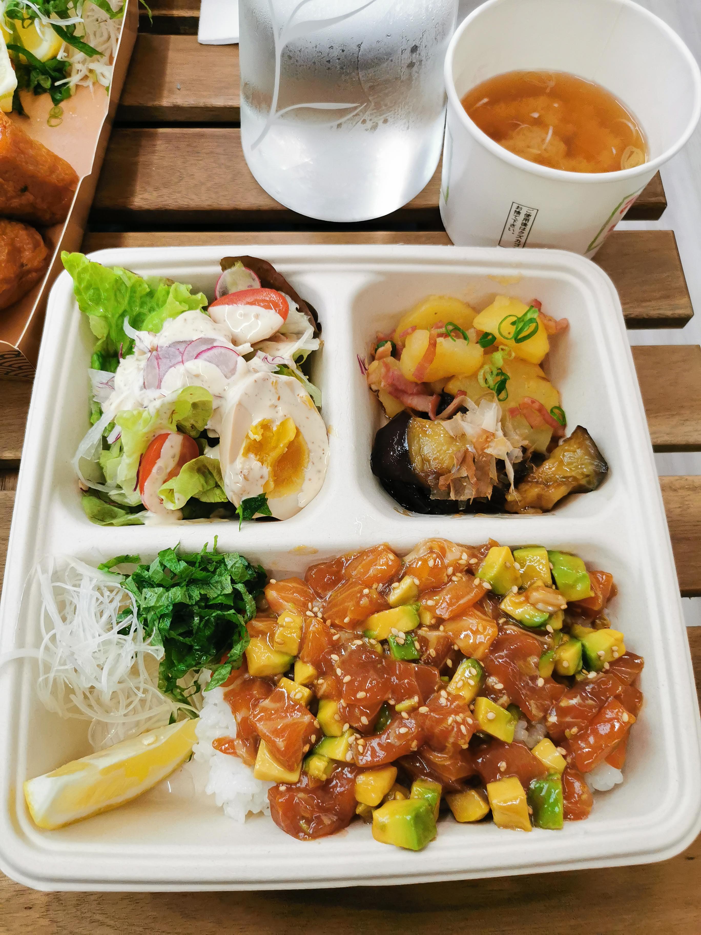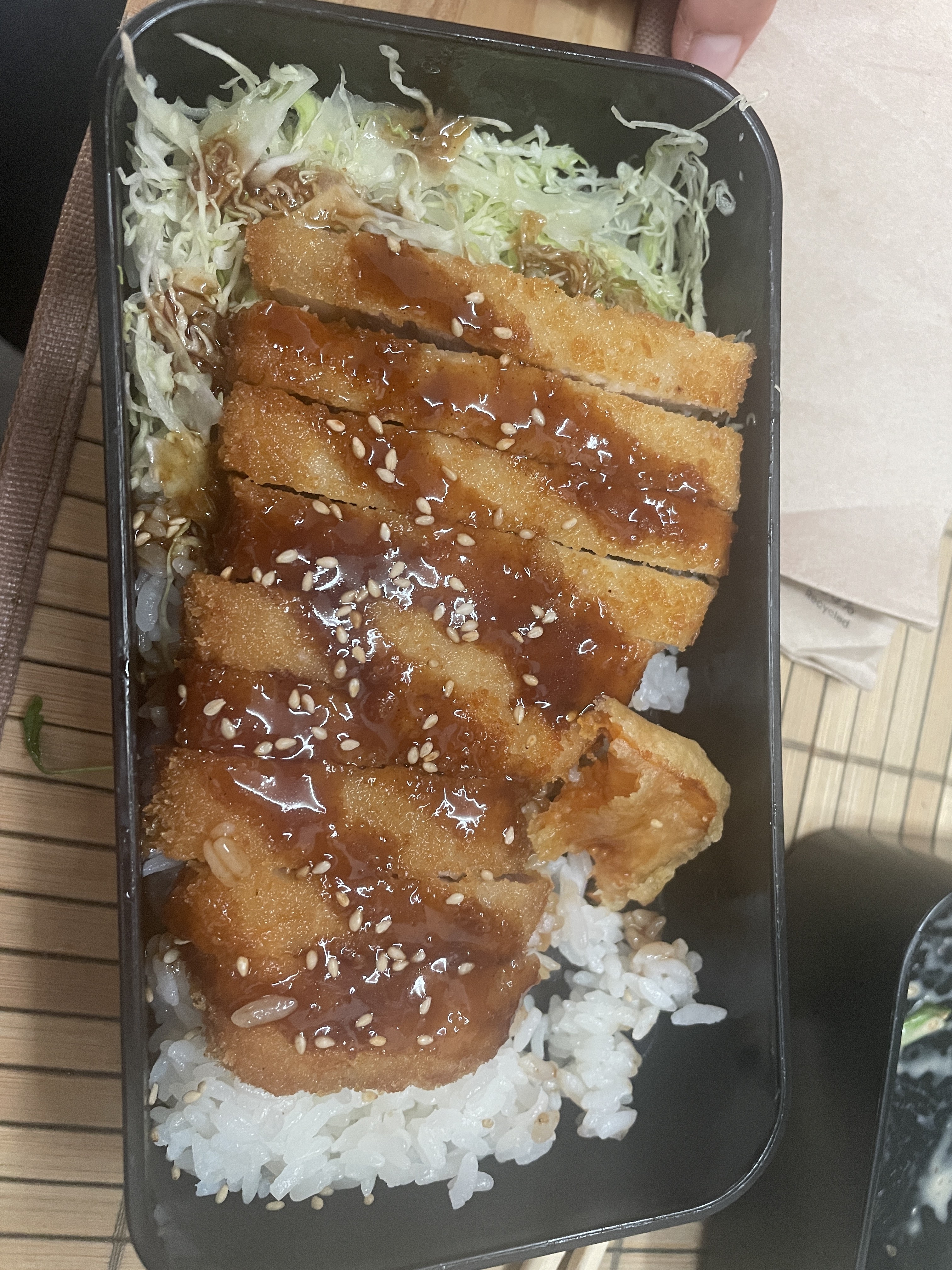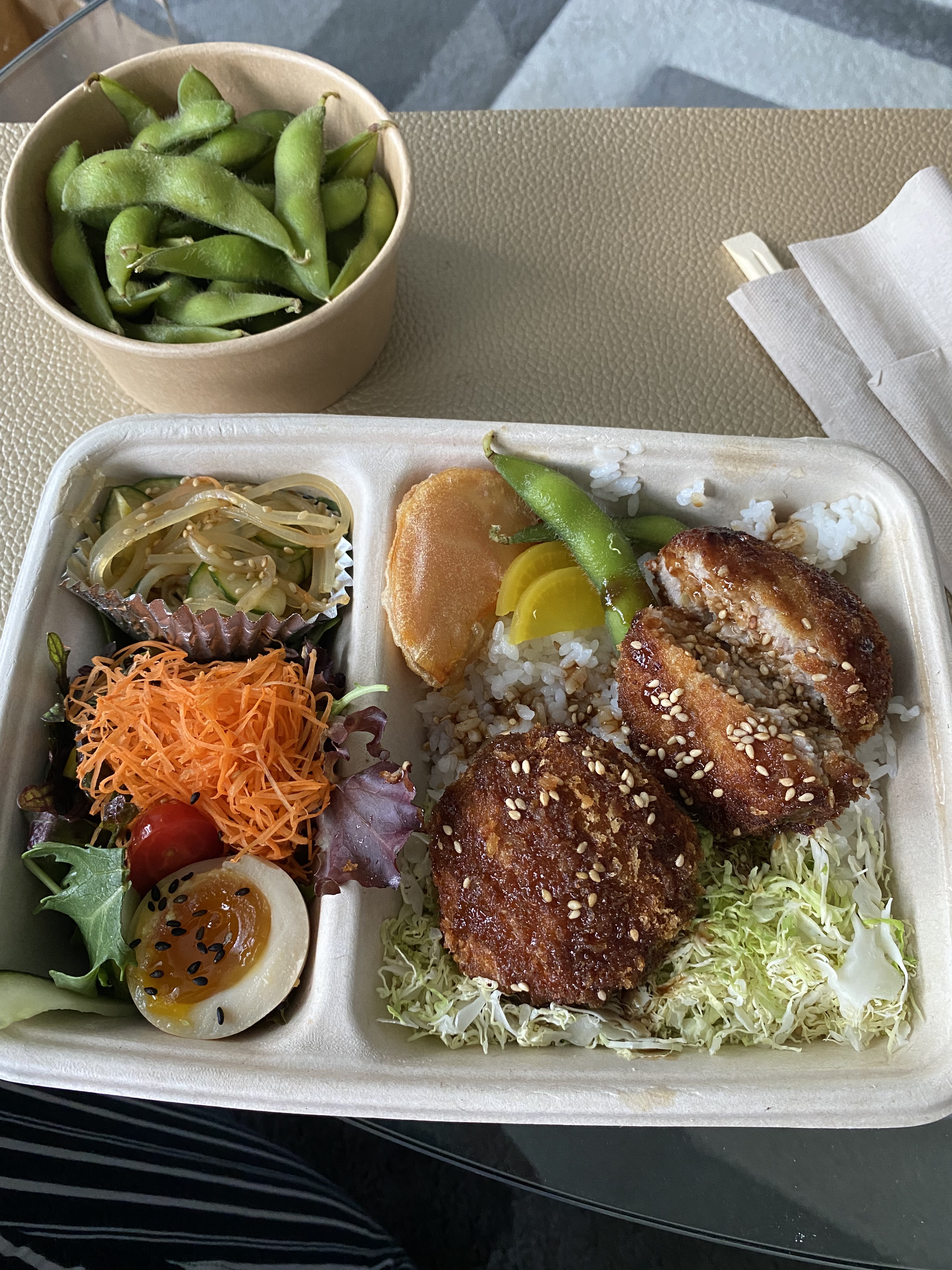 Découvert lors du marché à manger, le plat a base de riz et de poitrine de porc était délicieux. Ainsi que le cheesecake façon sésames noirs. Hâte de pouvoir tester les bentos sur place !