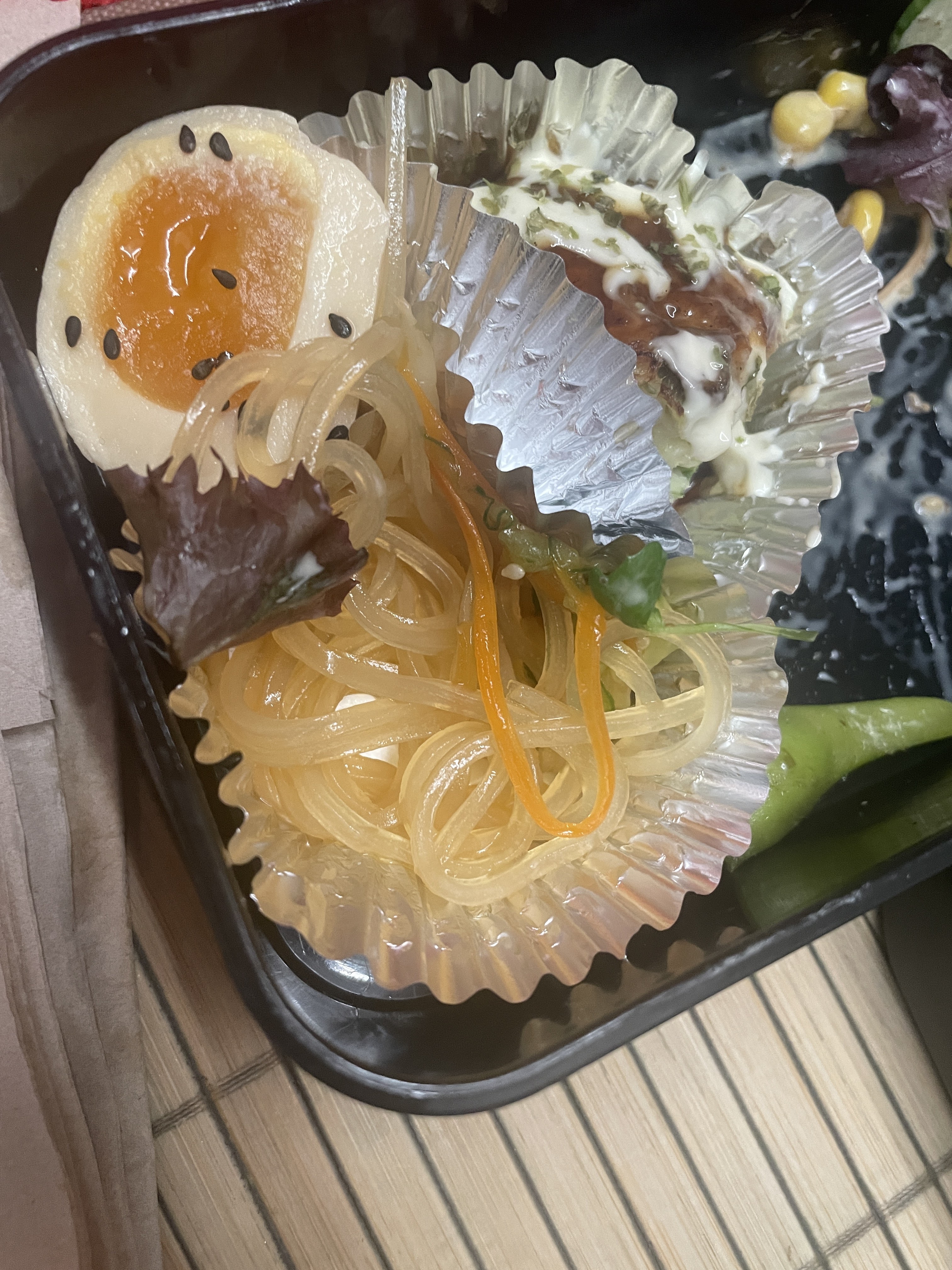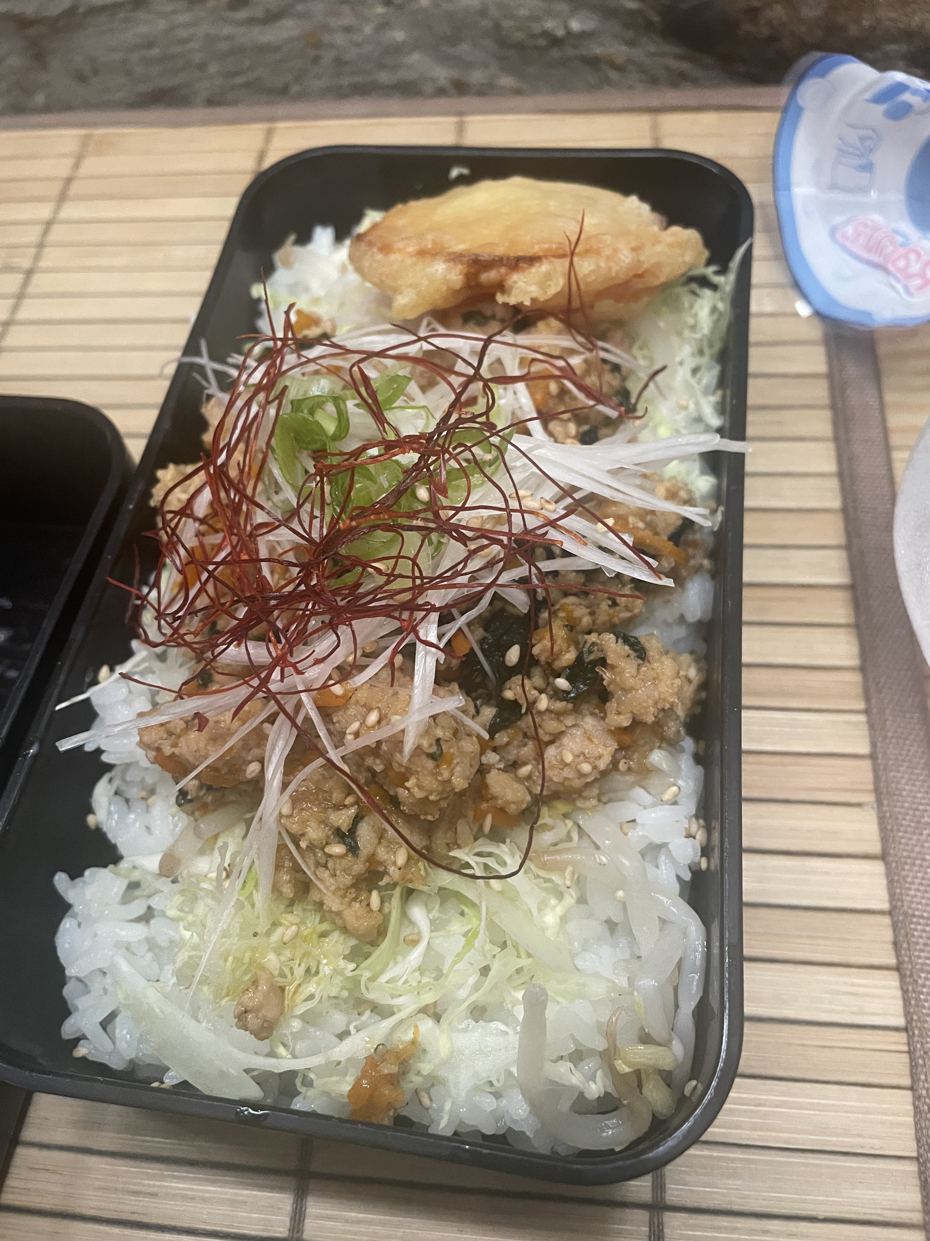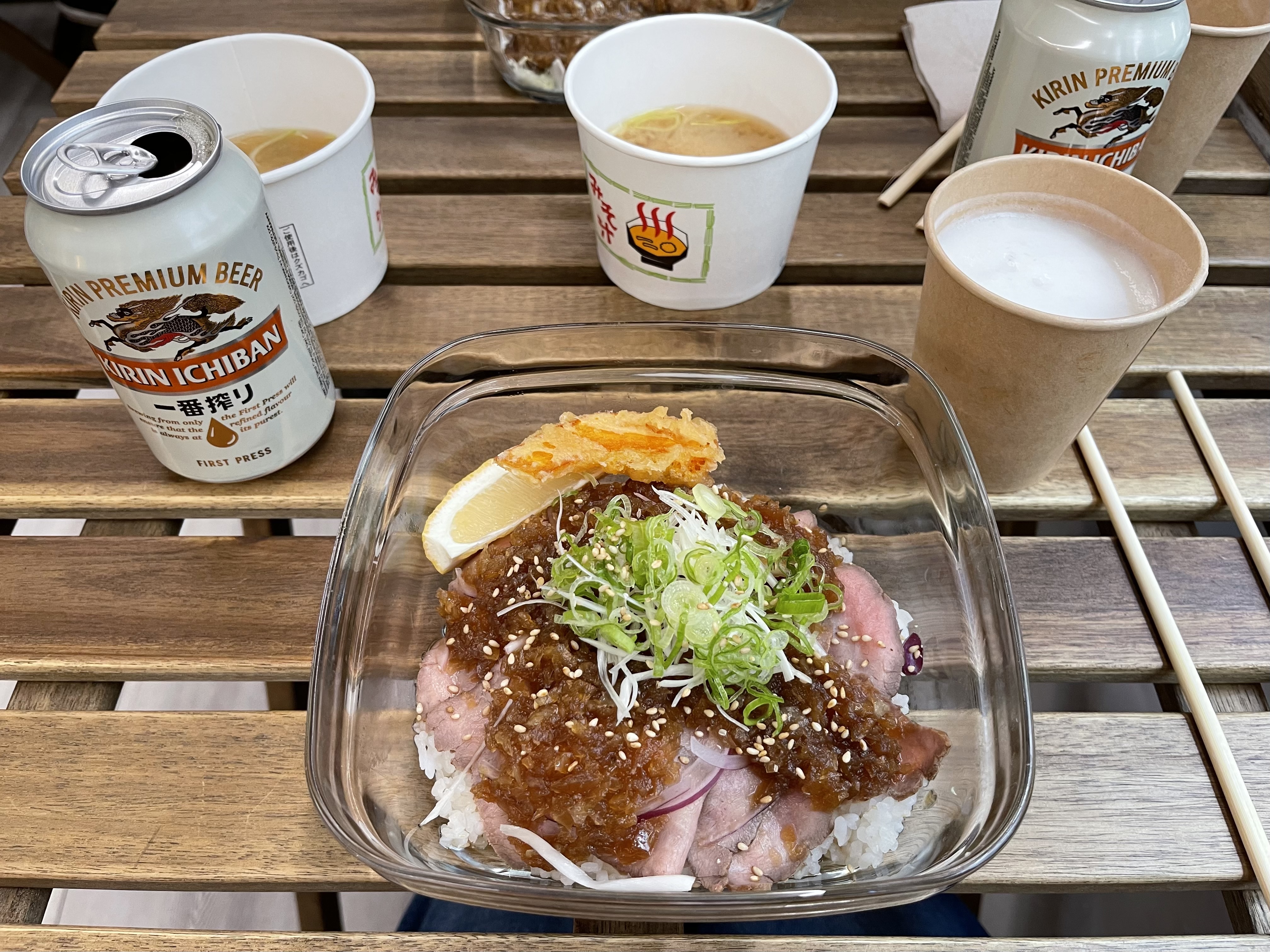 Découvert lors du marché à manger, le plat a base de riz et de poitrine de porc était délicieux. Ainsi que le cheesecake façon sésames noirs. Hâte de pouvoir tester les bentos sur place !