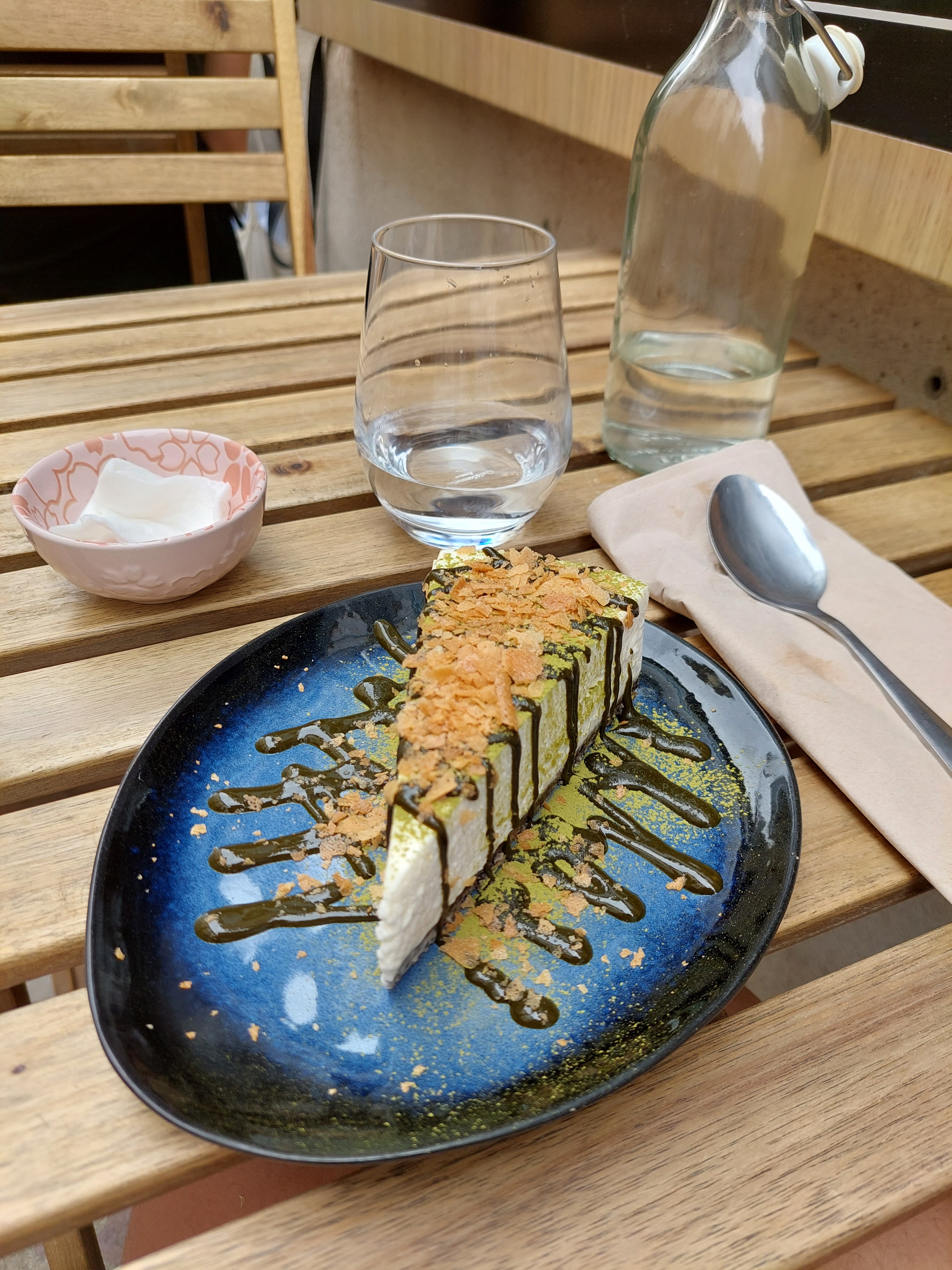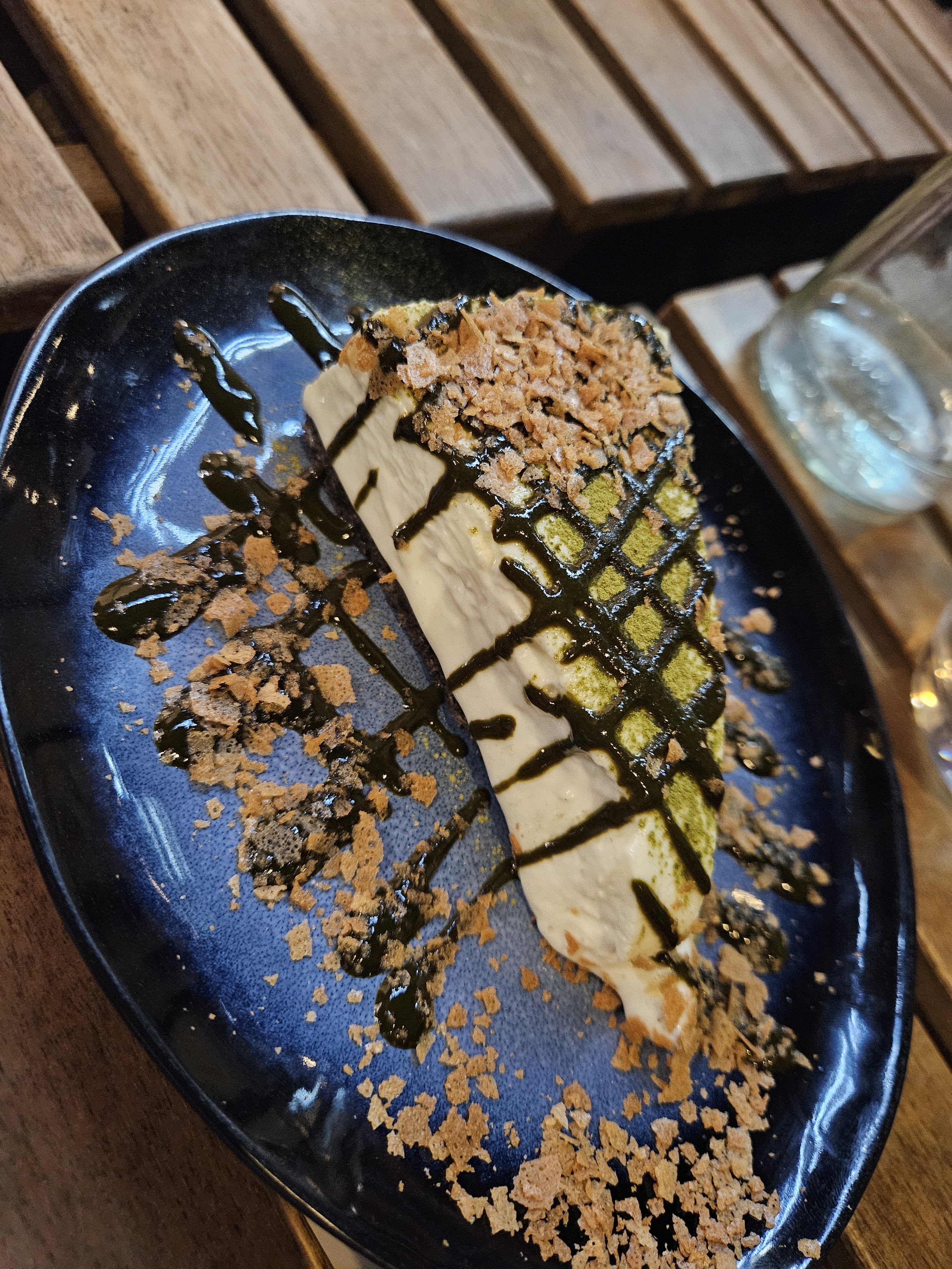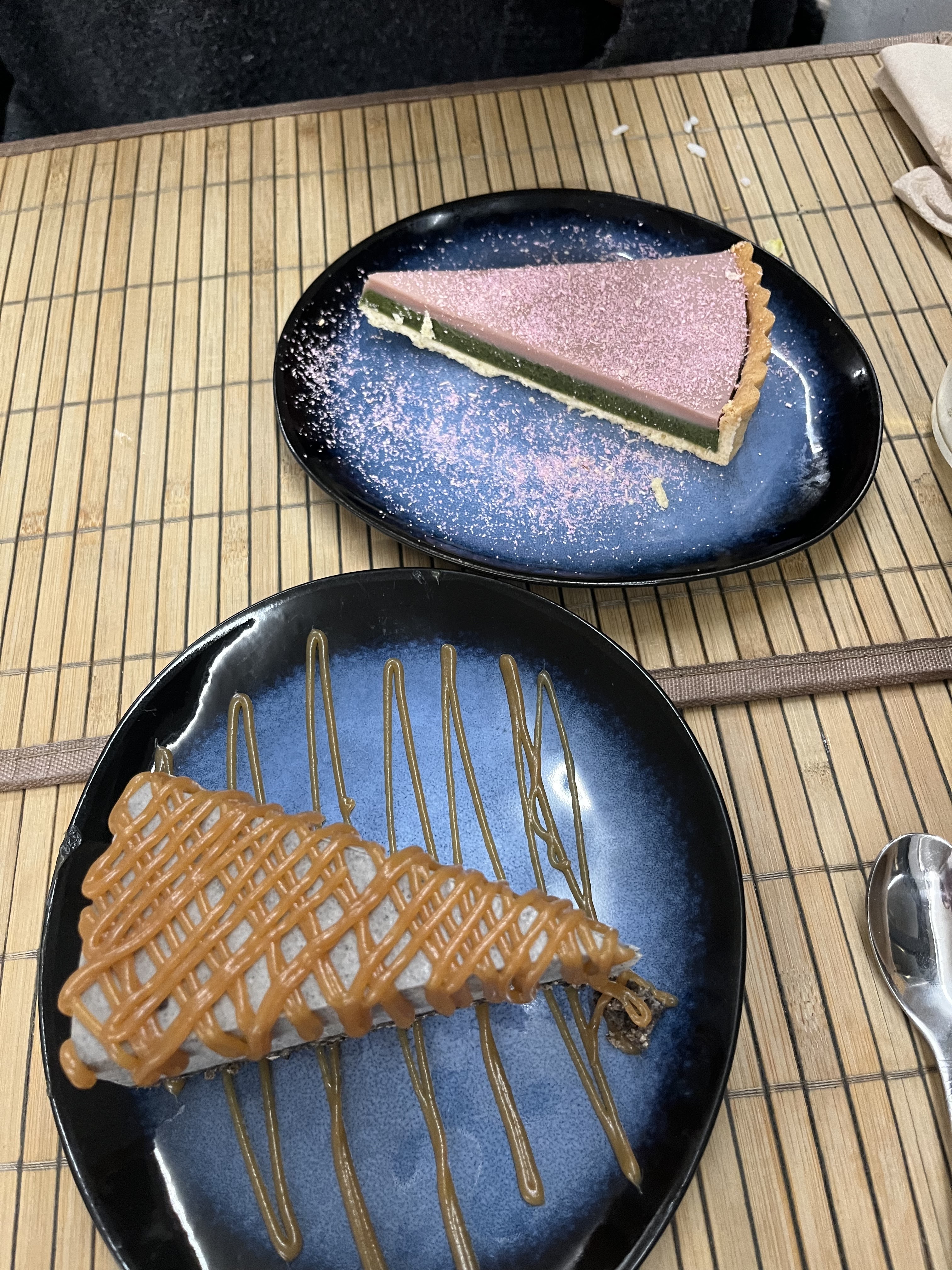 Assise contre la porte, des courants d’air pendant tout le repas avec l’entrée et sortie de gens, surtout de livreurs. Repas très bon, et les desserts atypiques hyper délicieux et beaux! A goûter la tarte au chocolat et macha et le chesse cake de sésame noir au coulis de beurre salé!