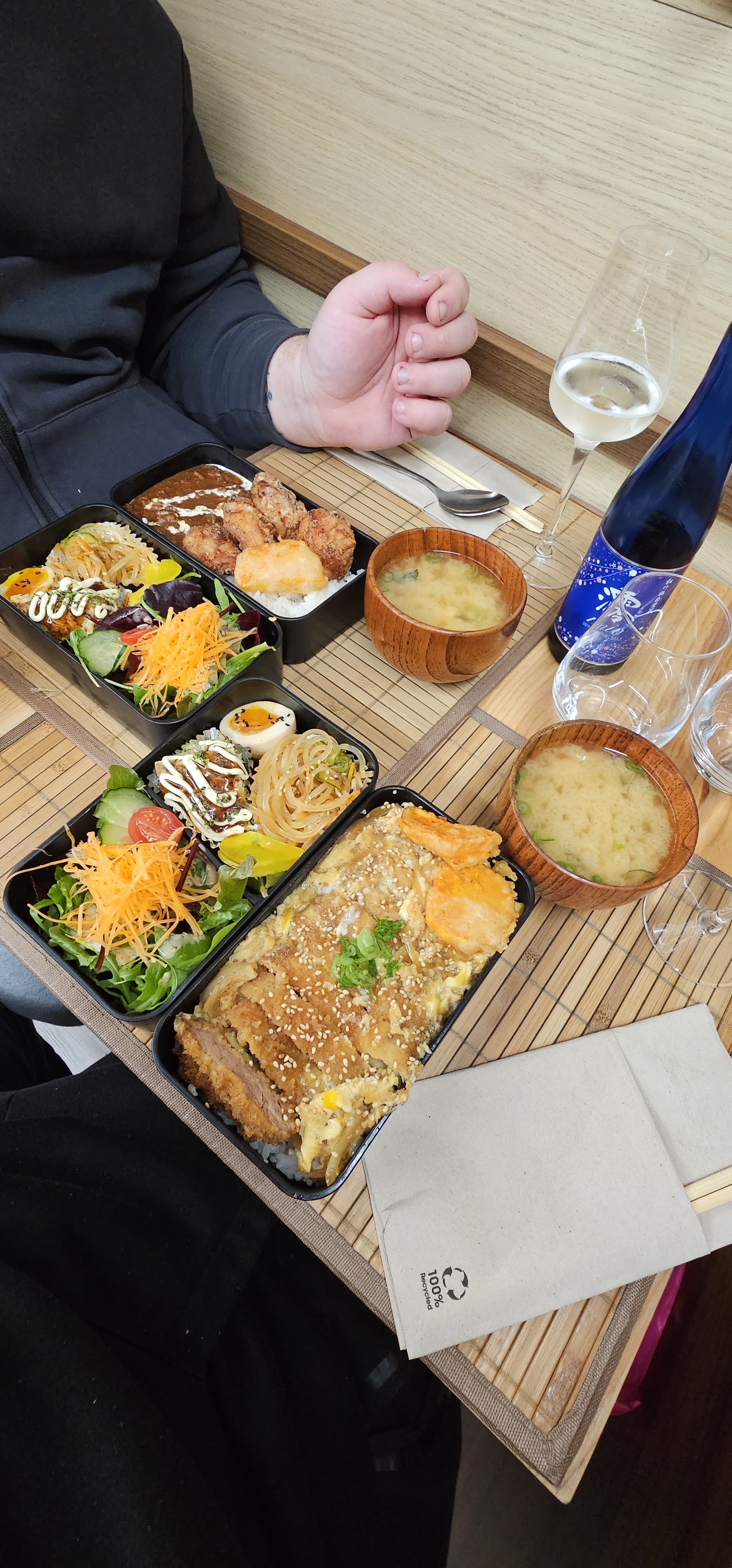 Repas très très bons, nous avons prit à emporter après recommandation. Un peu déçu car nous avions commandé une boisson qui a été oublié et le sac dans lequel certains plats se trouvaient ainsi que la bouteille de saké à cassé dans le centre commercial à côté. Heureusement les plats sont restés fermés mais la bouteille a cassé nous avons donc du retourner en acheter une. Le monsieur nous a cette fois mis un sac exprès pour la bouteille qu’il aurait pu nous mettre dès le départ vu tout ce qu’on avait commandé… Tristement nous avons à peine eu de réduction pour la bouteille malgré tout ce qu’on avait commandé. Nourriture de bonne qualité.