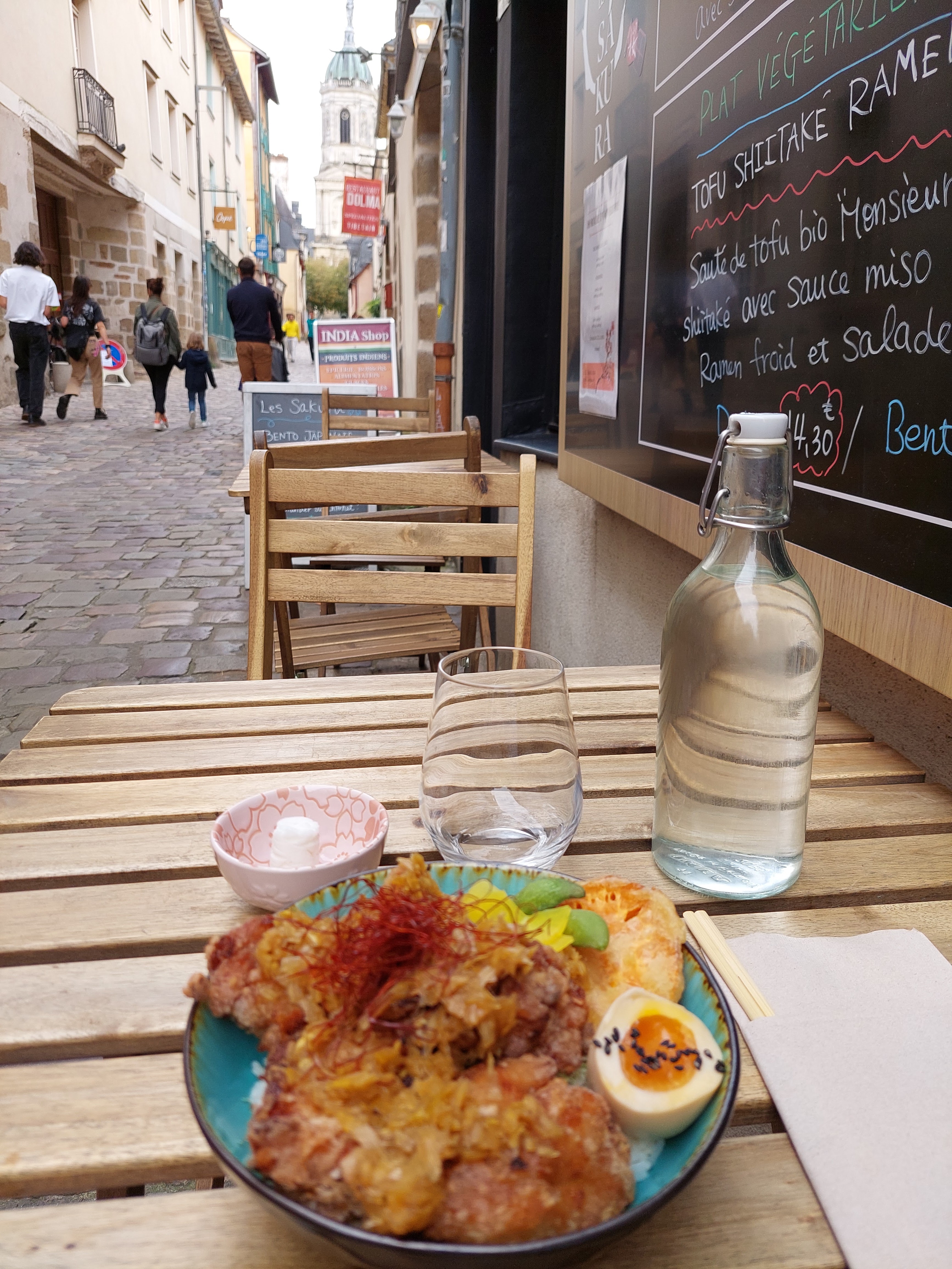 Une cuisine de qualité qui nous fait découvrir les recettes japonaises et des ingrédients jusqu'ici inconnus. La solution Bento est bien appréciée et les desserts originaux (tarte chocolat au thé par exemple). J'ai eu l'occasion d'y manger en extérieur l'été, très agréable puisque placé en plein centre historique de Rennes. Dernièrement j'y ai mangé en intérieur. La salle est très atypique car vraiment exiguë, mais l'ambiance est purement asiatique avec un accueil japonais immersif. Je recommande fortement si on souhaite découvrir des plats qui changent et dans un cadre qui dépayse.