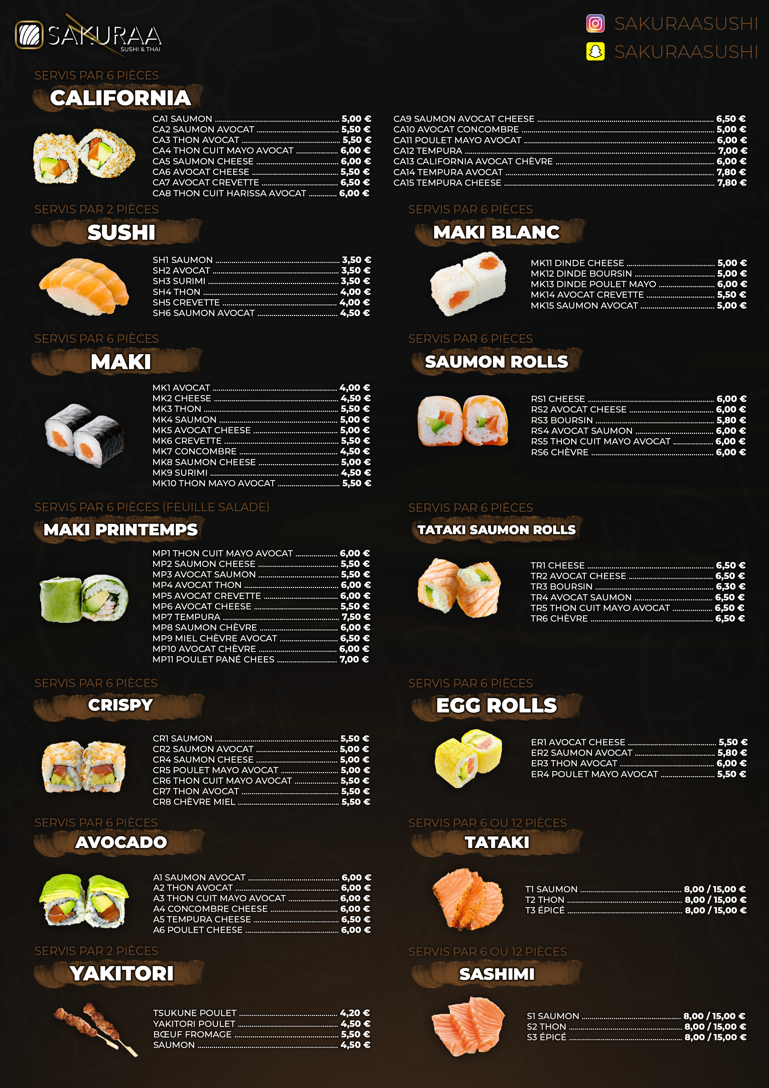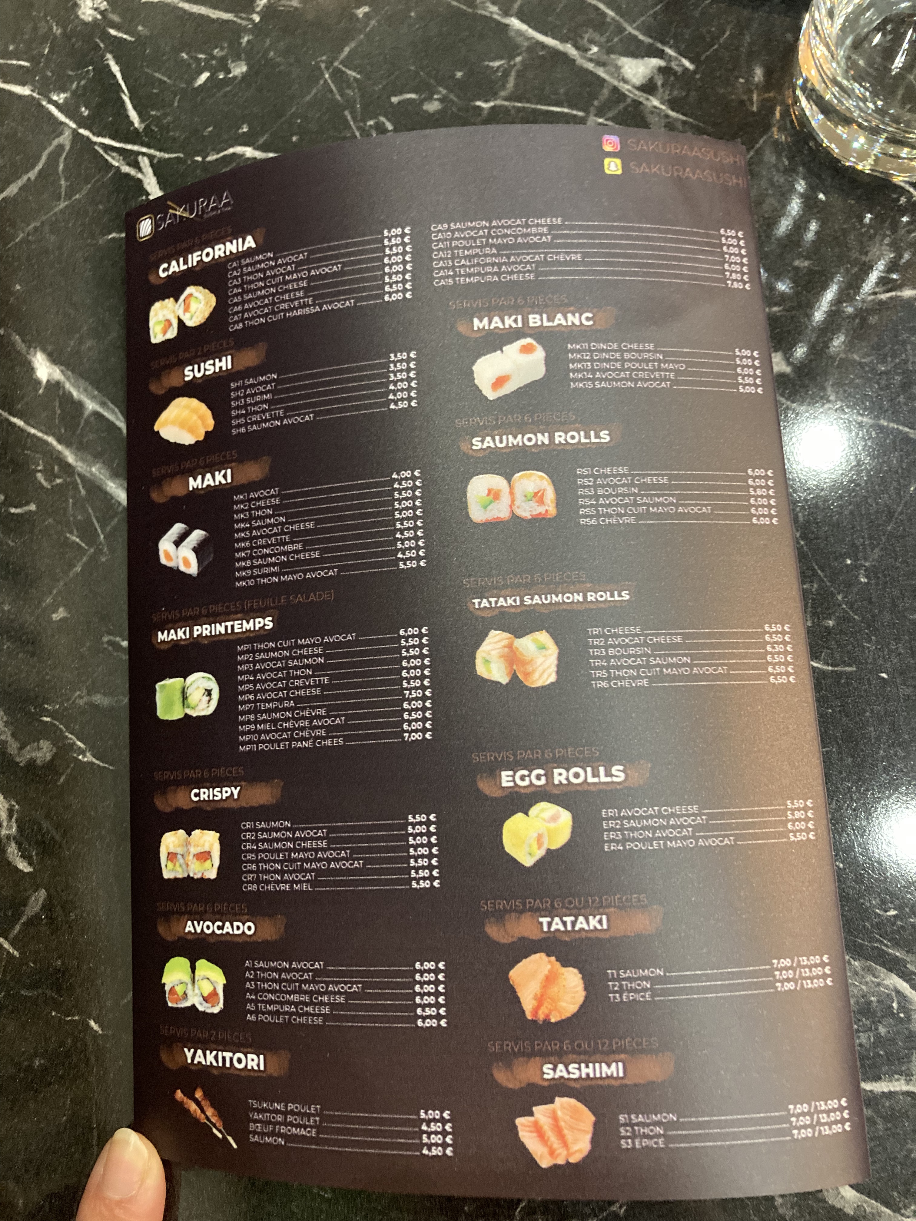 excellent repas chez sakuraa sushi. un accueil chaleureux comme à la maison un Personnel et service parfait. Les portions sont généreuses et justifie le prix mini pour un étudiant comme moi, des sushis frais est excellent 😉 j’ai pratiquement fais le tour de la carte , je vous recommande ce restaurant a 200% . Merci pour ce bon moment je viendrais avec plaisir