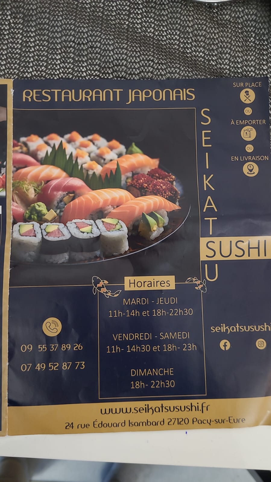 Enfin un bon restaurant de sushis à Pacy. Habituée à prendre à emporter avec un accueil sympathique, j'ai testé la livraison hier soir et très contente; nos convives ont aimé et été ravis. Merci