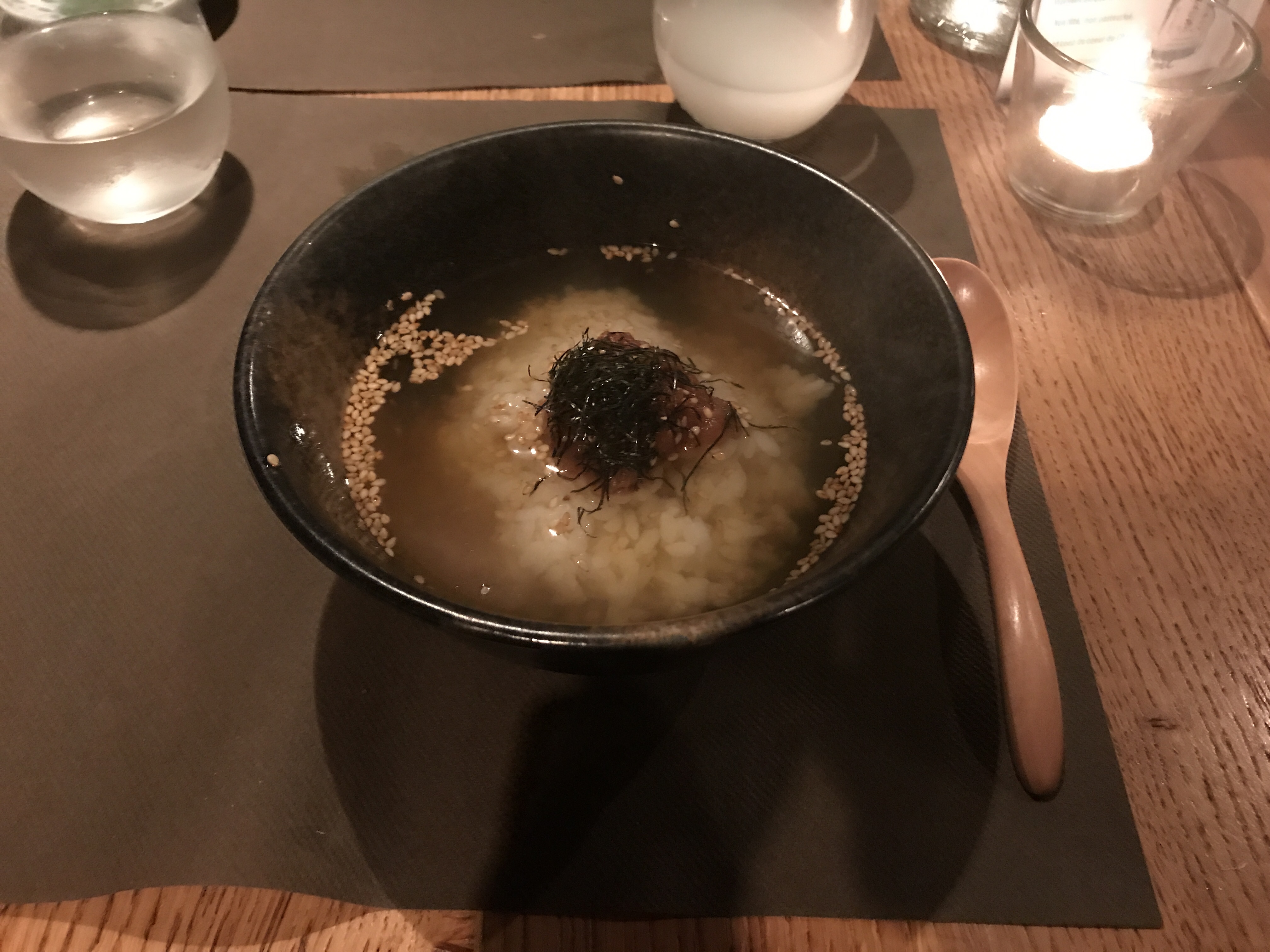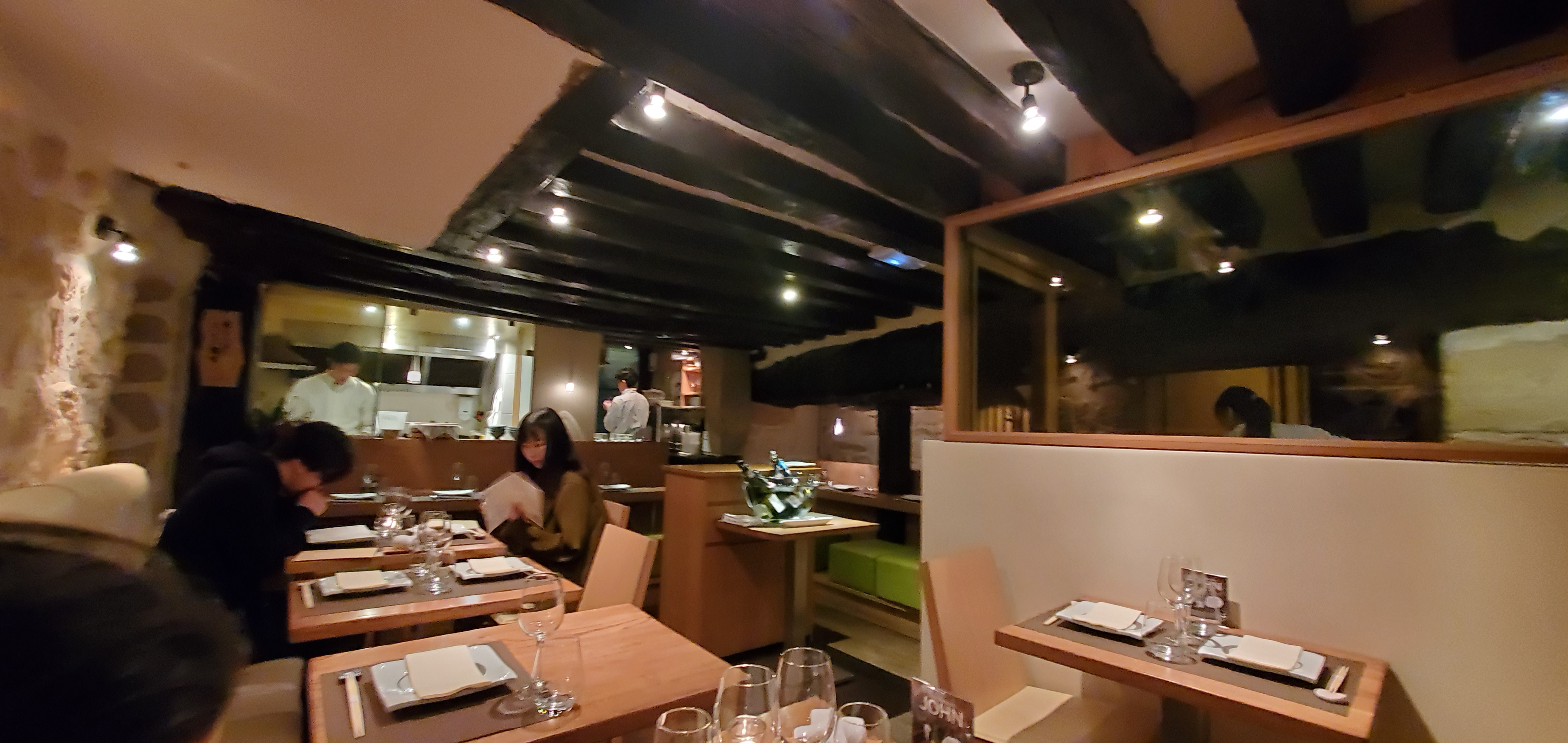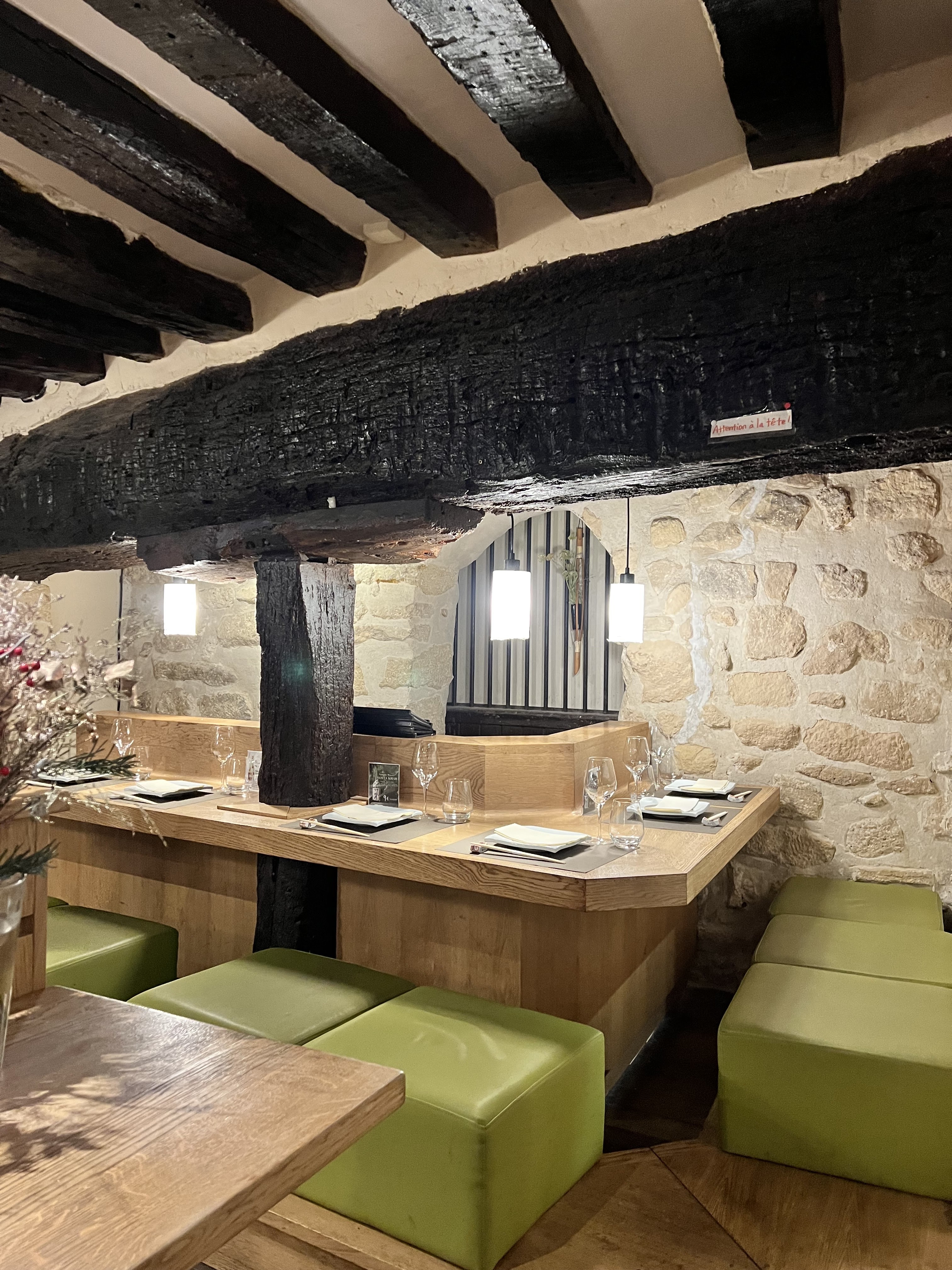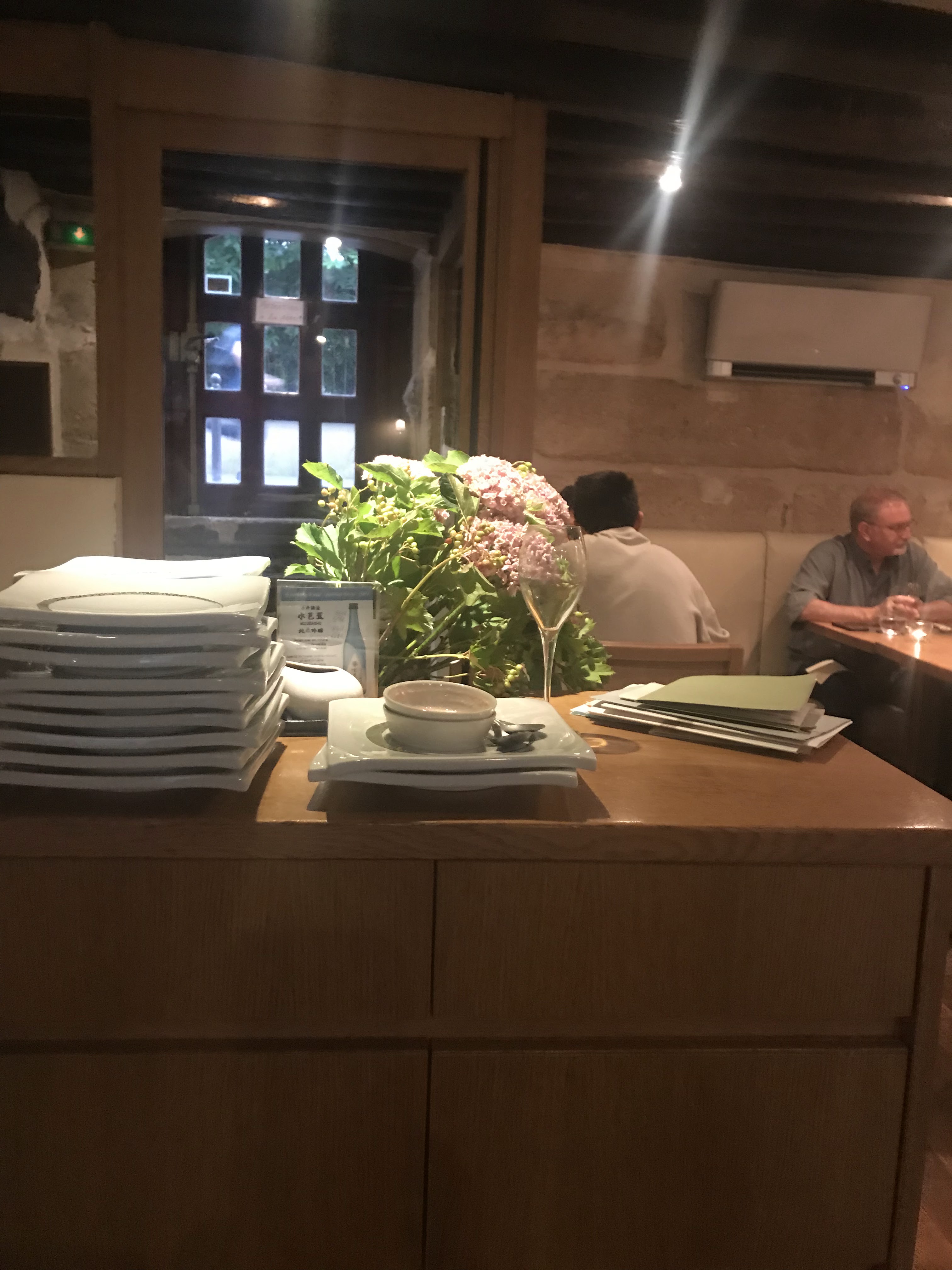 Un lieu surprenant et atypique, caché dans une ruelle. Le style mobilier japonais s'allie aux vielles poutres et pierres du bâtiment parisien. Les plats sont délicats et fins, en petites portions mais nombreuses et s'enchaînent avec justesse.