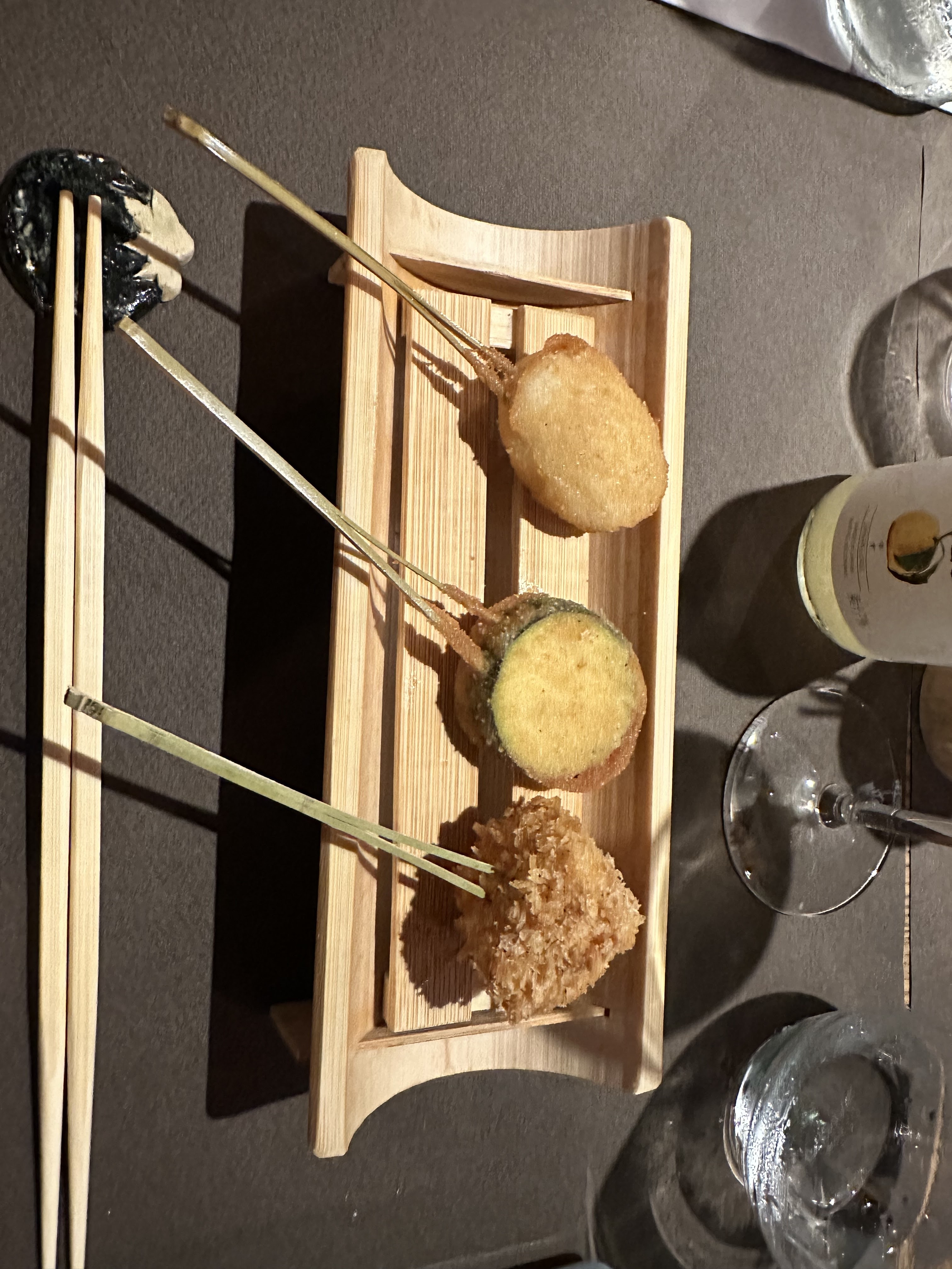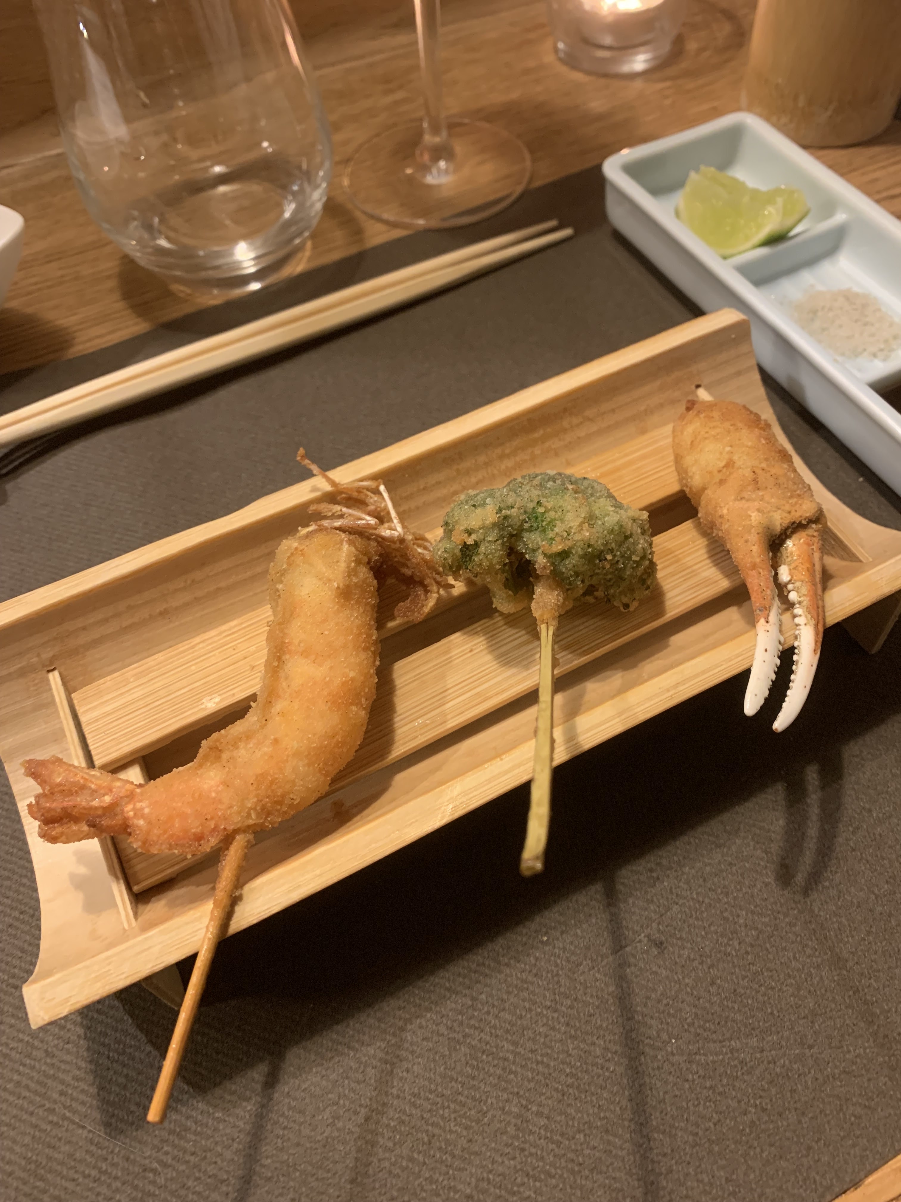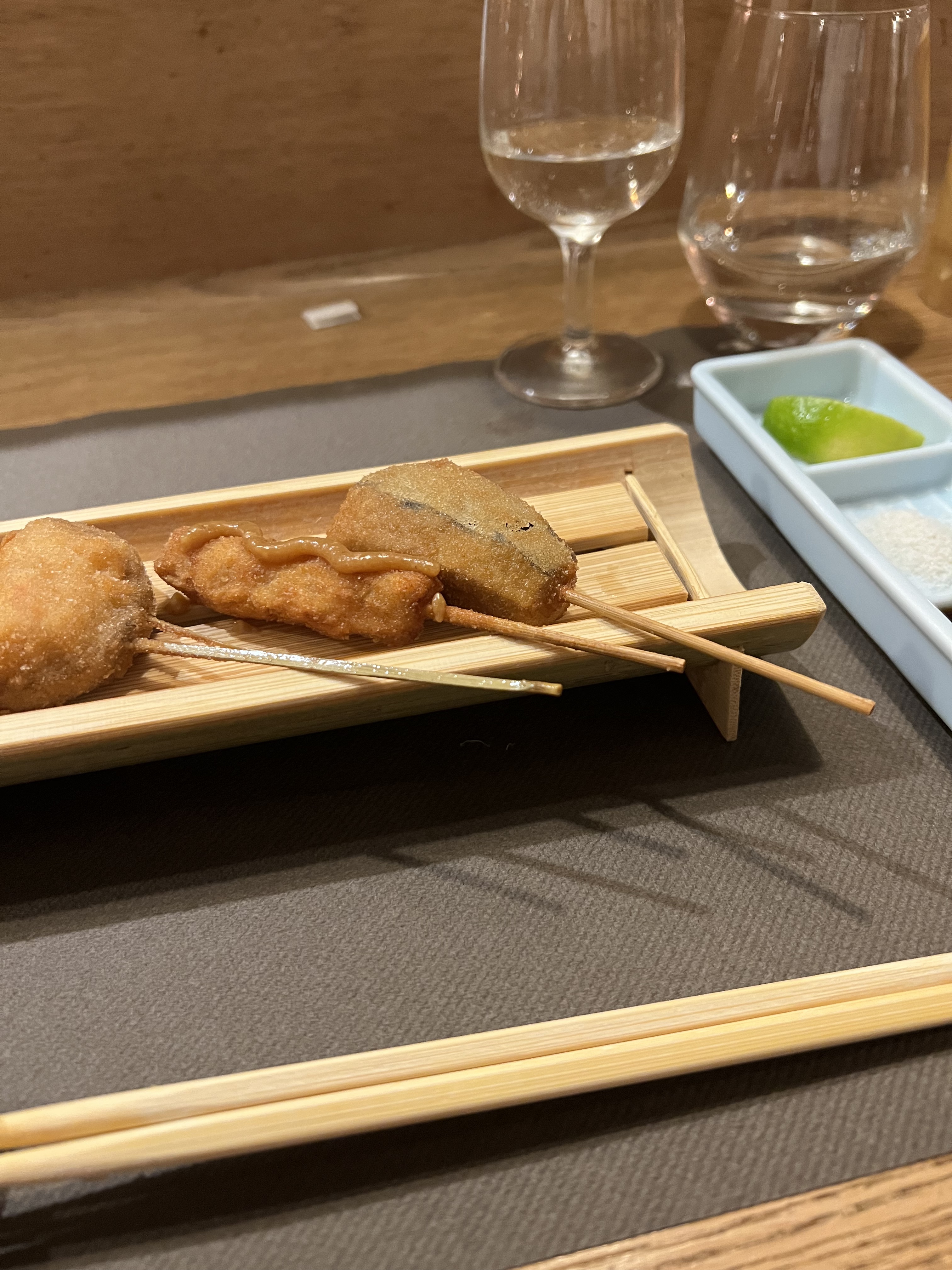 Posté le 20/08/2021 à 19:19"Découverte des délicieux Kushiage, dîner rythmé par le nombre de bouchées à déguster. Ce n'est pas très copieux, gros mangeur s'abstenir !"