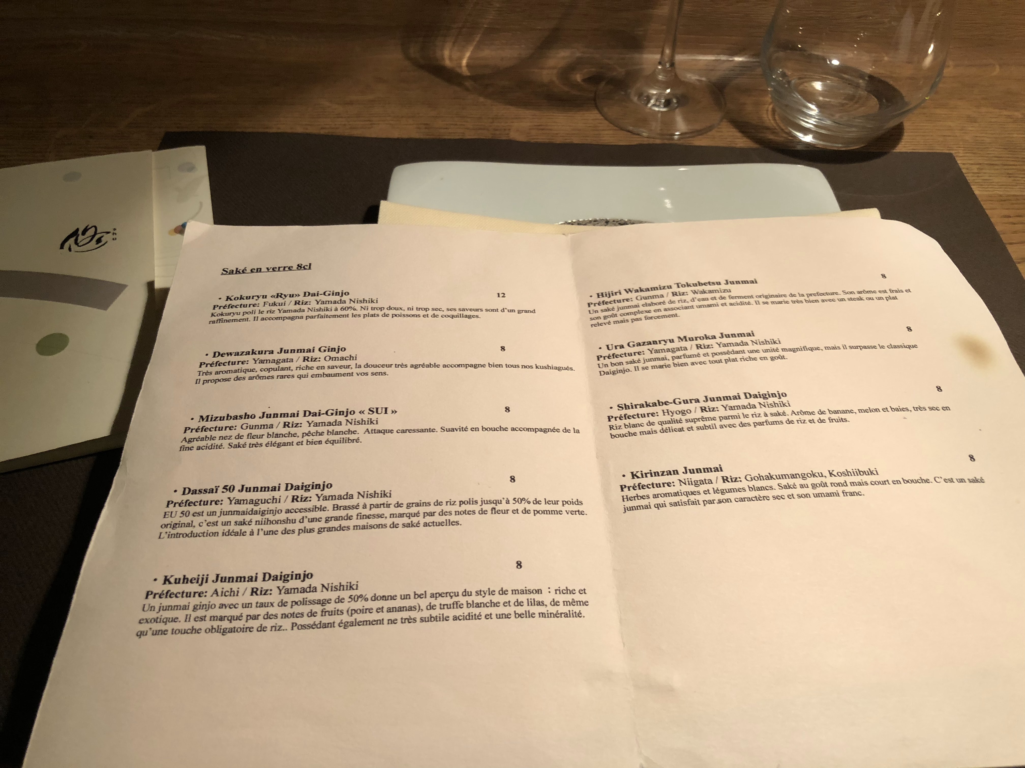 Nous avons passé un très agréable moment au Shu. L’endroit est très feutré, intimiste. Vous y retrouverez la vraie culture japonaise, dans les mets, le service mais aussi l’ambiance. Sans nul doute que vous trouverez l’excellence dans votre assiette par les différents plats que le Chef propose (Menu à 7 plats) mais aussi dans votre verre (large gamme de Saké). Je recommande vivement.