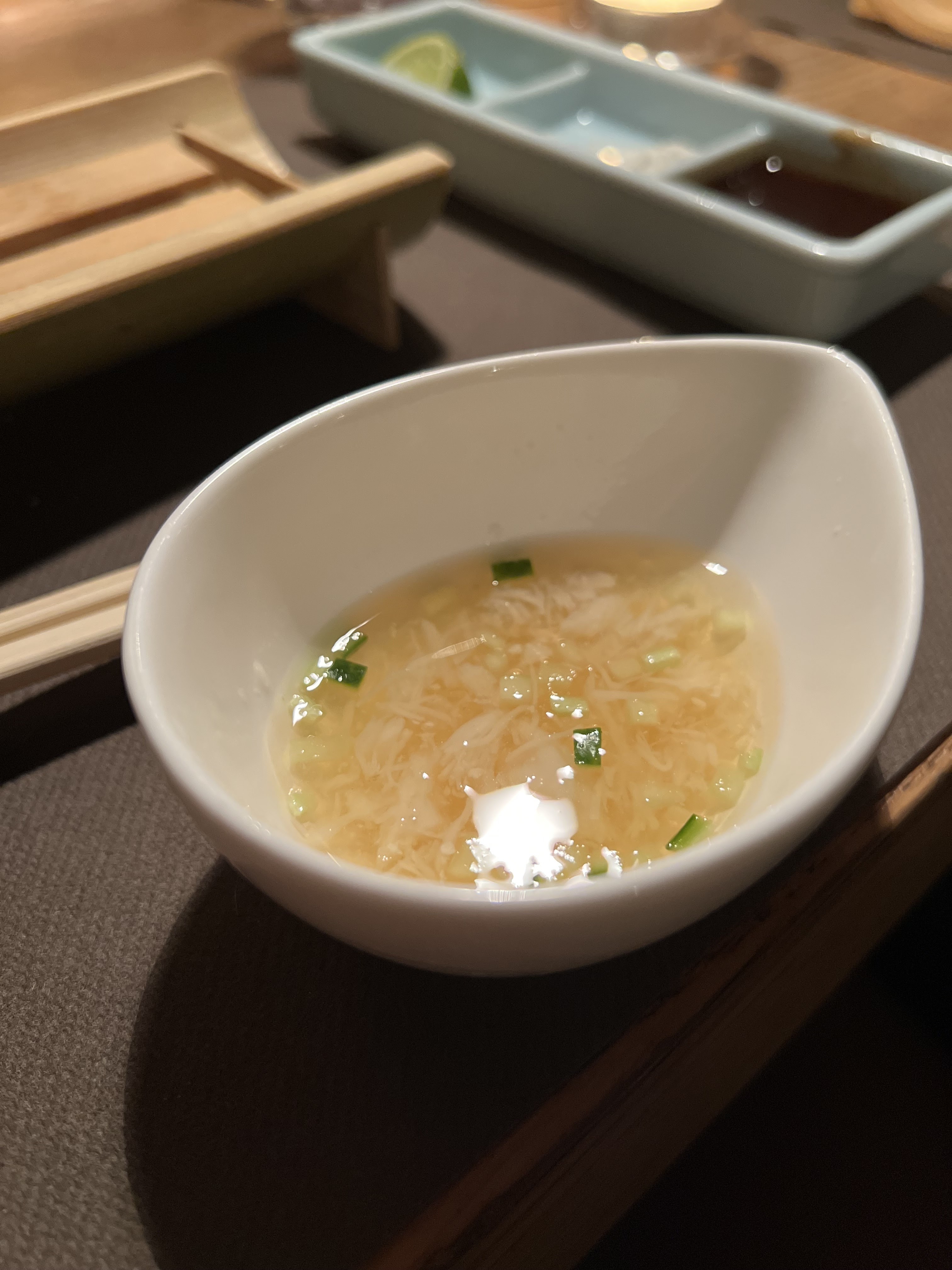 Une expérience unique dès l'entrée au restaurant. Le service est impeccable du début jusqu'à la fin. Le saké était excellent. Des plats simples mais goûteux. Par contre la quantité n'était vraiment pas suffisante pour un homme. A essayer pour une occasion particulière.