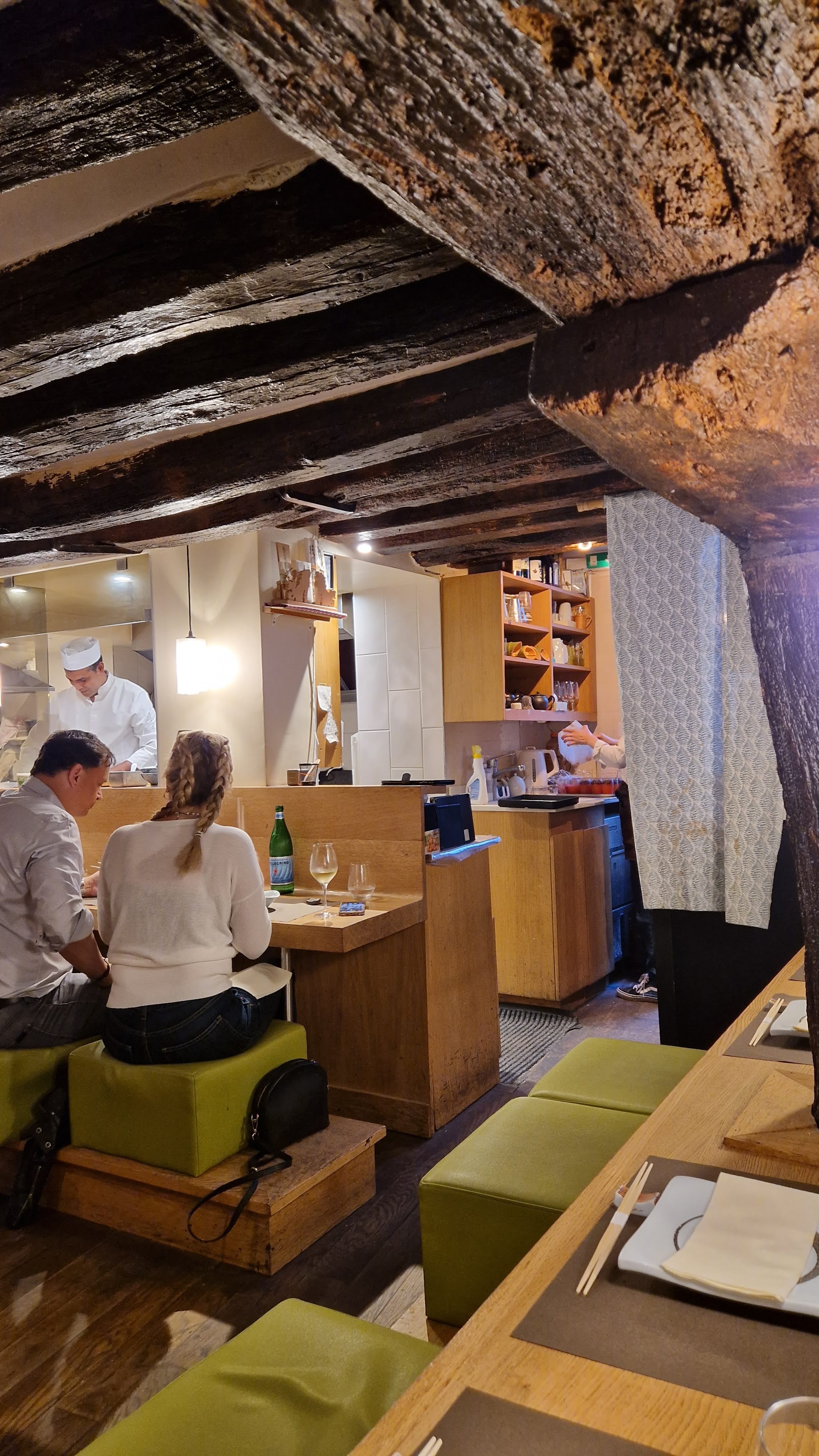 Posté le 20/03/2024 à 23:29"Très bel endroit dans une ancienne cave du 17eme siècle. Le service est aux petits soins, rapide, discret et efficace; avec un personnel accueillant et souriant. Les mets sont aussi délicieux les uns que les autres. Deux petits bémols pour notre part : un peu trop de fritures à notre goût et pas de possibilité d’accord mets et vins/saké. Ambiance feutrée."