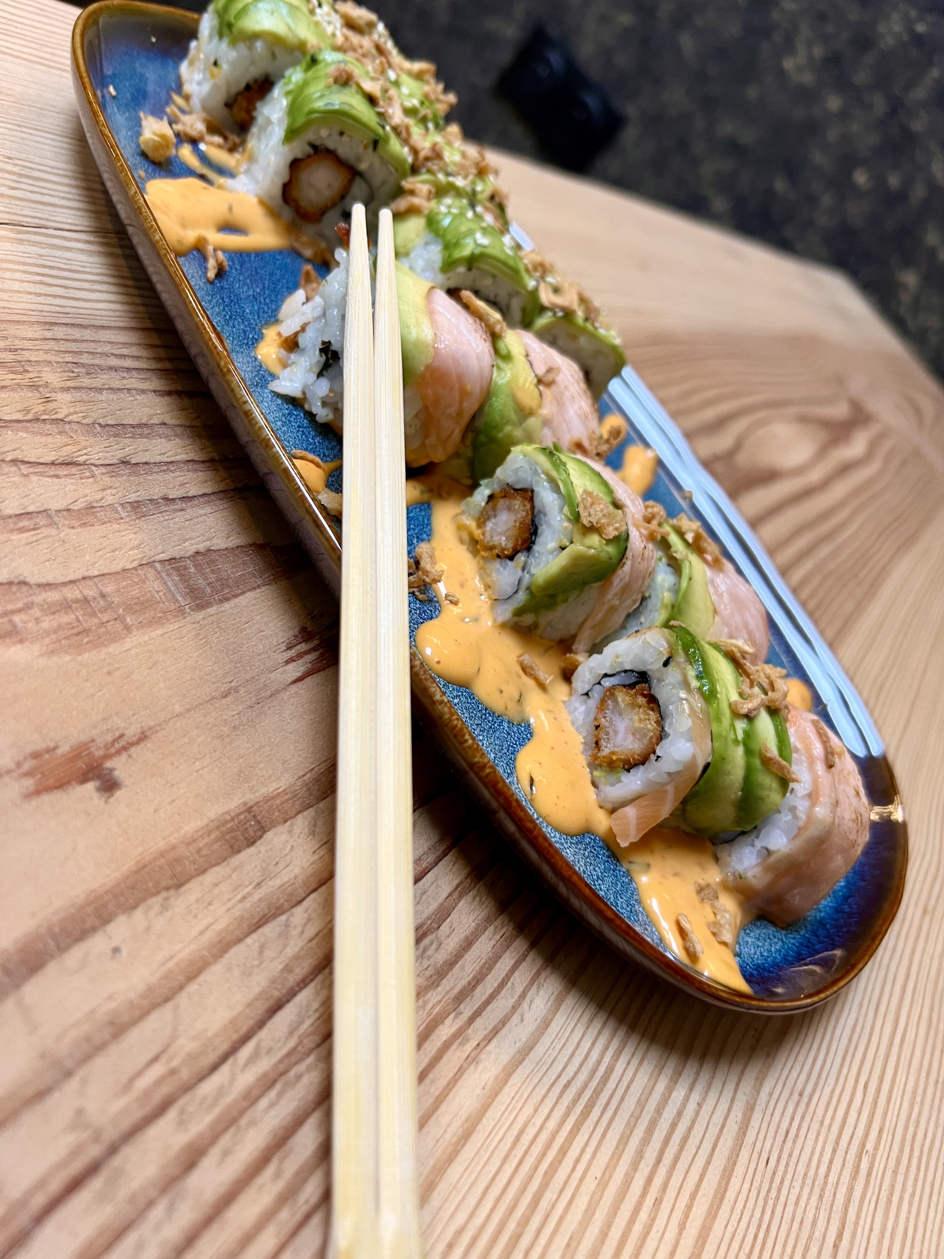 Posté le 06/04/2023 à 21:56"Très bonne expérience, le personnel est accueillant, les sushis sont bons, le plaisir est dans les recettes spéciales, c'est ça qu'on vient chercher. Dommage que la décoration (bien que très jolie) ne soit pas raccord avec le thème culinaire."