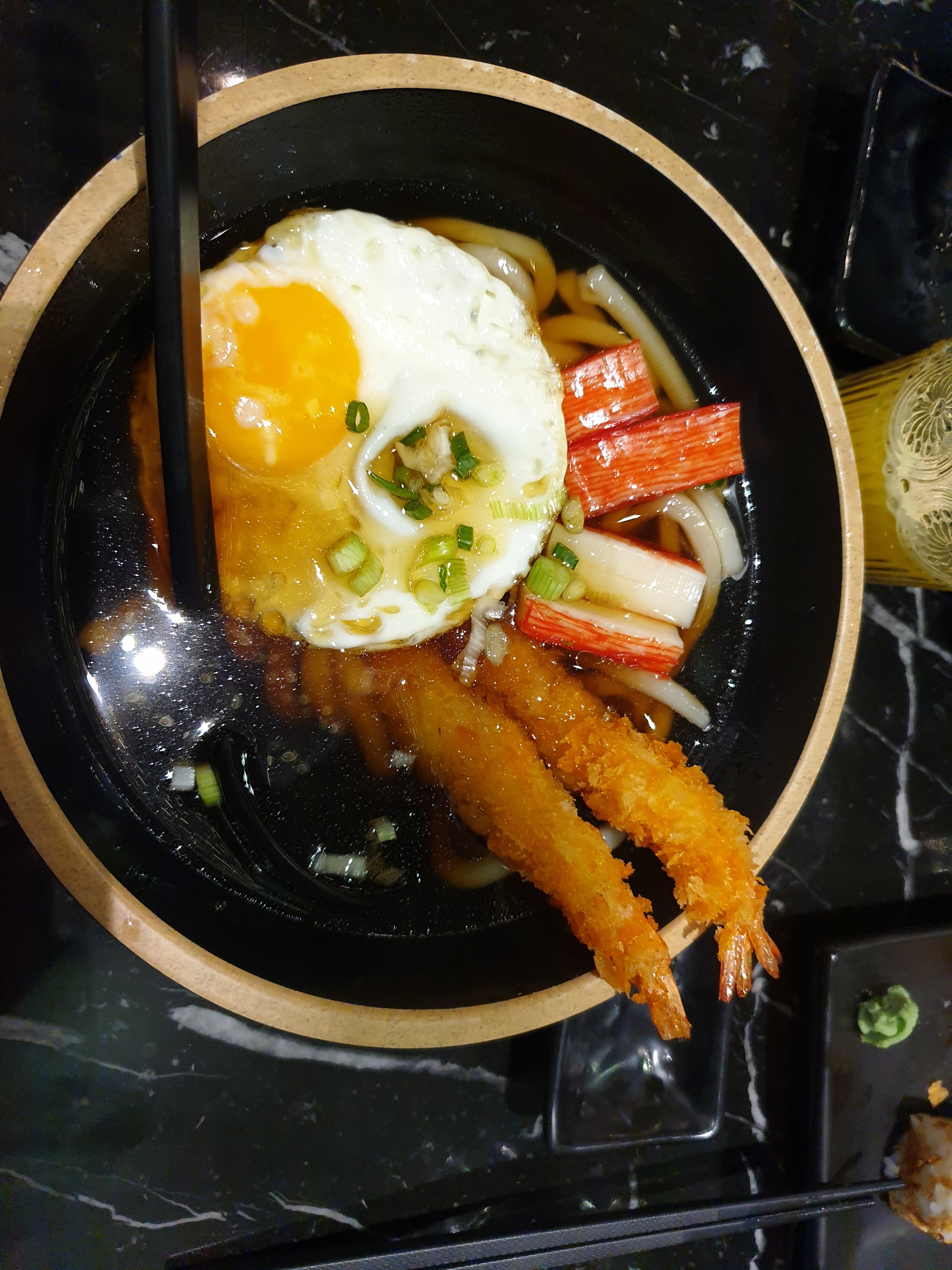 Alors en ce qui concerne l’accueil nous avons une serveuse très fort désagréable. Ne vous laisse pas le temps et est empressée de prendre la commande. Pour ce qui est des plats rien de surprenant, nous n’avons pas voyagé la soupe était assez fade et les crevettes tempura dans le bouillon les rend mous et immangeables.