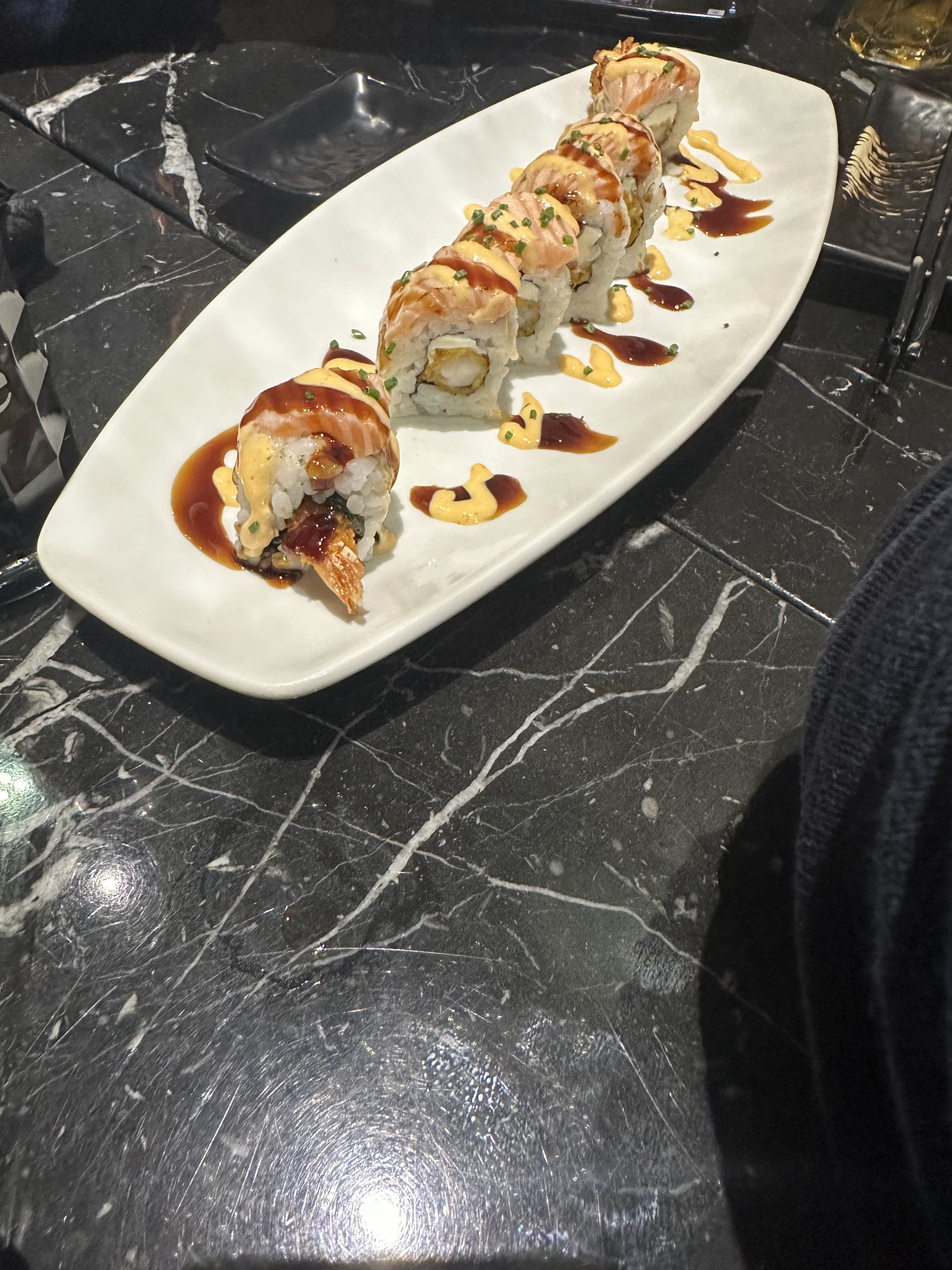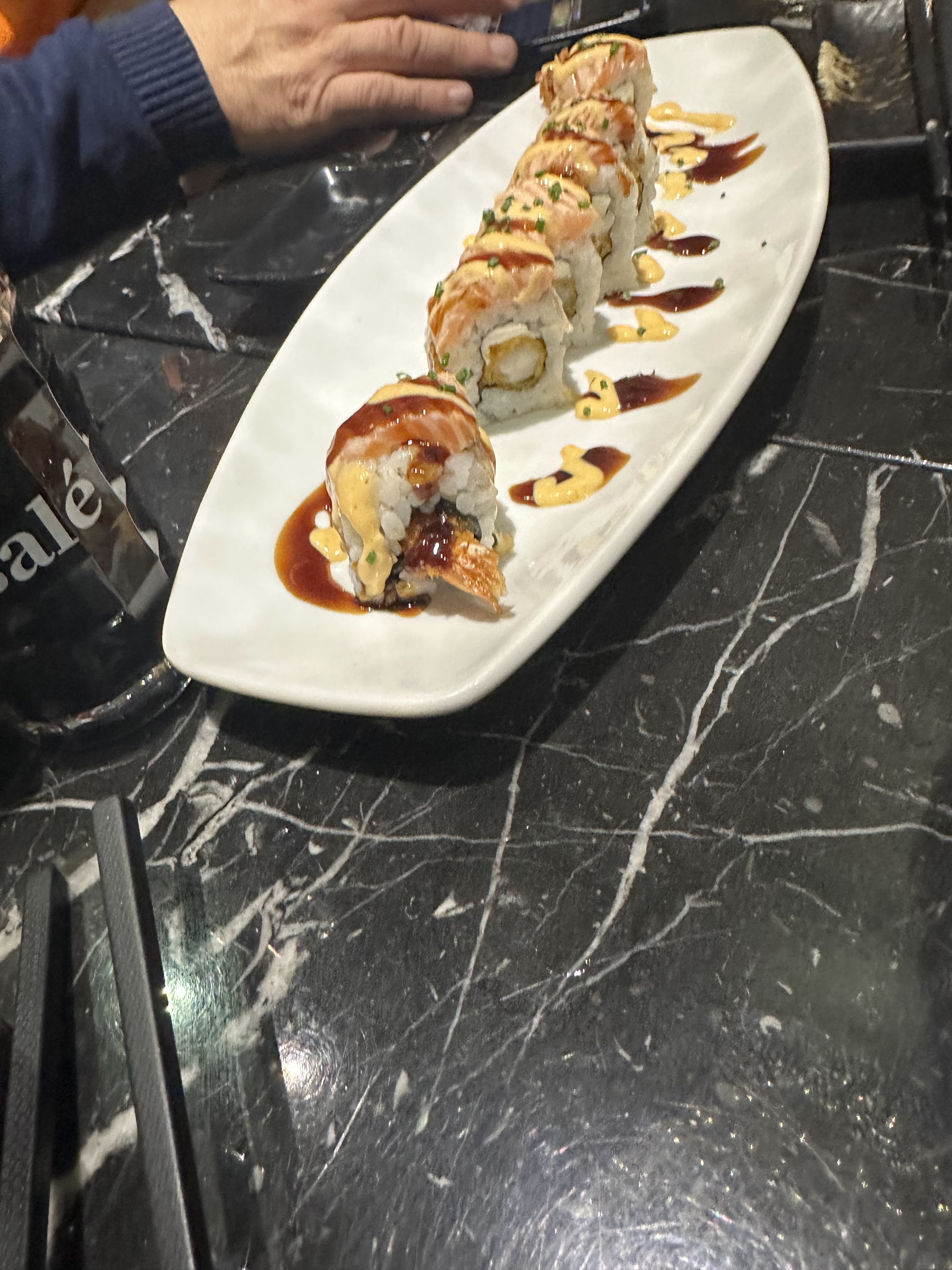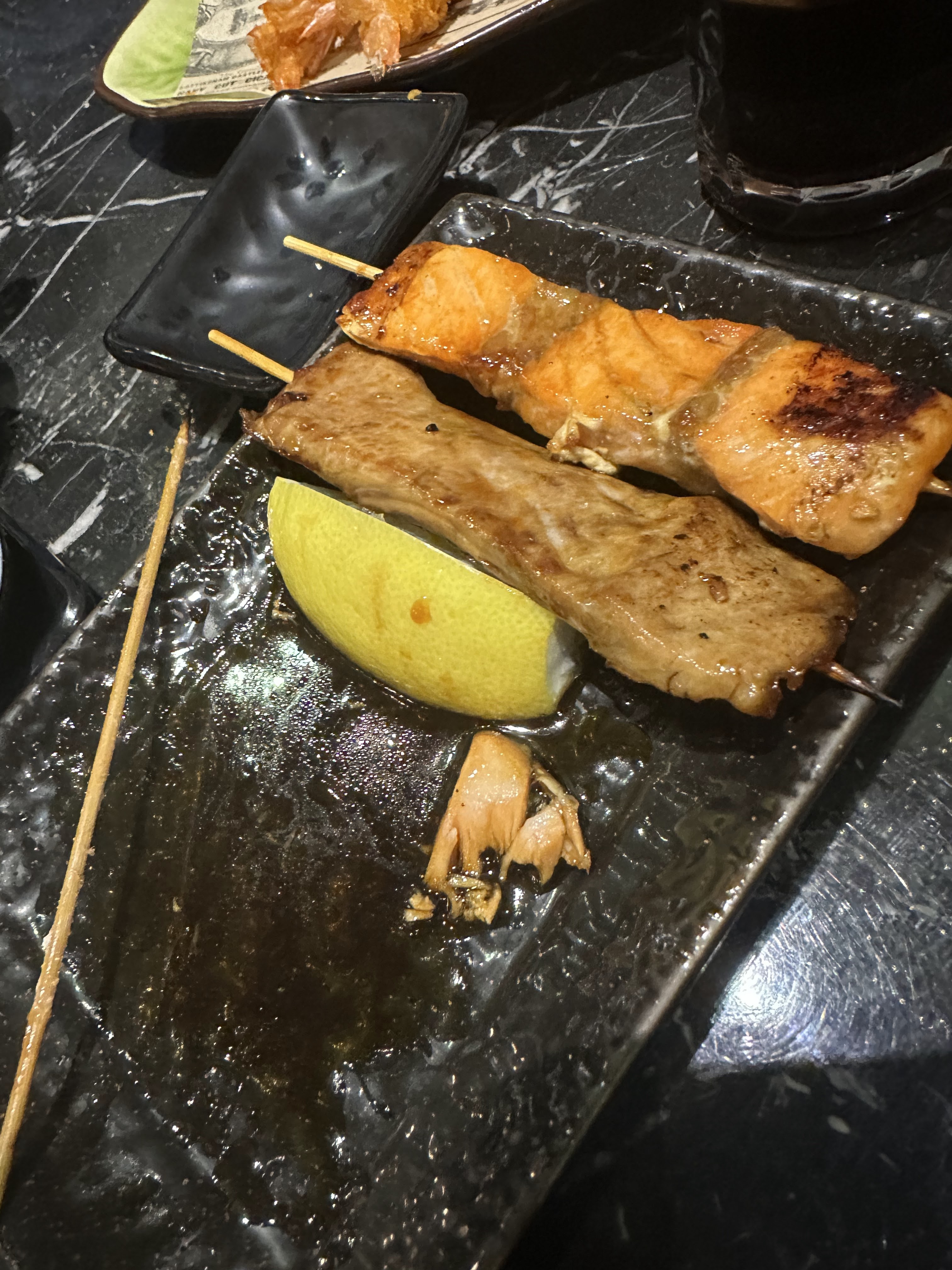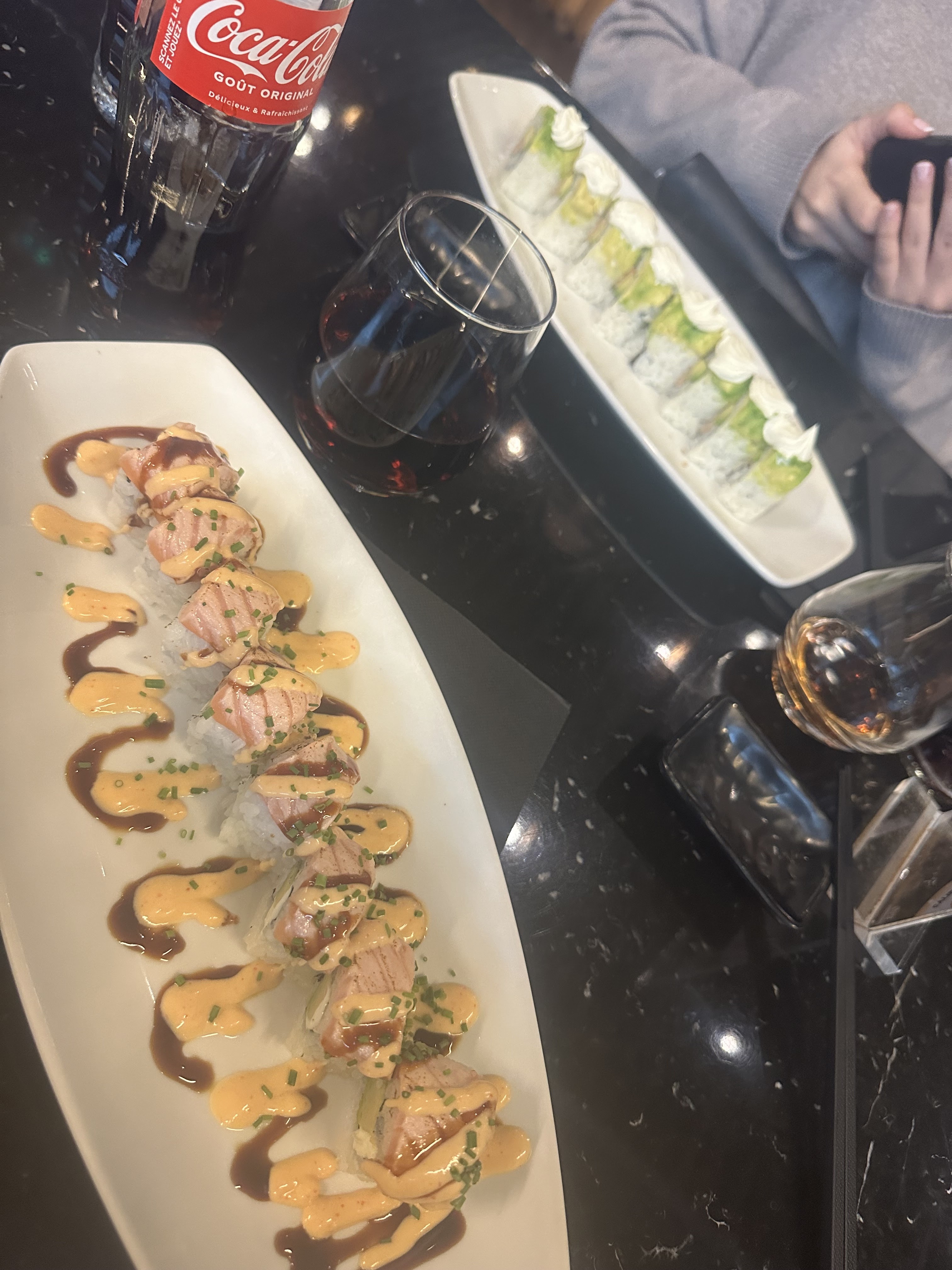 Déçu. Nous sommes déjà venu plusieurs fois et nous ne reviendrons pas. Les tempuras étaient pâteux. Les californias tempura nous ont étaient servis avec de l’avocat alors que ce n’était pas préciser sur la carte. Et nous attendons encore nos brochettes………