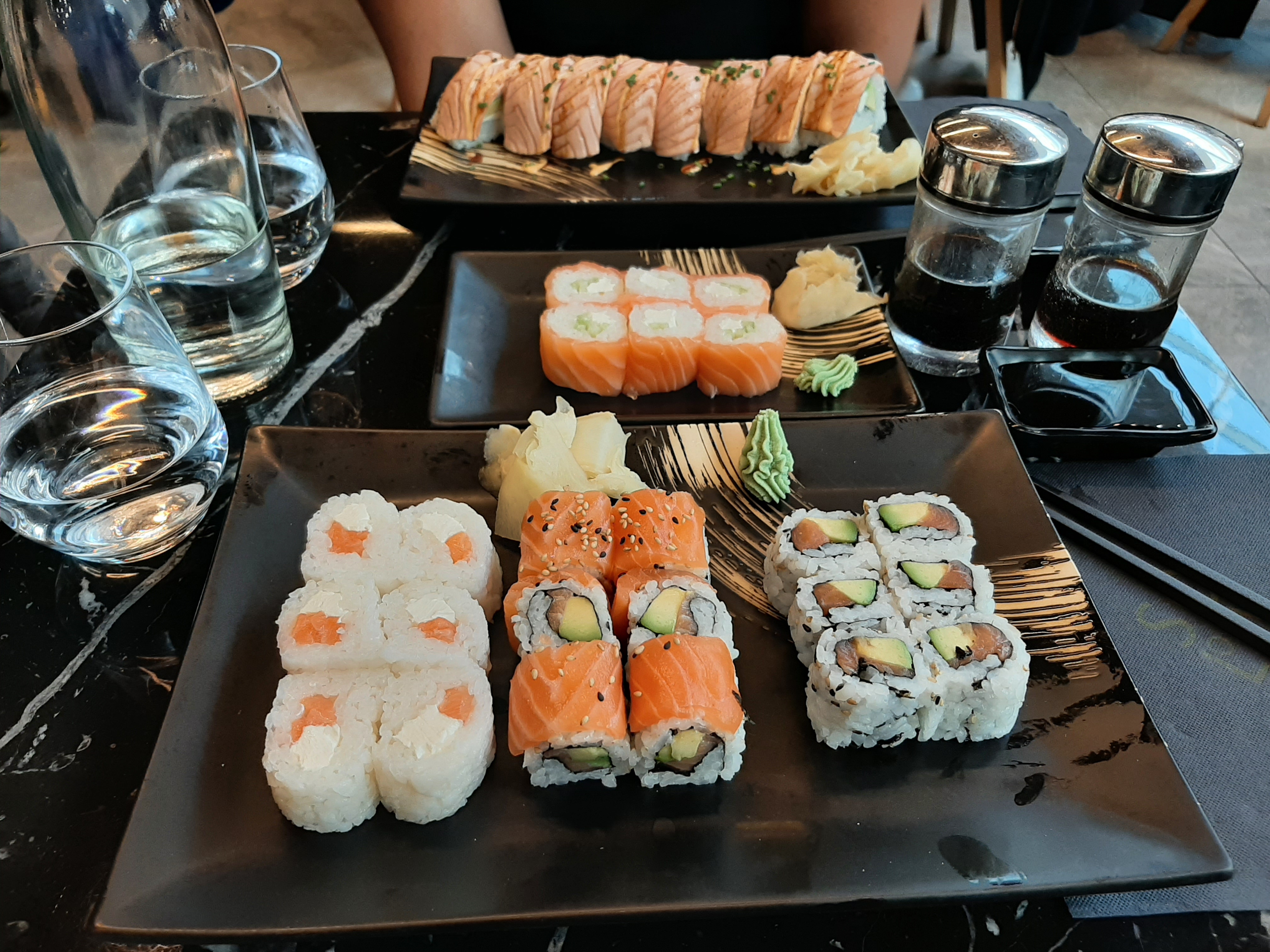 Serveuse désagréable, de plus le service était déplorable un cheveu sur les makis, soupe fade trop salée même mon café je l ai pris ailleurs des insectes partout à éviter.