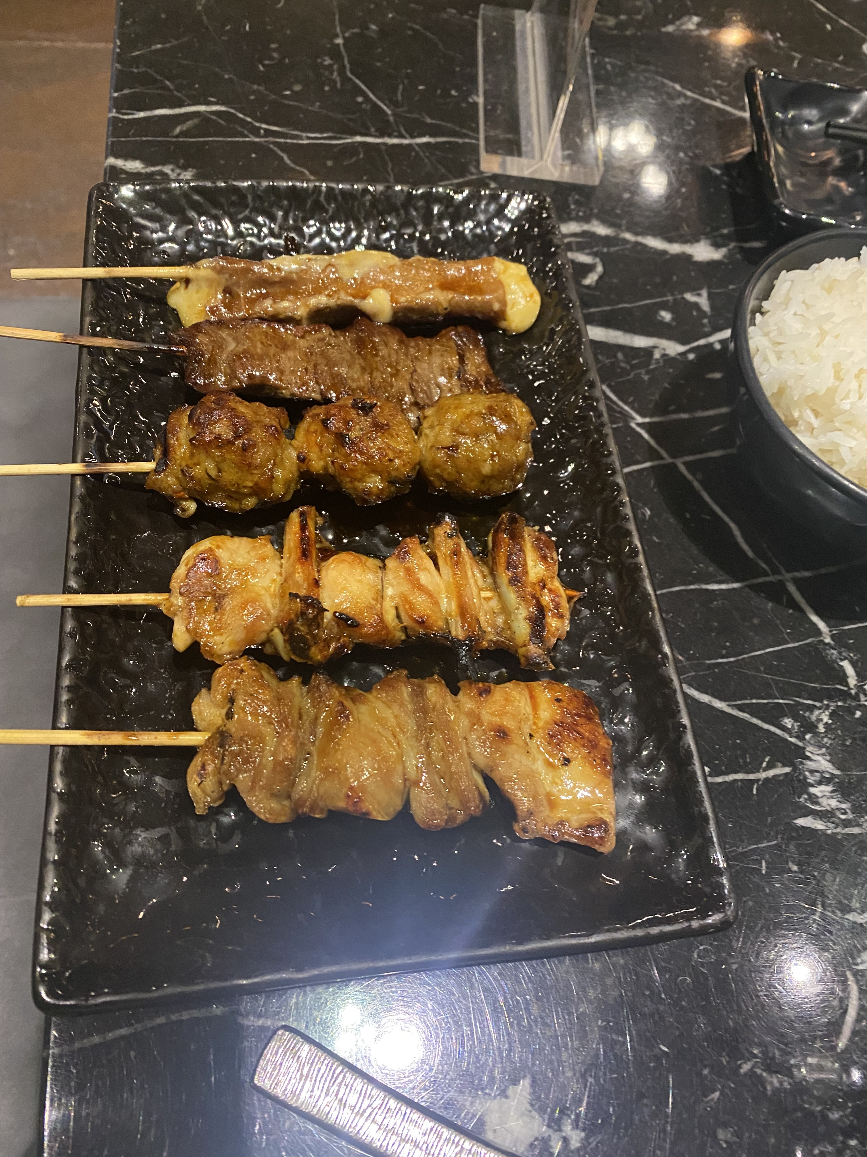 Les brochettes de crustacés et poissons n'avaient pas de goûts malheureusement. La quantité du riz dans le menu est ridicule (pour un bébé sûrement) Les california rolls étaient bons. Le rapport qualité/ prix n'est donc pas justifié. Toutefois le service a été rapide.