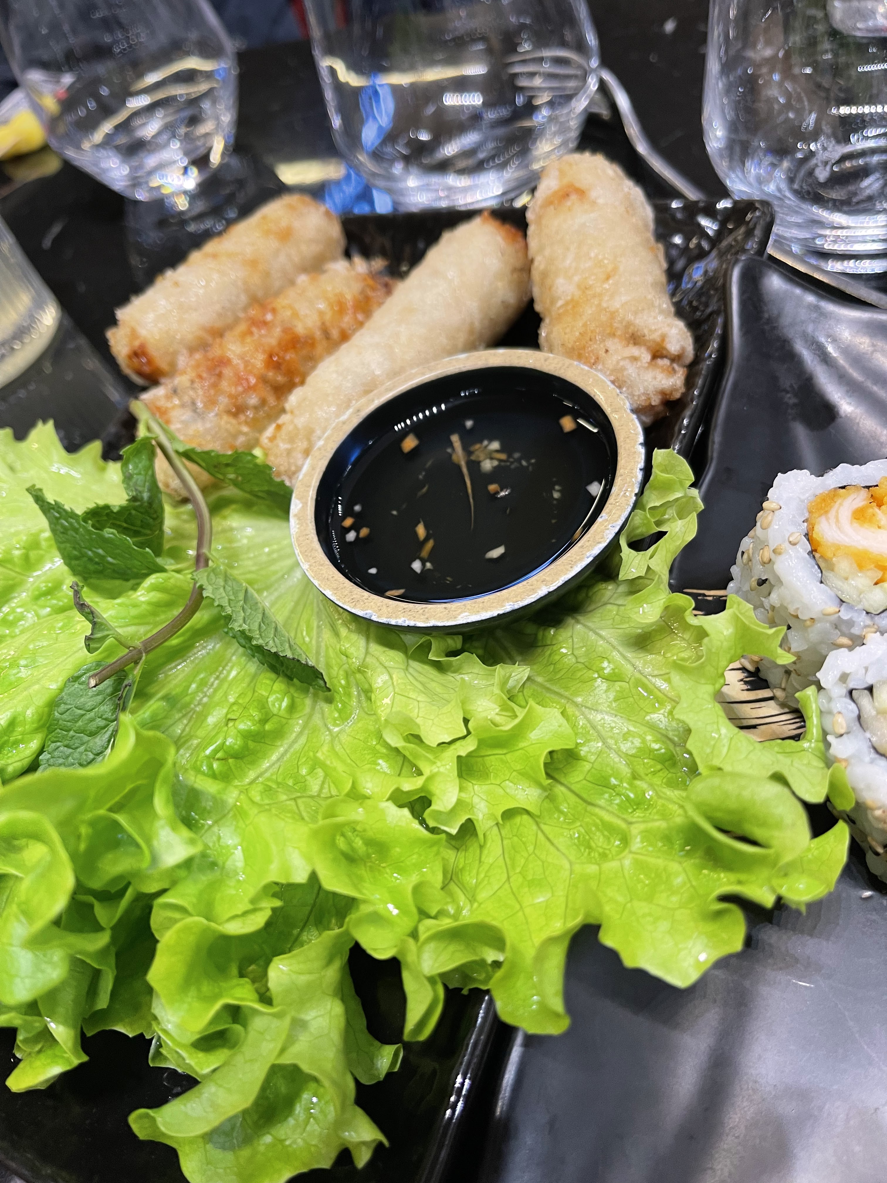 Les california sont succulents mais le service n’est pas à la hauteur des plats. En effet, il faut parfois presque supplier les serveurs pour passer commande (les 2/3 dernières fois où je suis venu ça a été le cas). Pour ce qui est du plat, dans mon assiette et l’assiette de mon accompagnatrice nous n’avons eu que les bouts (donc l’intérieur était plus rempli de riz que de garniture). .