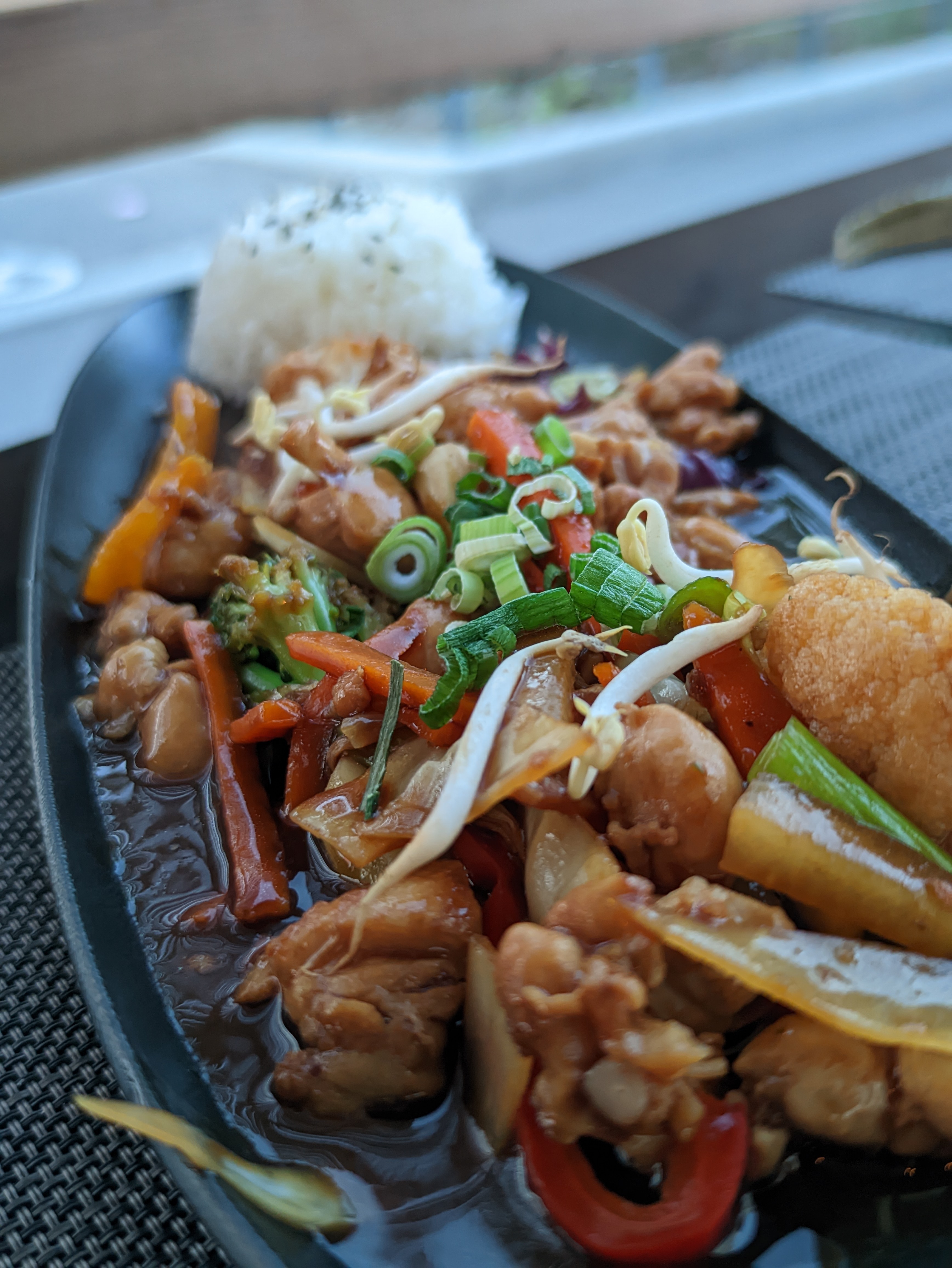 Nous prenons régulièrement des plats à emporter et hier nous avons mangé sur place. Les plats sont bons, on valide !