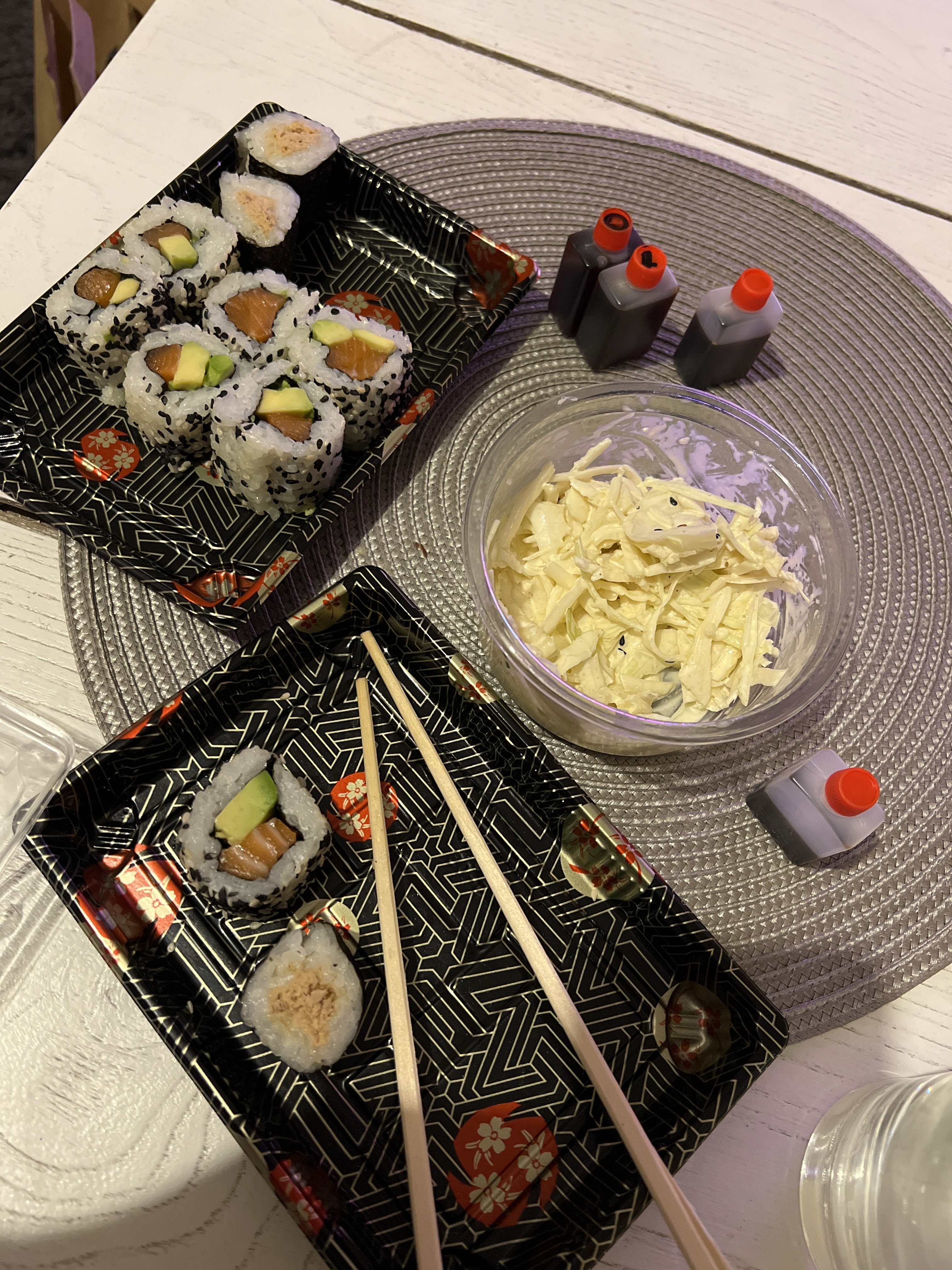 Alors honnêtement je suis étonnée de la note élevée de l’enseigne. Je m’explique : Je reçois ma commande je tombe sur un maki avec du riz pas cuit donc croquant ??? Bon ça va c’était pas tous les californias et makis mais quand même j’ai jamais vu ça de ma vie. De plus, c’est super poivré/relevé ça en est même très désagréable. Enfin la salade de chou est atroce je vous ne la recommande pas du tout c’est pas la sauce qu’on retrouve habituellement dans les japonais. Voilà voilà peut-être que je suis tombée sur un mauvais cuisinier et que cela ne représente pas effectivement l’établissement, gardons le bon soupçon. Petit point positif quand mm : généreux sur les quantités de saumon/avocat dans les californias !
