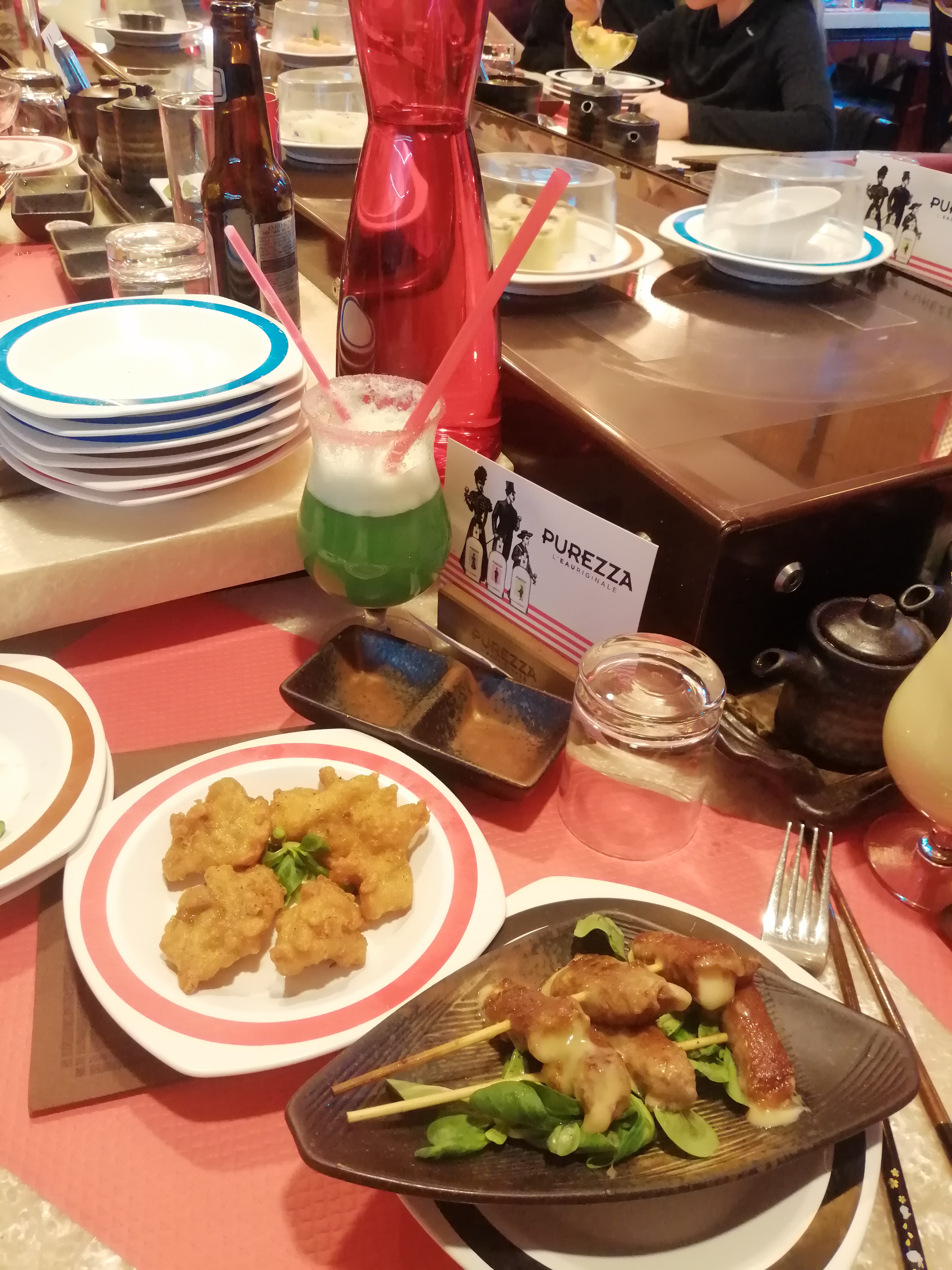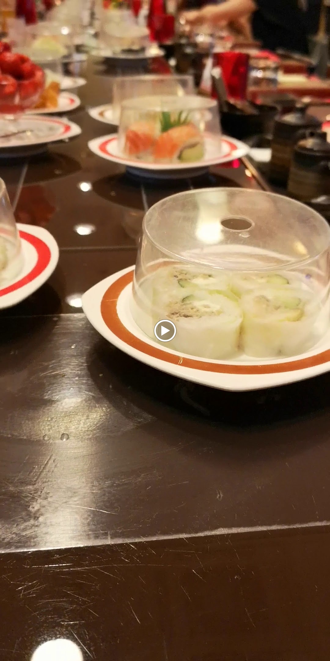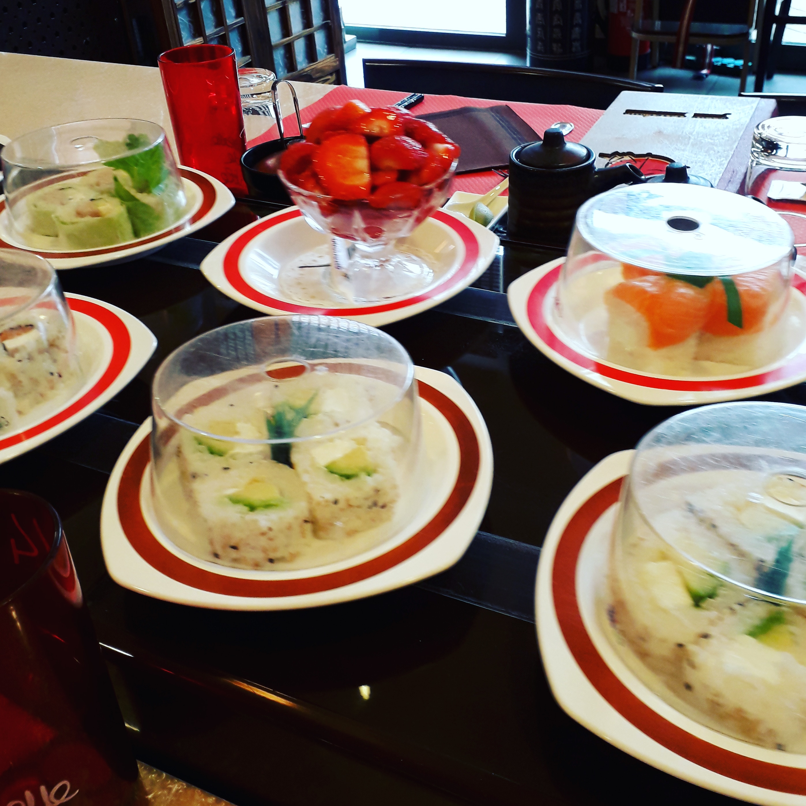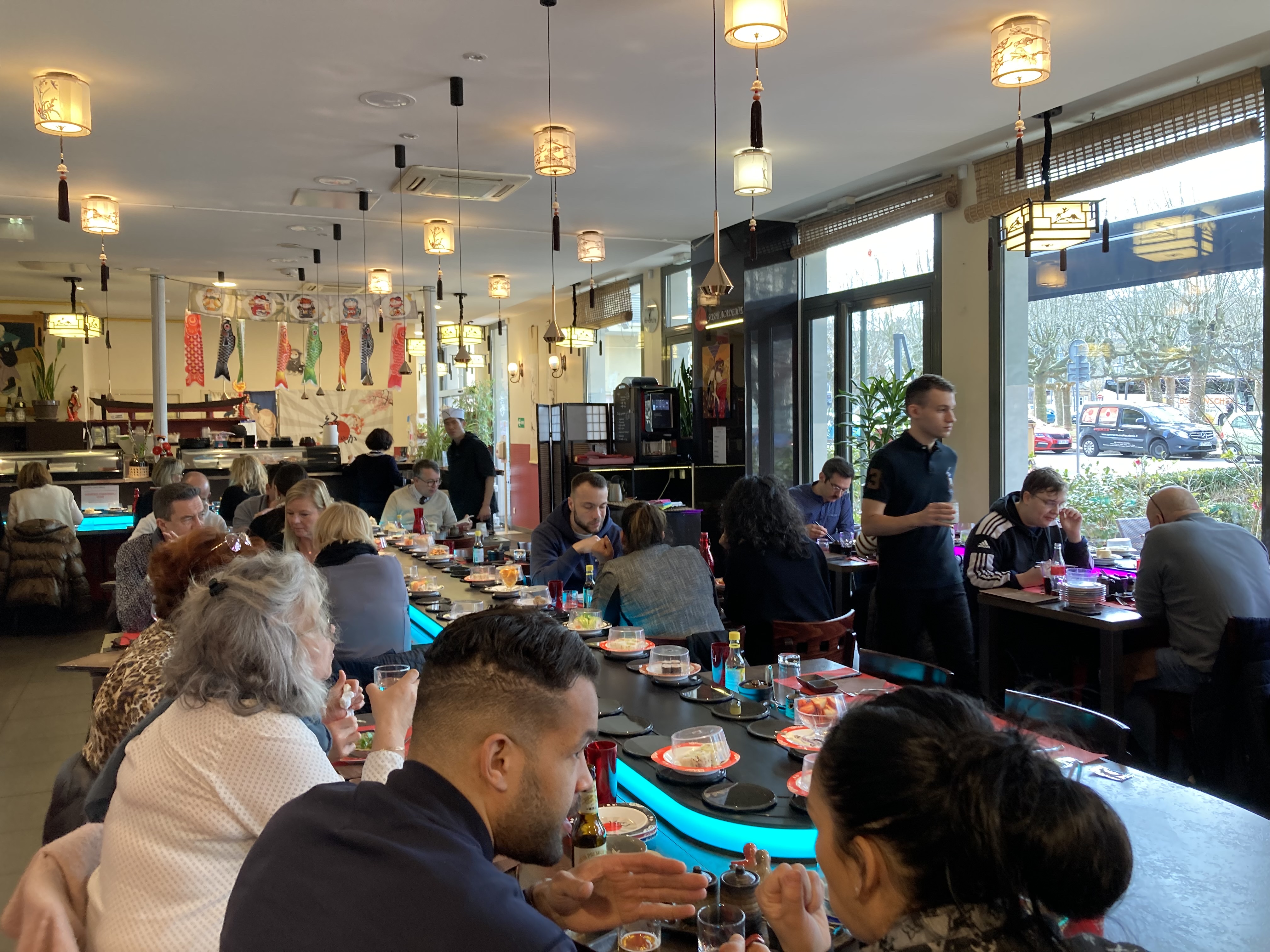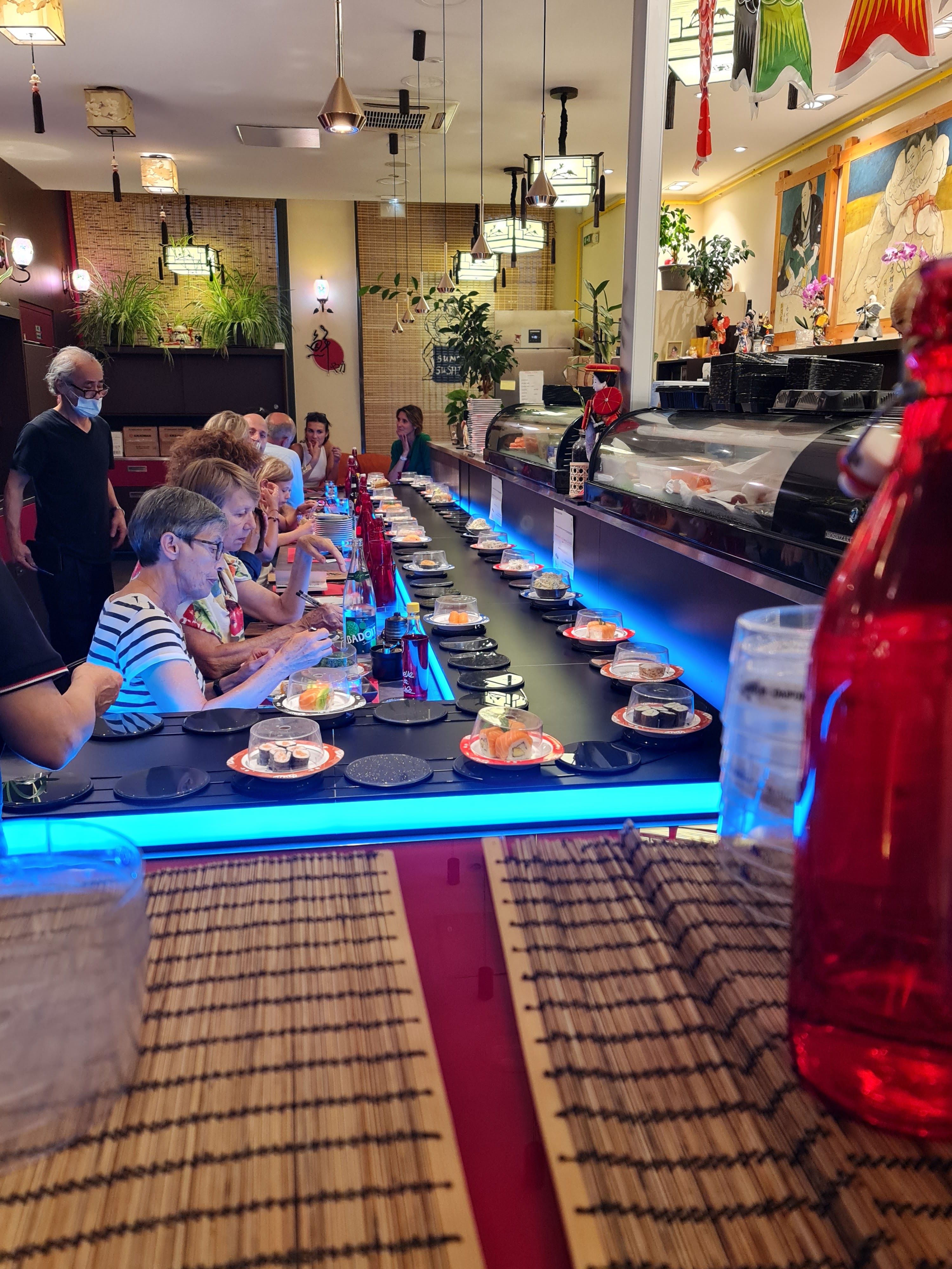 Je suis sûrement tombé un mauvais jour quand je vois les avis favorable car ma 1ere expérience dans ce restaurant n a pas été positive. Des suhis qui tournent sur un plateau; je trouve le concept sympa mais malheureusement les suhis après plusieurs tours sont chauds.; et le poissons est du coup pas très agréable en bouche et la digestion très très difficile. La variété est présente mais sur les desserts c est très industriel. Pour 30 euros pour 7 assiettes je passe mon tour et préfère de loin sushi frais; surtout en période Covid car la distanciation est impossible dans ce lieu.