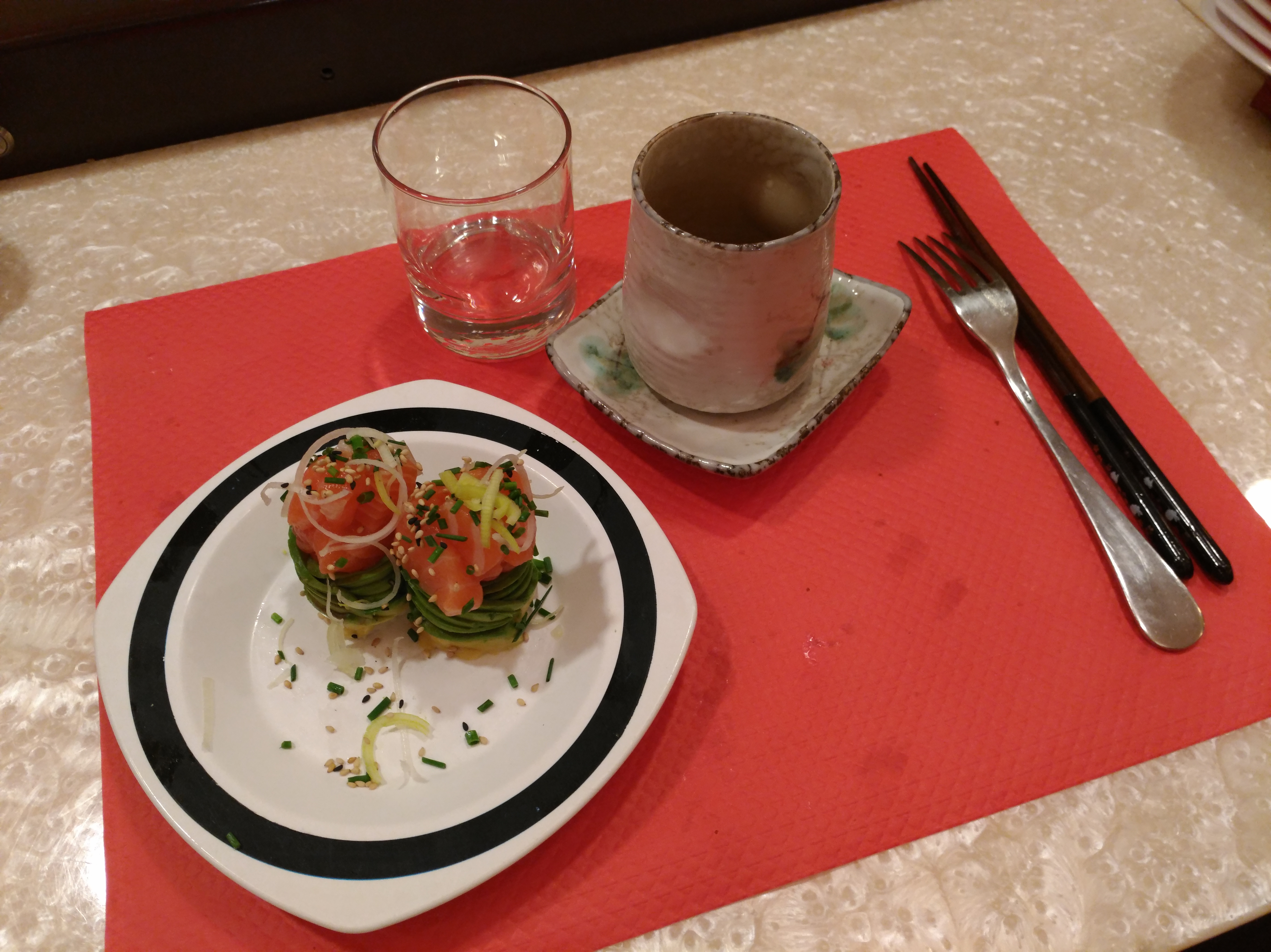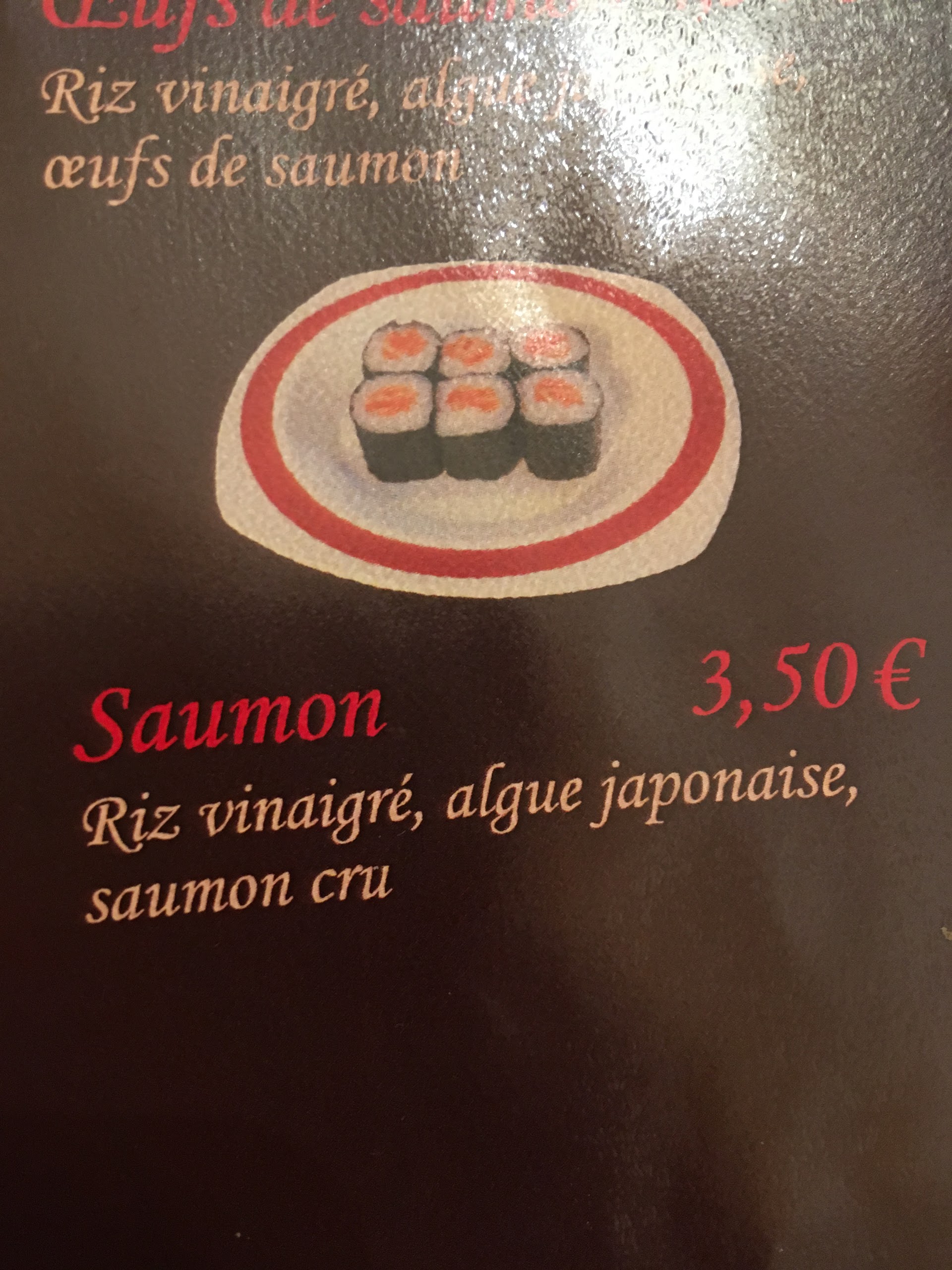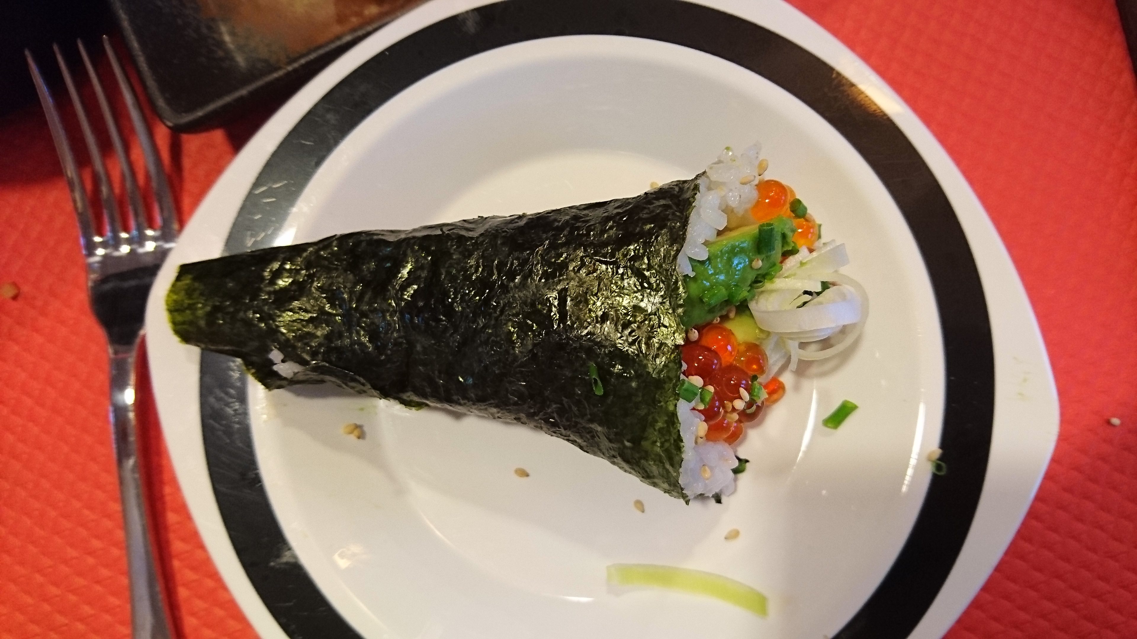 Franchement très déçu, premièrement c'est très cher. Les feuilles d'algues ne sont pas bonne, trop dur. Le gingembre a un goût de savonnette... Et pour finir, la présentation est très moyenne, la perfection japonaise n'est pas là. Heureusement un très bon accueil.