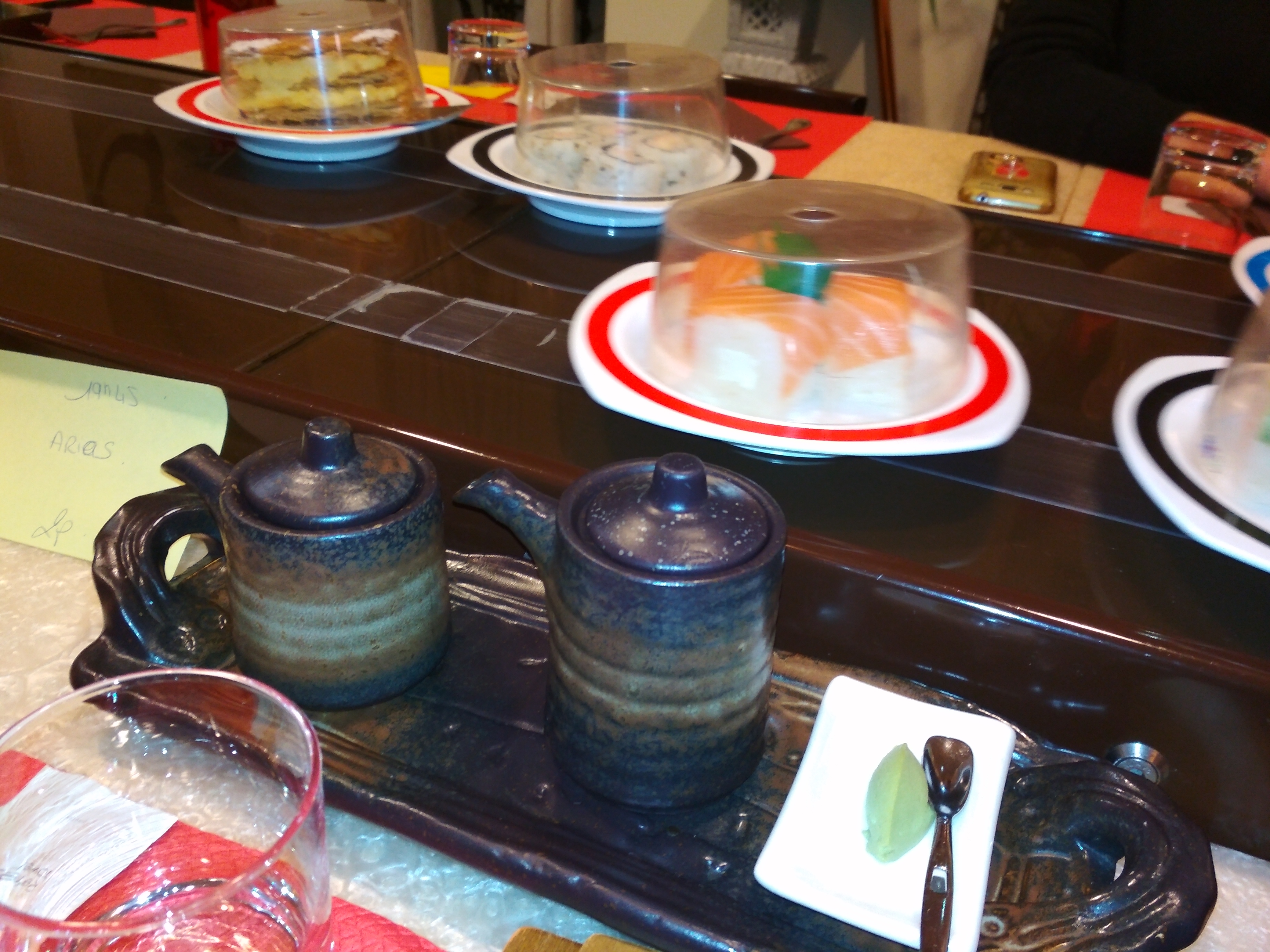 J'adore ce concept, les plats défilent devant vous, vous n'avez qu'à vous servir. Les assiettes sont de couleurs différentes qui représentent le prix. Le personnel est très sympathique.